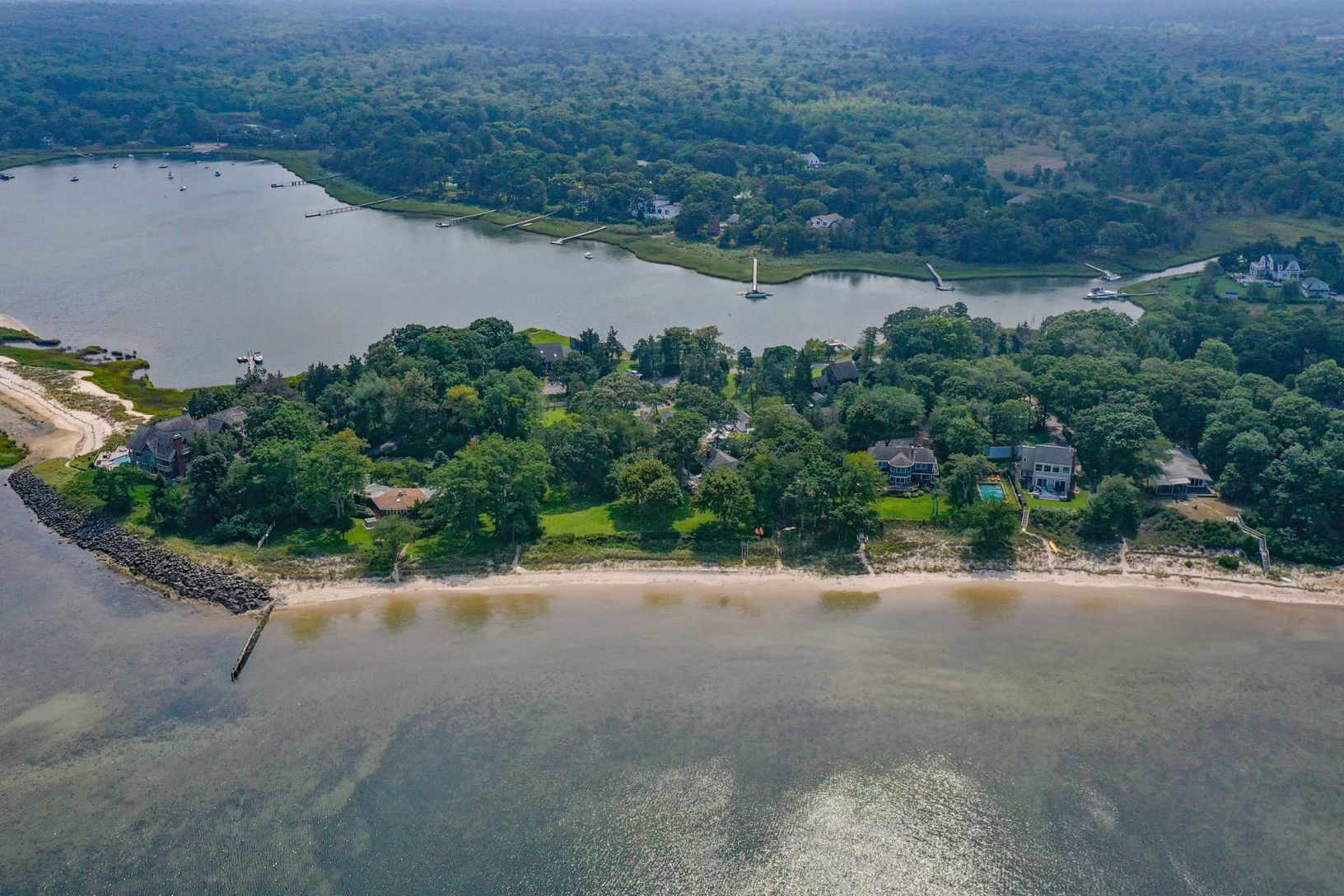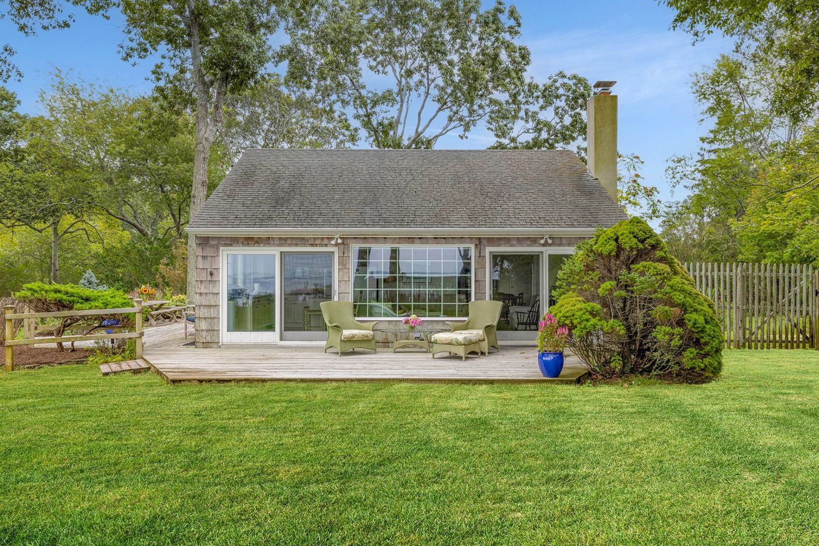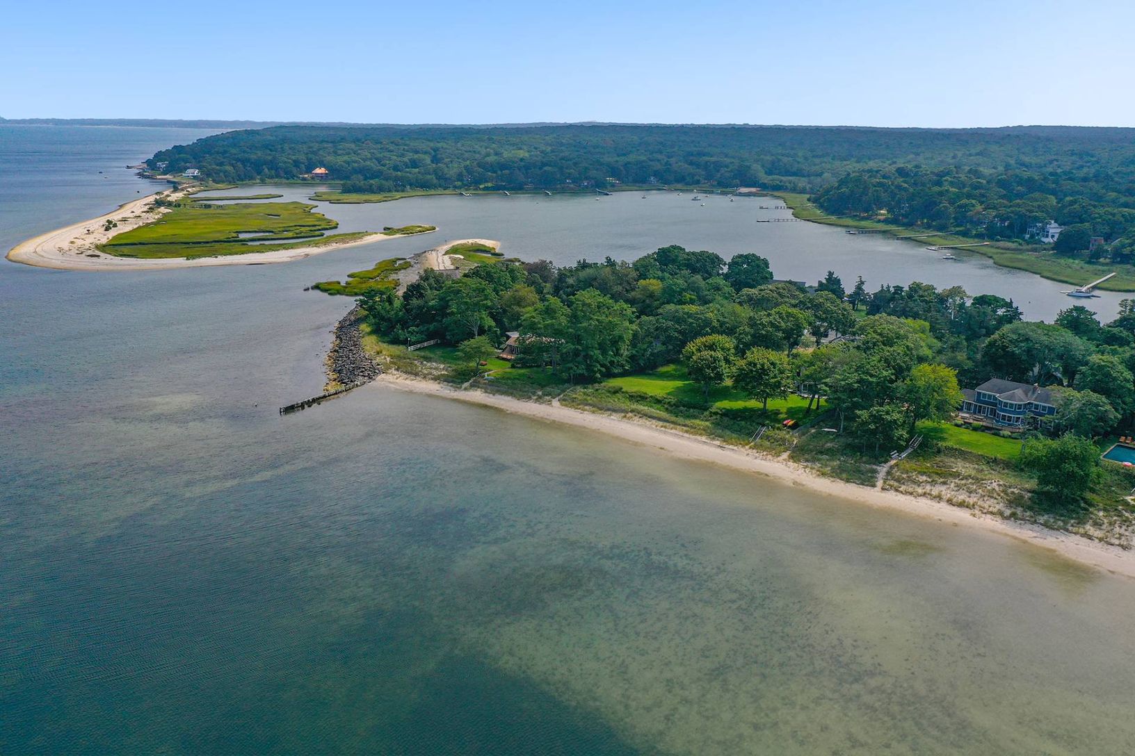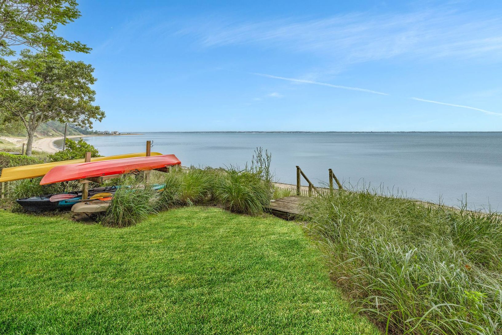 This is the property you've been waiting for - a picture perfect home on 1.2 acres overlooking Peconic Bay. This iconic waterfront home enjoys 182 feet of shoreline, direct access to a private sandy bay beach and unobstructed views of Great Peconic Bay. The pristine beach extends for approximately two miles and is accessible by deeded homeowners or by boat. The well maintained 3 bedroom, 2 bathroom home with open concept kitchen and wrap-aroun