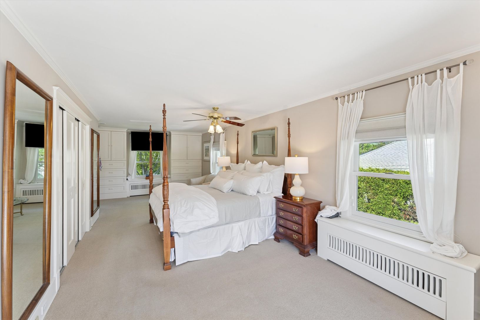 Location! Location! Just two short blocks from Southampton village's charming restaurants and shops and a short distance from the train and jitney stop, this pristinely oasis offers a luxurious escape. Relax by the heated, gunite pool amidst manicured, flowering gardens or enjoy the spacious living areas inside, including a living room with two seating areas, a den with a fold-out sofa and large television, a formal dining room, and a bright