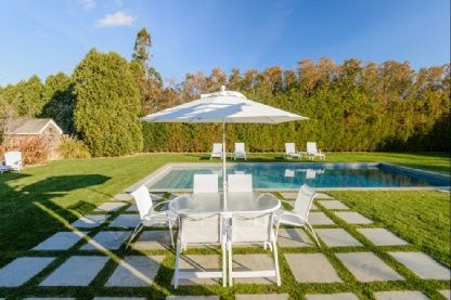 On a lushly landscaped half acre, south of the highway in Southampton Village, sits this immaculate and stylishly furnished traditional home ready for you to enjoy your August vacation. This home boasts 5 bedrooms, 5 and a half baths, formal dining room, living room with fireplace, great room with fireplace, and a professional kitchen featuring polished dark wood counters, center island, Viking appliances, two dishwashers, wine cooler and sepa