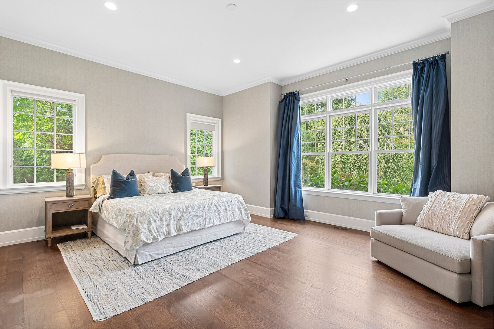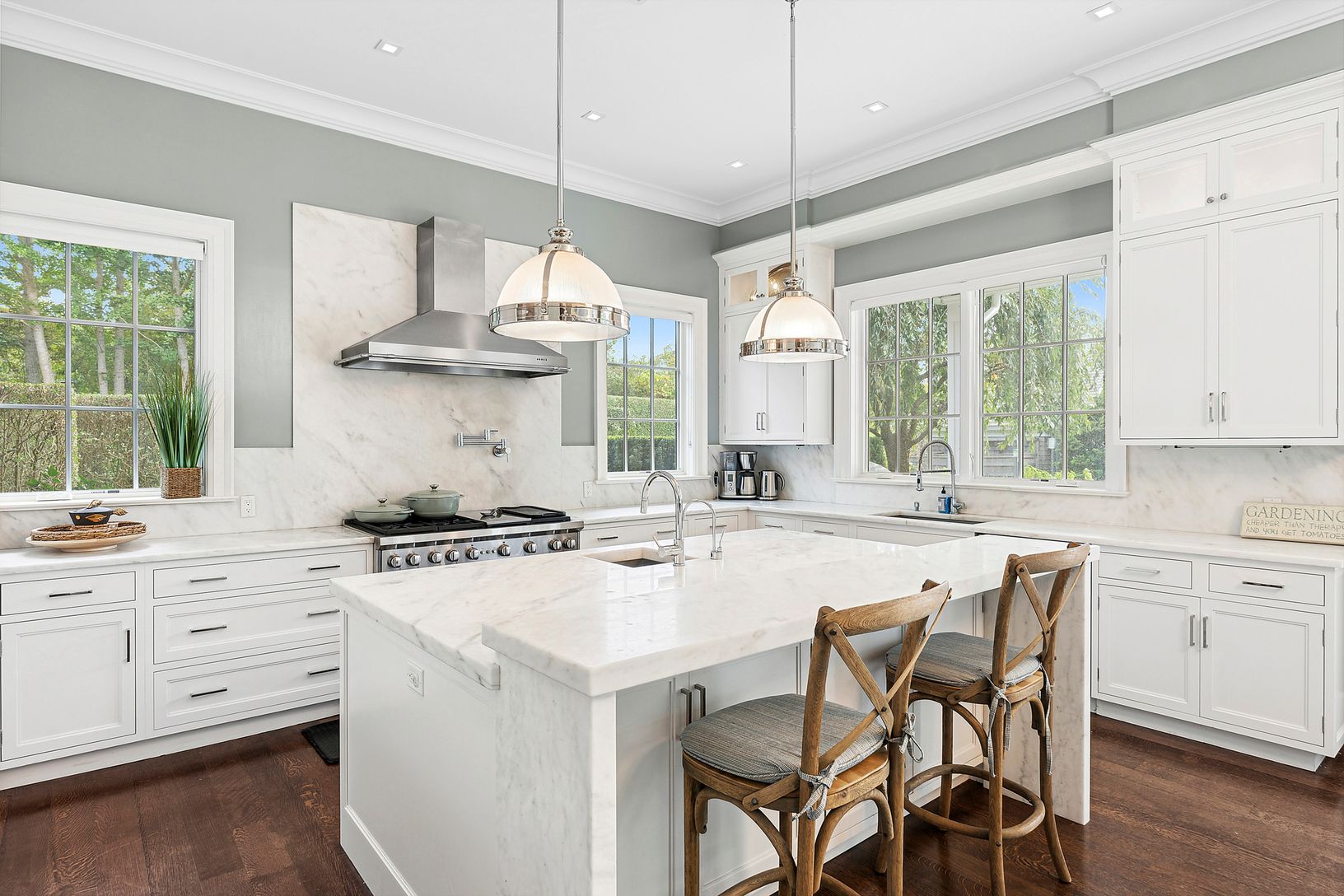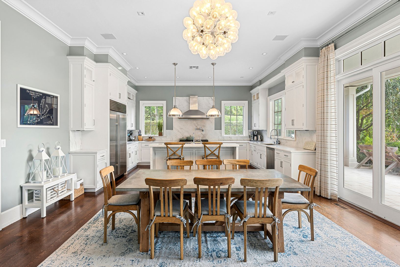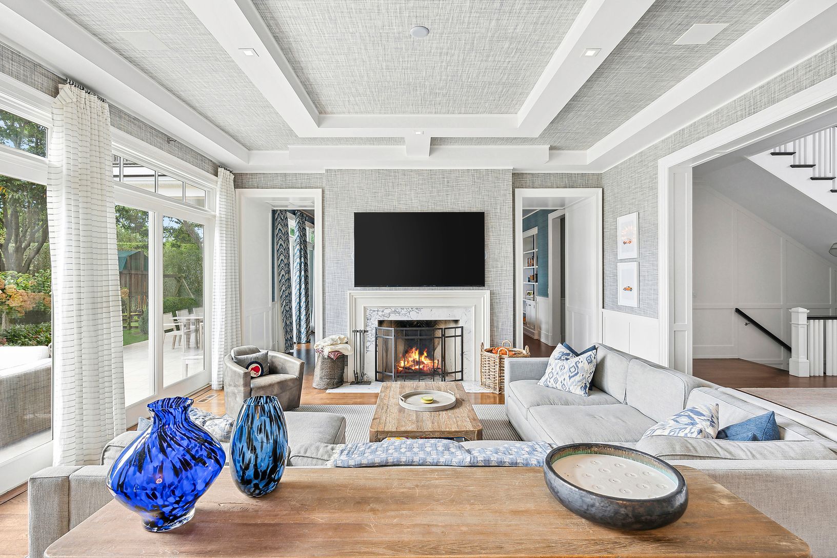 Crafted by a visionary team of designers, this custom-built home presents a masterful blend of traditional and English-inspired architecture. With a stone driveway approach, the exterior features rough-sawn honey cedar shingles and imported stone, setting the stage for the elegance within. Contributing to the allure of the exterior design are sweeping copper rooflines, grand Marvin windows, and custom glass-paneled mahogany entry doors. Encomp