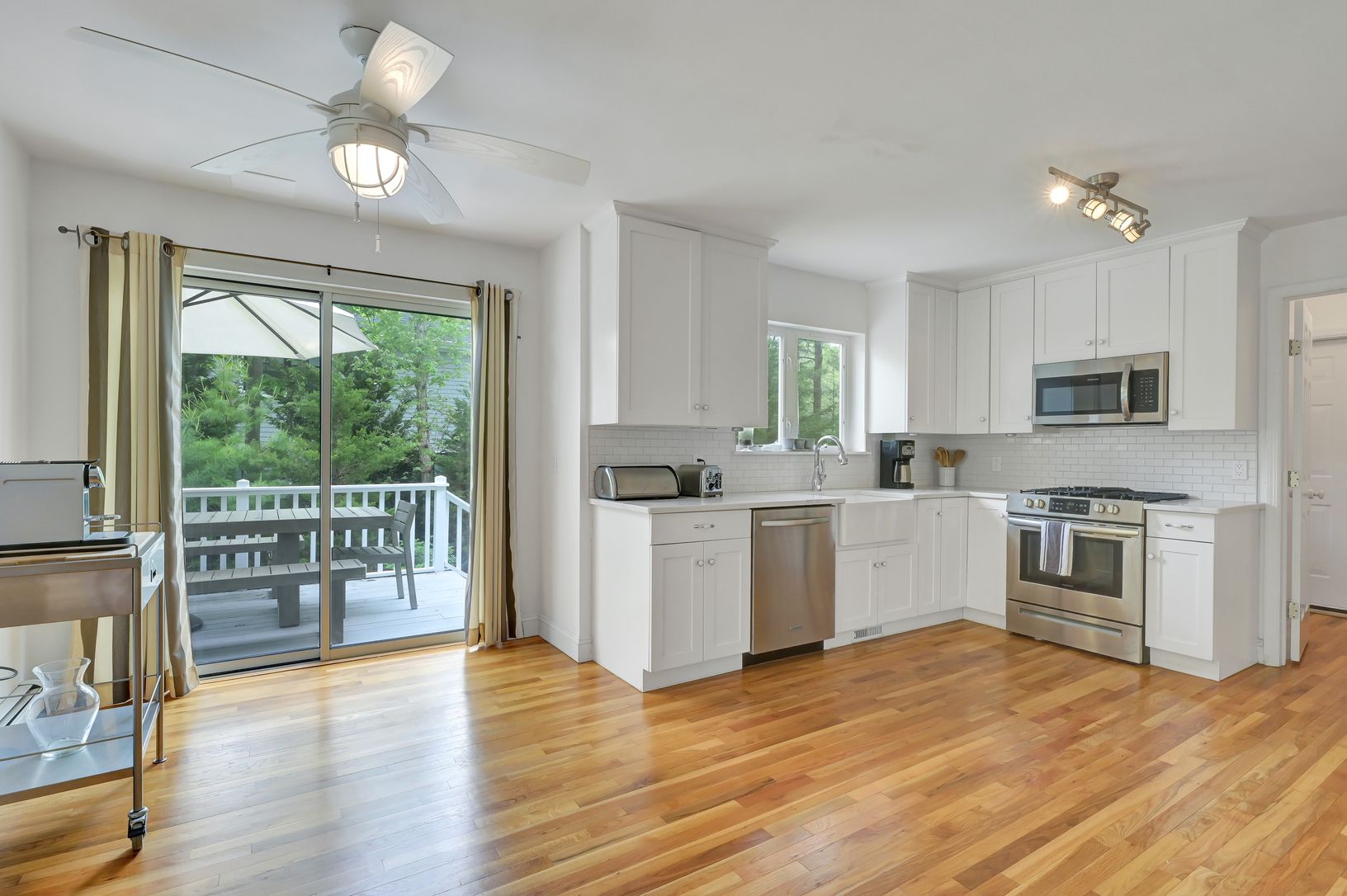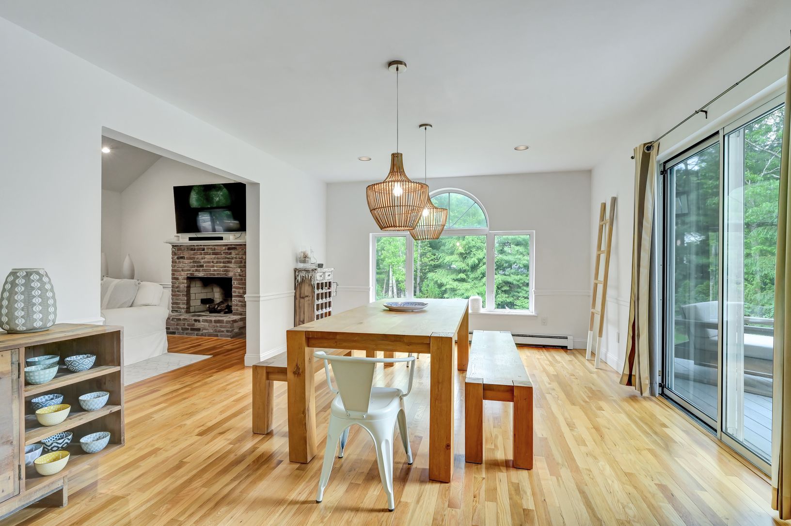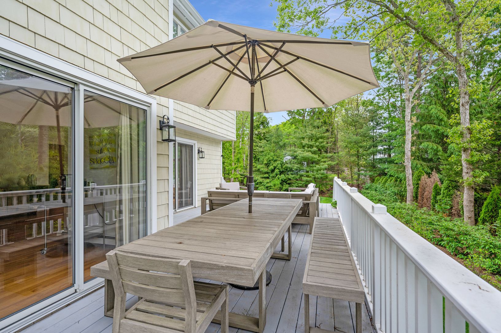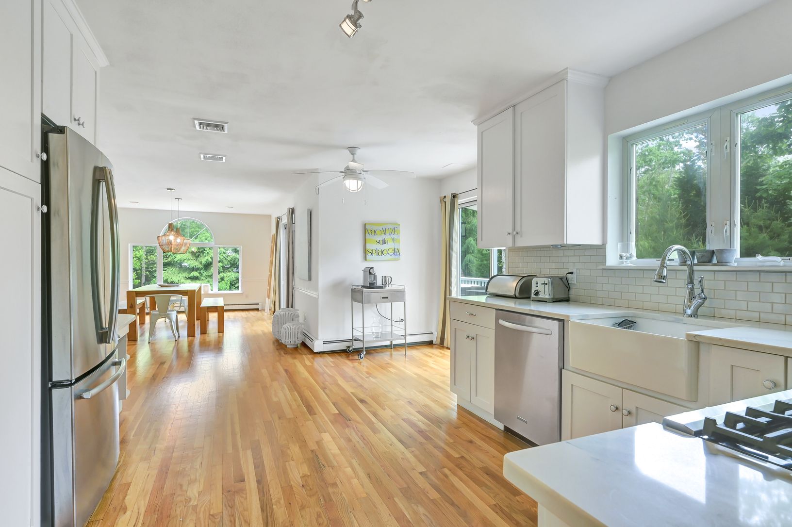 This well maintained and recently renovated 4 bedroom, 2.5 bath traditional represents one of the best values in our East Hampton market. A double height entry welcomes you to a bright and airy layout featuring living room with vaulted ceiling and wood burning fireplace, large dining area with a spacious renovated kitchen with stone countertops, built-ins and stainless steel appliances. Glass sliders from both dining and kitchen areas provide