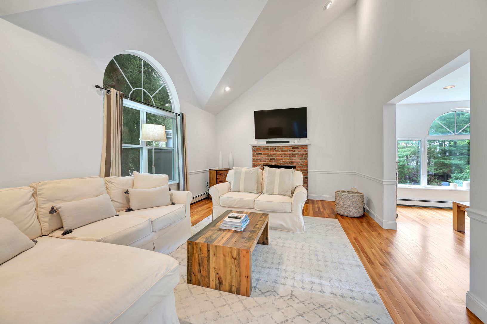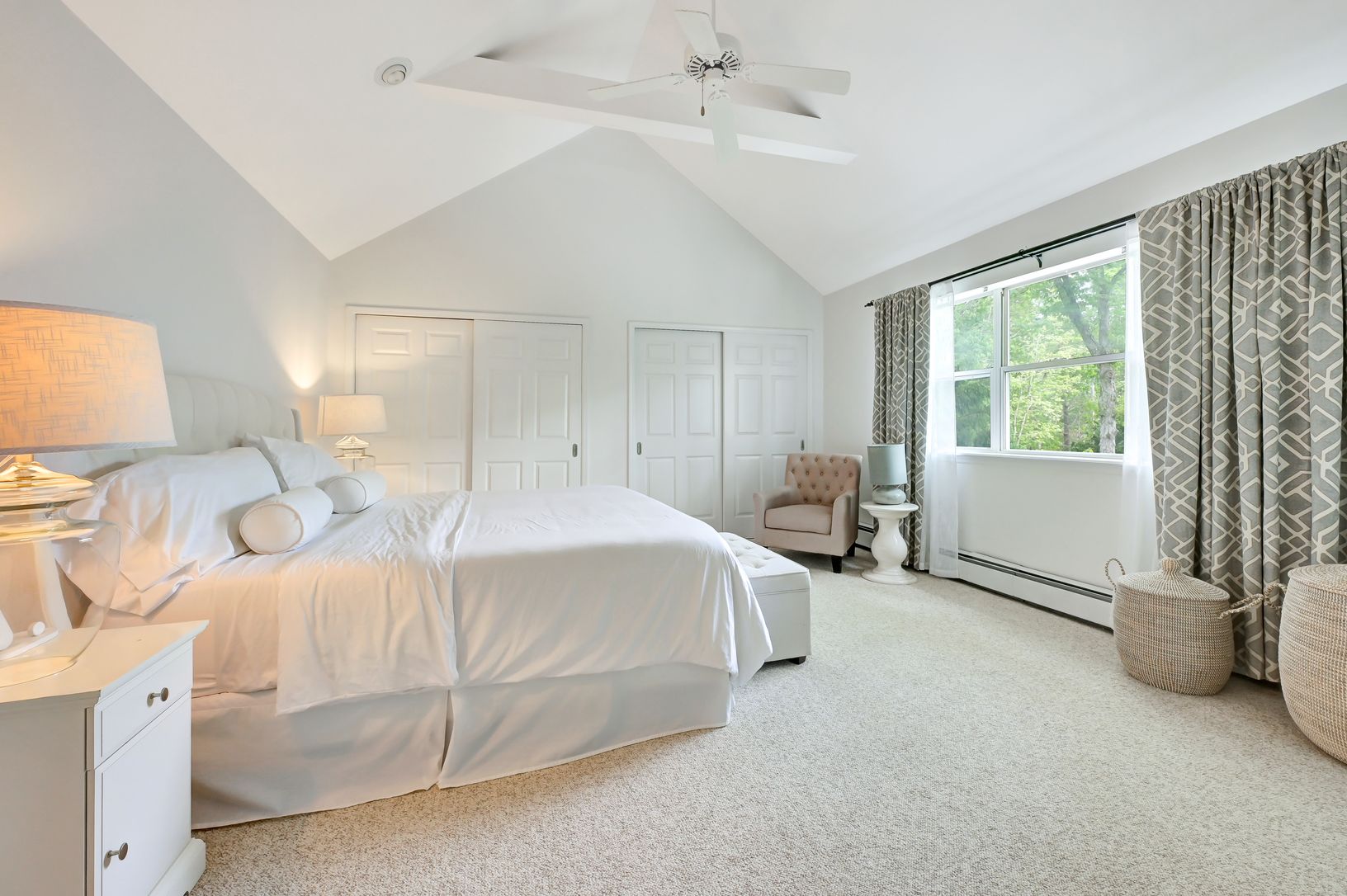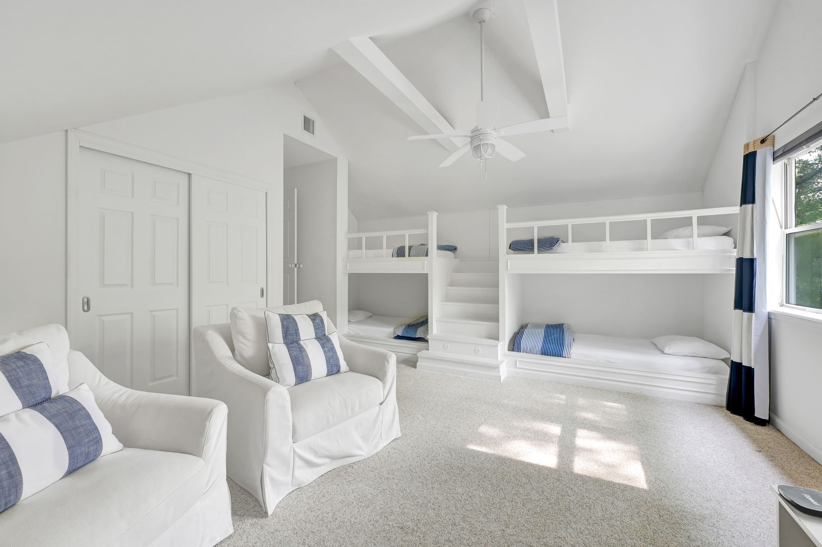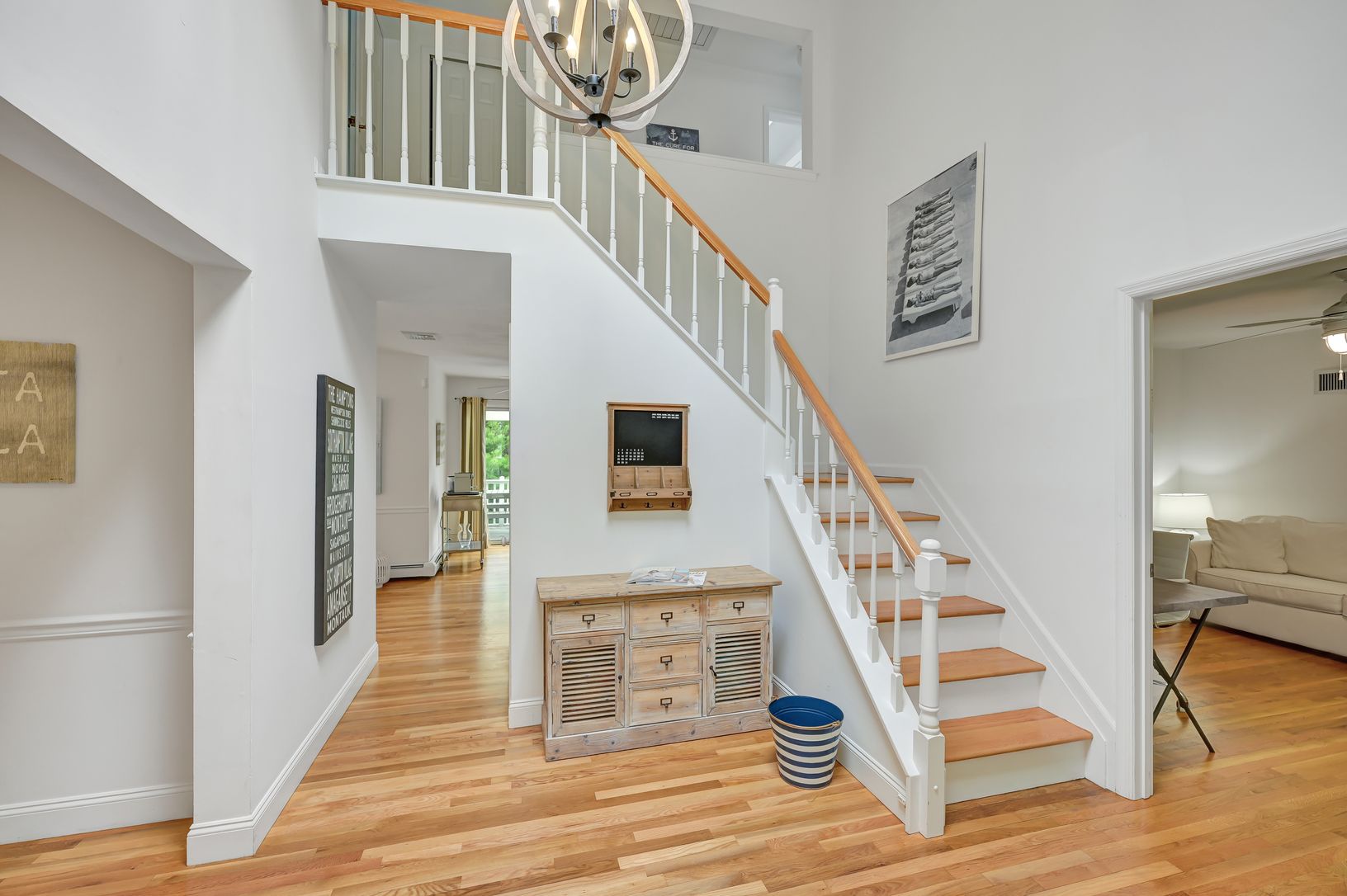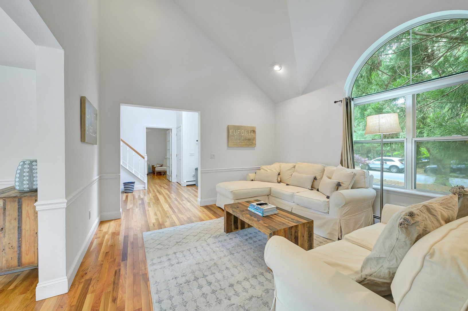 This well maintained and recently renovated 4 bedroom, 2.5 bath traditional represents one of the best values in our East Hampton market. A double height entry welcomes you to a bright and airy layout featuring living room with vaulted ceiling and wood burning fireplace, large dining area with a spacious renovated kitchen with stone countertops, built-ins and stainless steel appliances. Glass sliders from both dining and kitchen areas provide