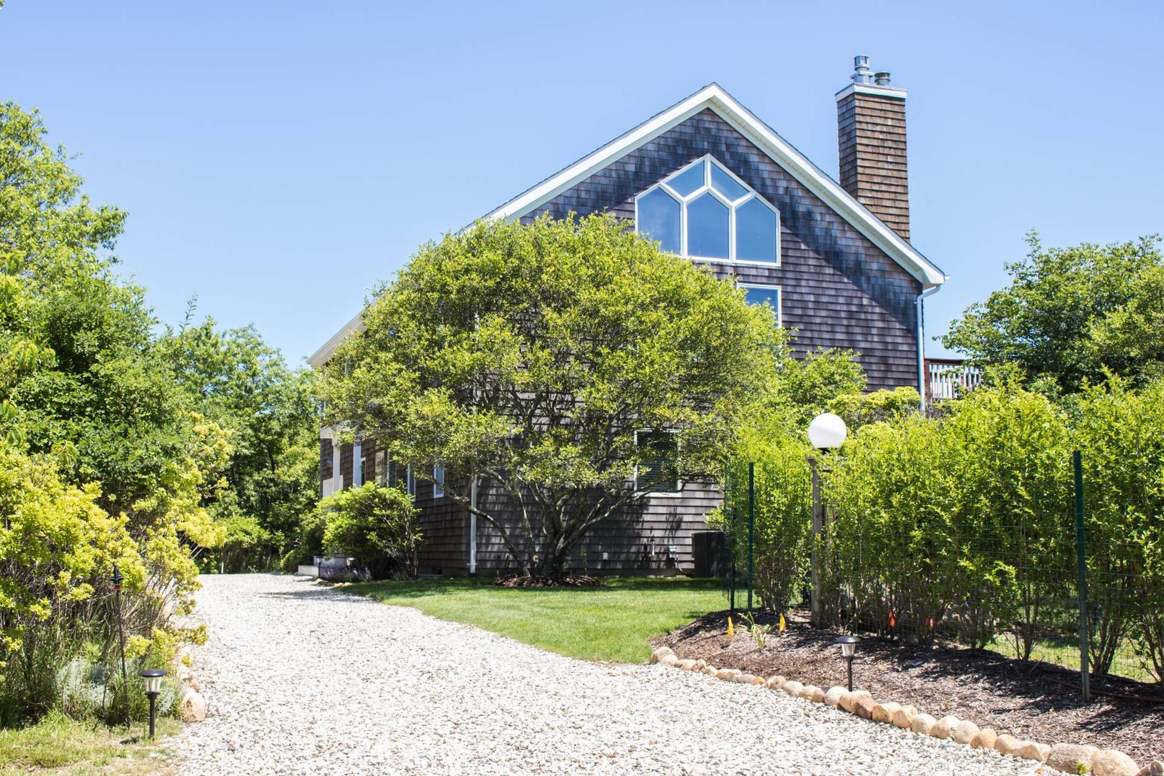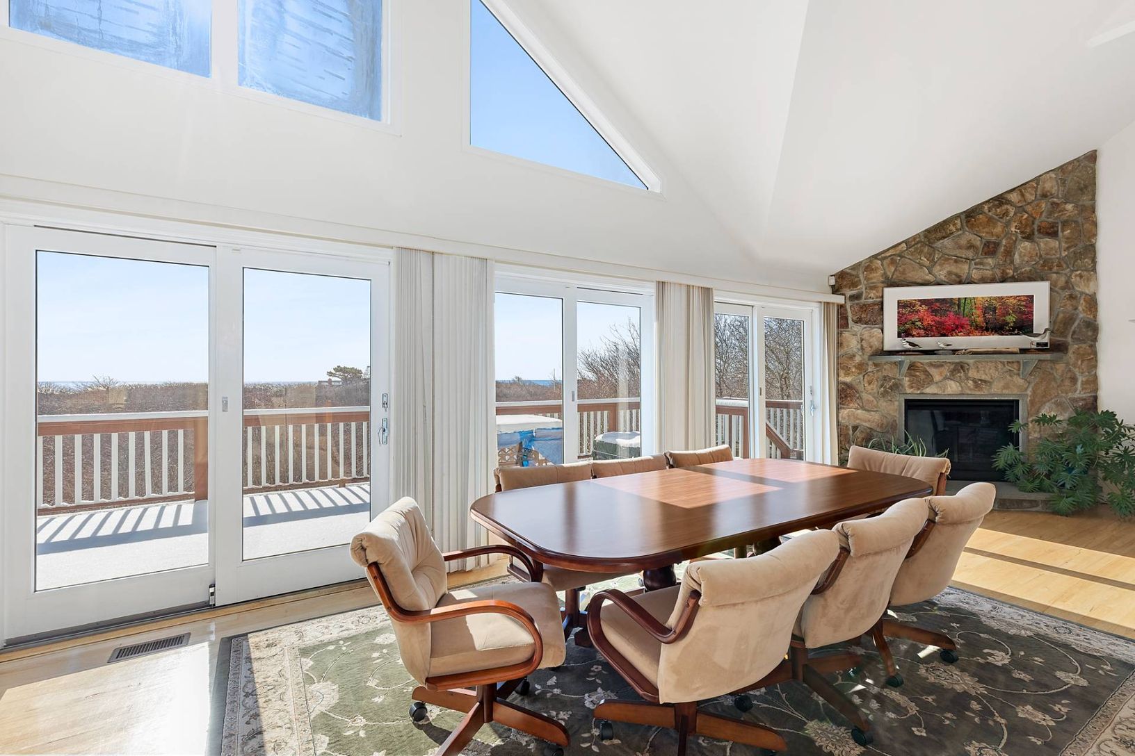 This turn key upside down home is situated just moments to Montauk town amenities and in a quiet secluded setting. Surrounded on three sides by a preserve, this well maintained residence is sited down a long private driveway, on a dead end lane. The first level offers a second living room, three guest bedrooms, three sliders to covered, 52ft. mahogany deck, with built-in storage closets and access to a very private outdoor shower and lawn area