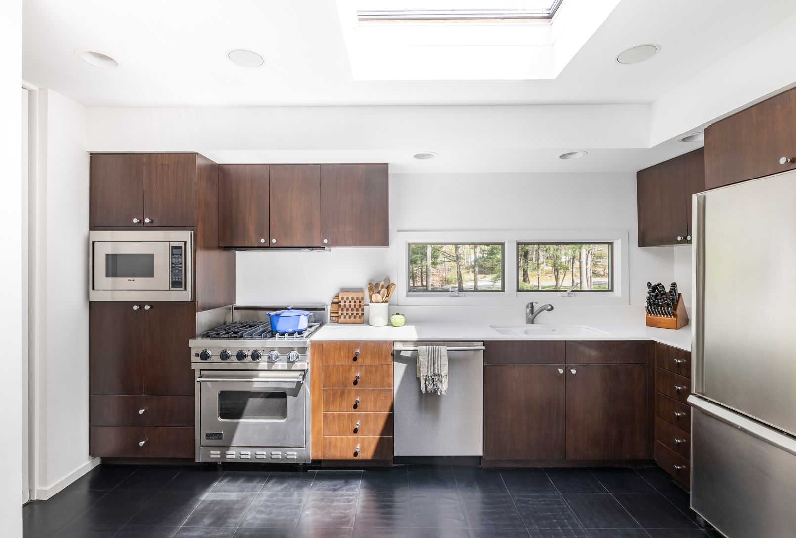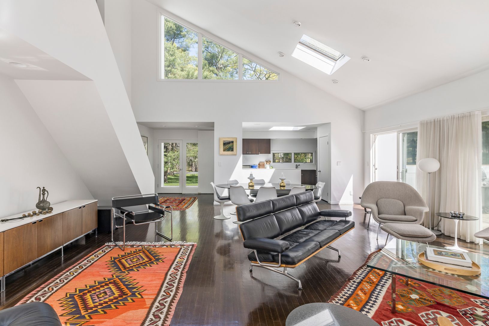 Located on 1.4+/- acres of park-like grounds, this three bedroom, two bath residence, owned and meticulously maintained by an award-winning architect and his wife for the past twenty years, offers a serene setting to relax and entertain. The focal point of the home is its spectacular great room with a 20' ceiling, wood burning fireplace, dining space and chef's kitchen. Three sliding glass doors lead from the great room to an expansive 2,500+/