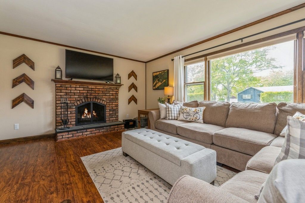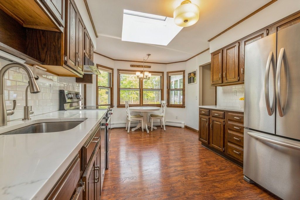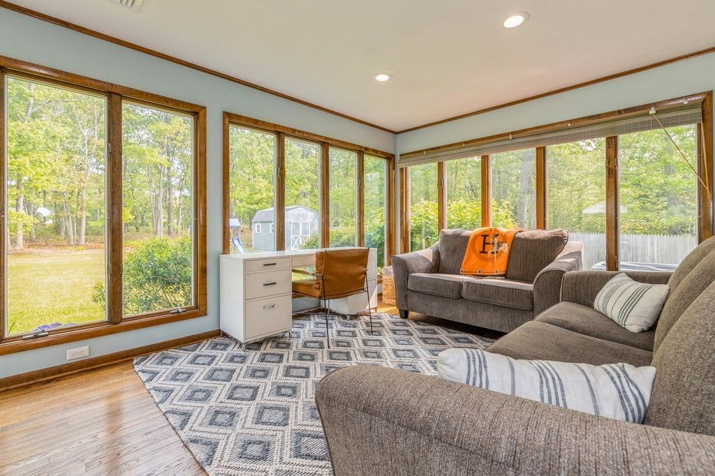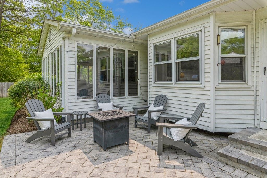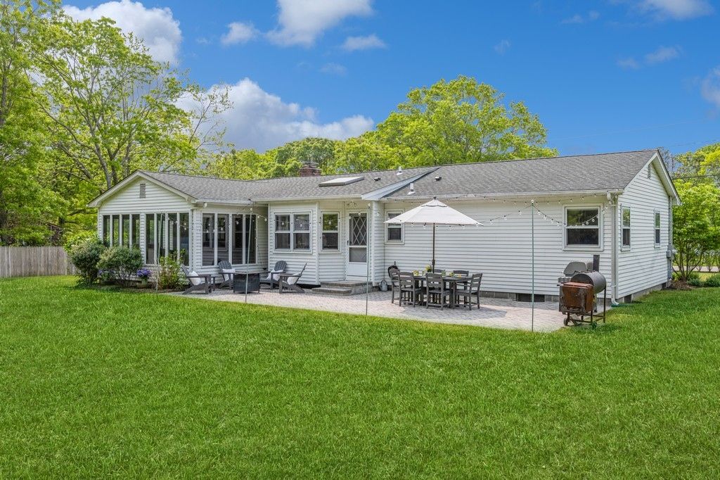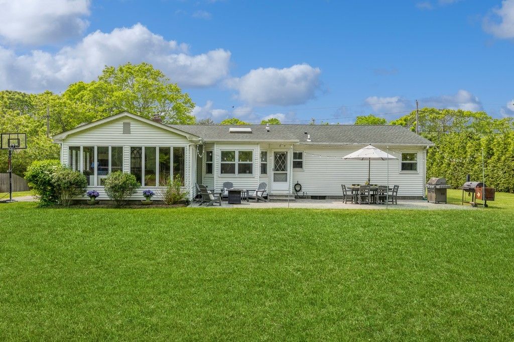 Welcome to 24 Norwood Rd in the heart of Hampton Bays, South of the Hwy in the beautiful Tiana Shores beach association community. This amazing turn -key ranch style home features a spacious living room with a brick fireplace, beautiful dining room, Seasonal sunroom with large windows to bring in the natural light, new central air conditioning, EIK with charming bay windows, recently renovated quartz's countertops, updated hardware, backsplash
