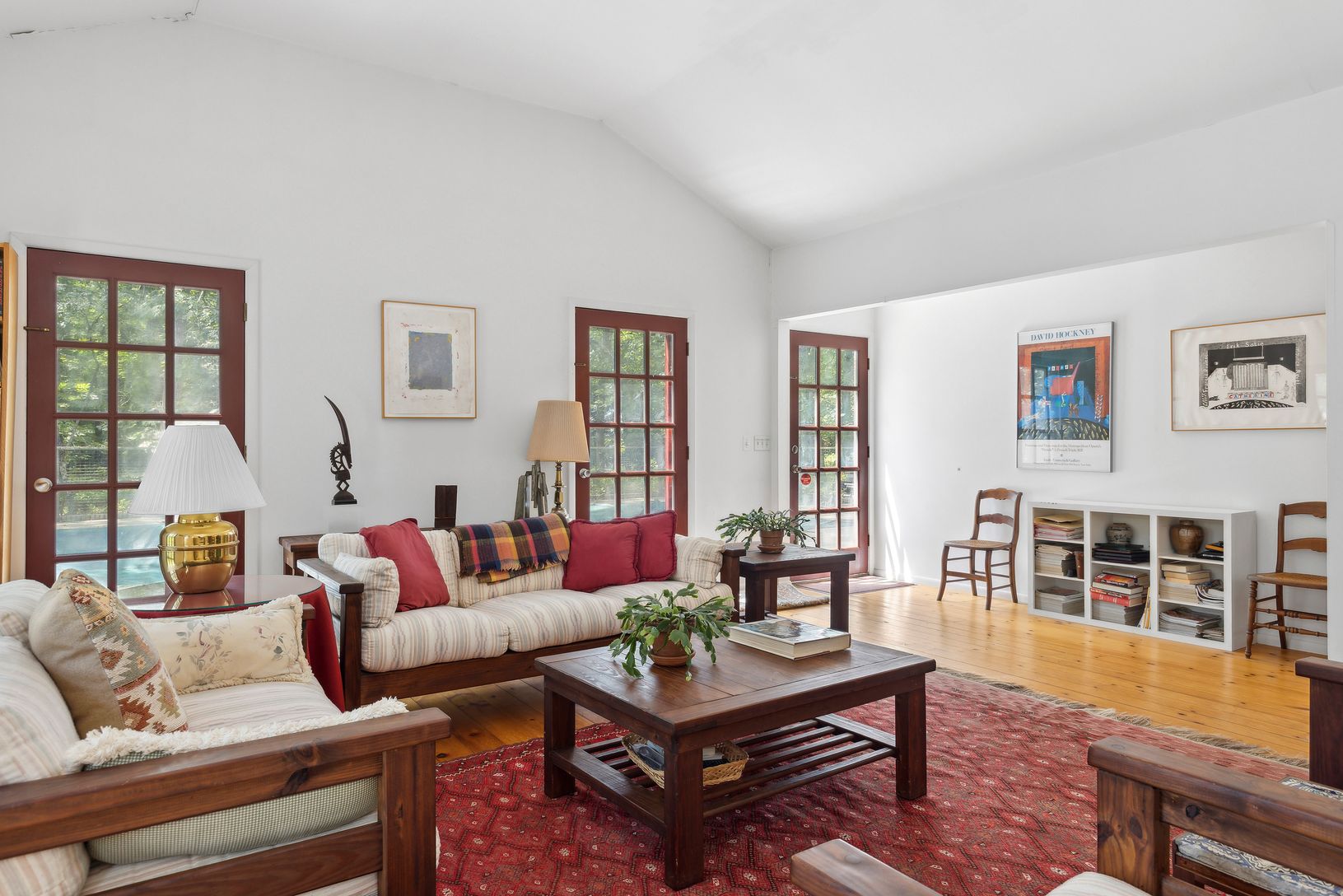This gem was lovingly crafted by a renowned NYC artist and is now ready for a new chapter. It is a unique gem in the haven of Sagaponack. The barn-style home boasts a spacious living room with 11-foot high ceilings, numerous doors for a seamless indoor-outdoor experience, and an abundance of natural light. The large eat-in kitchen is equipped with an island and a handy laundry area. On the main level, you'll find two comfortable bedrooms and t