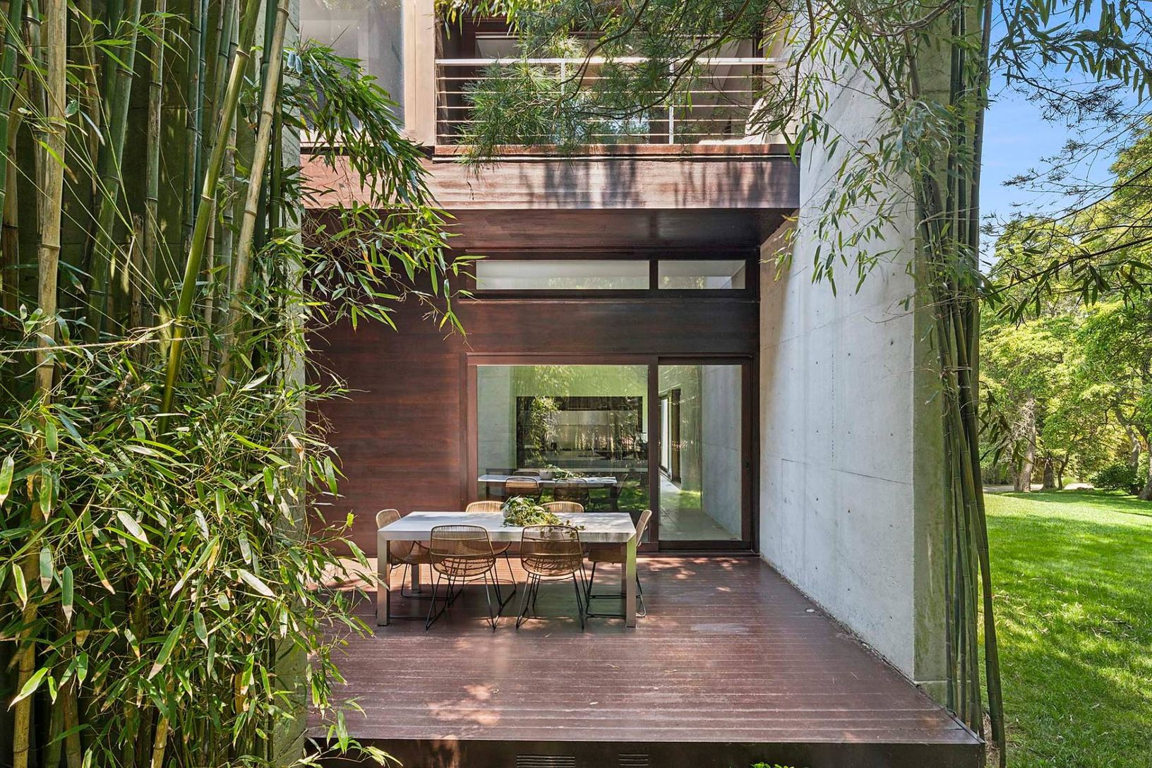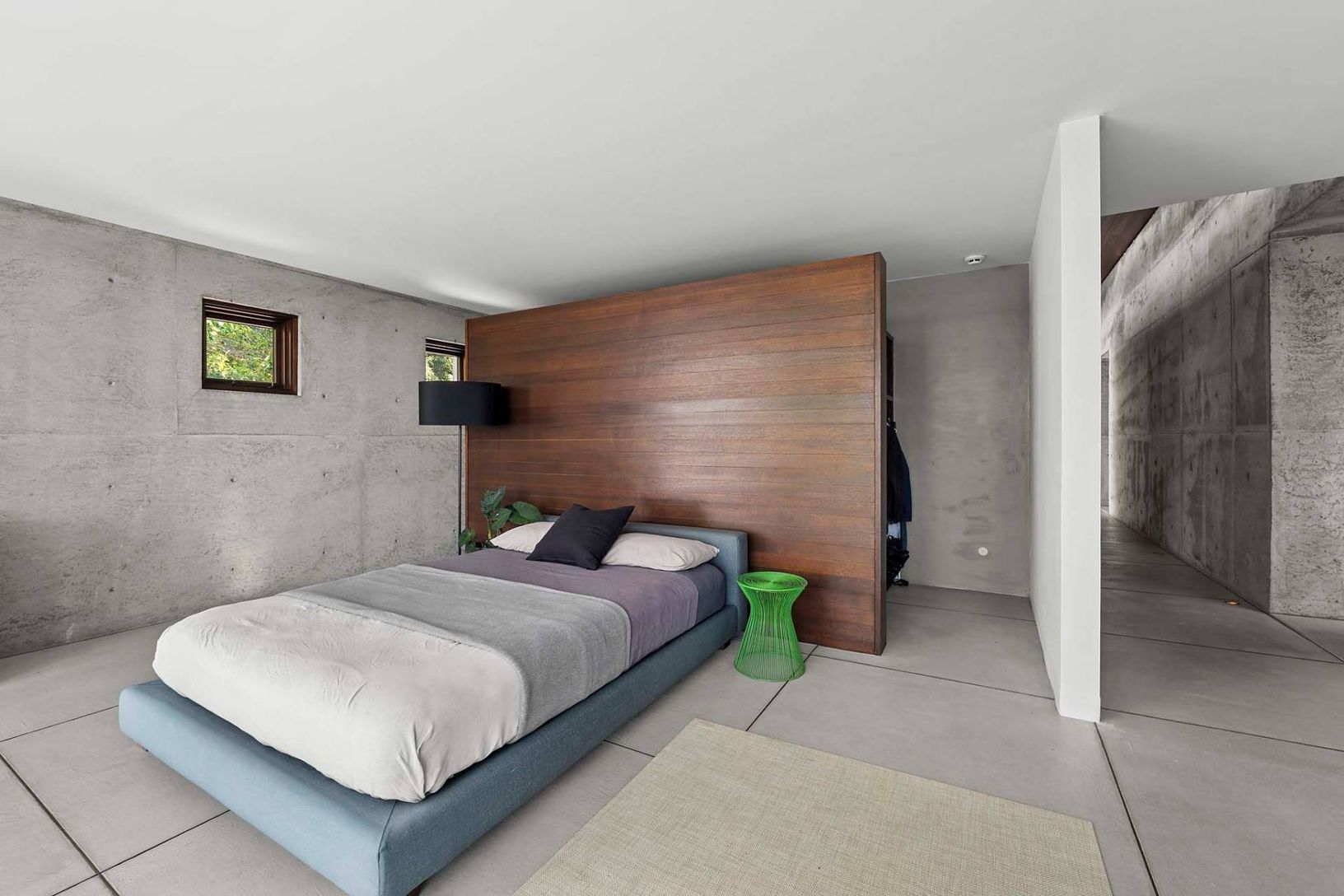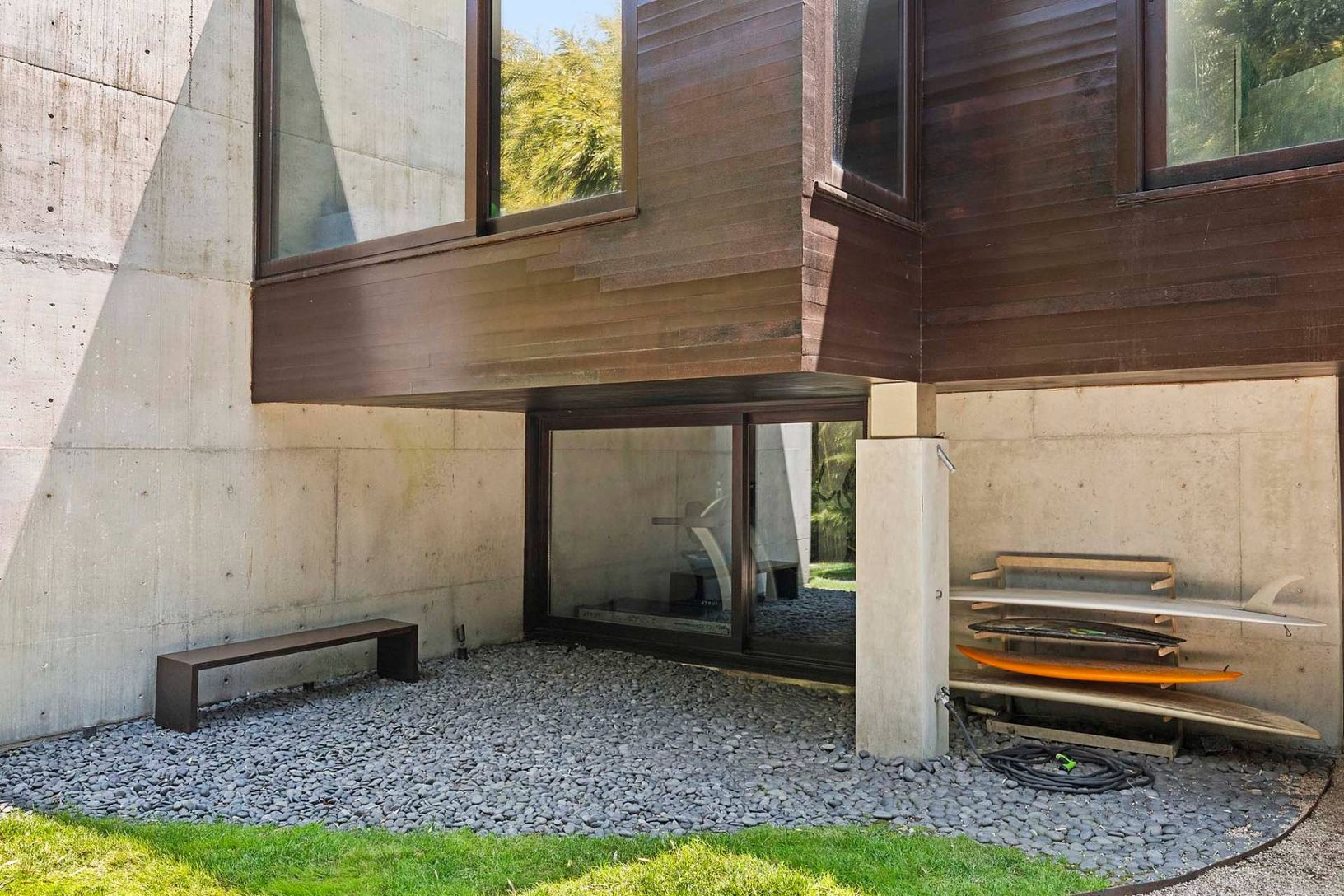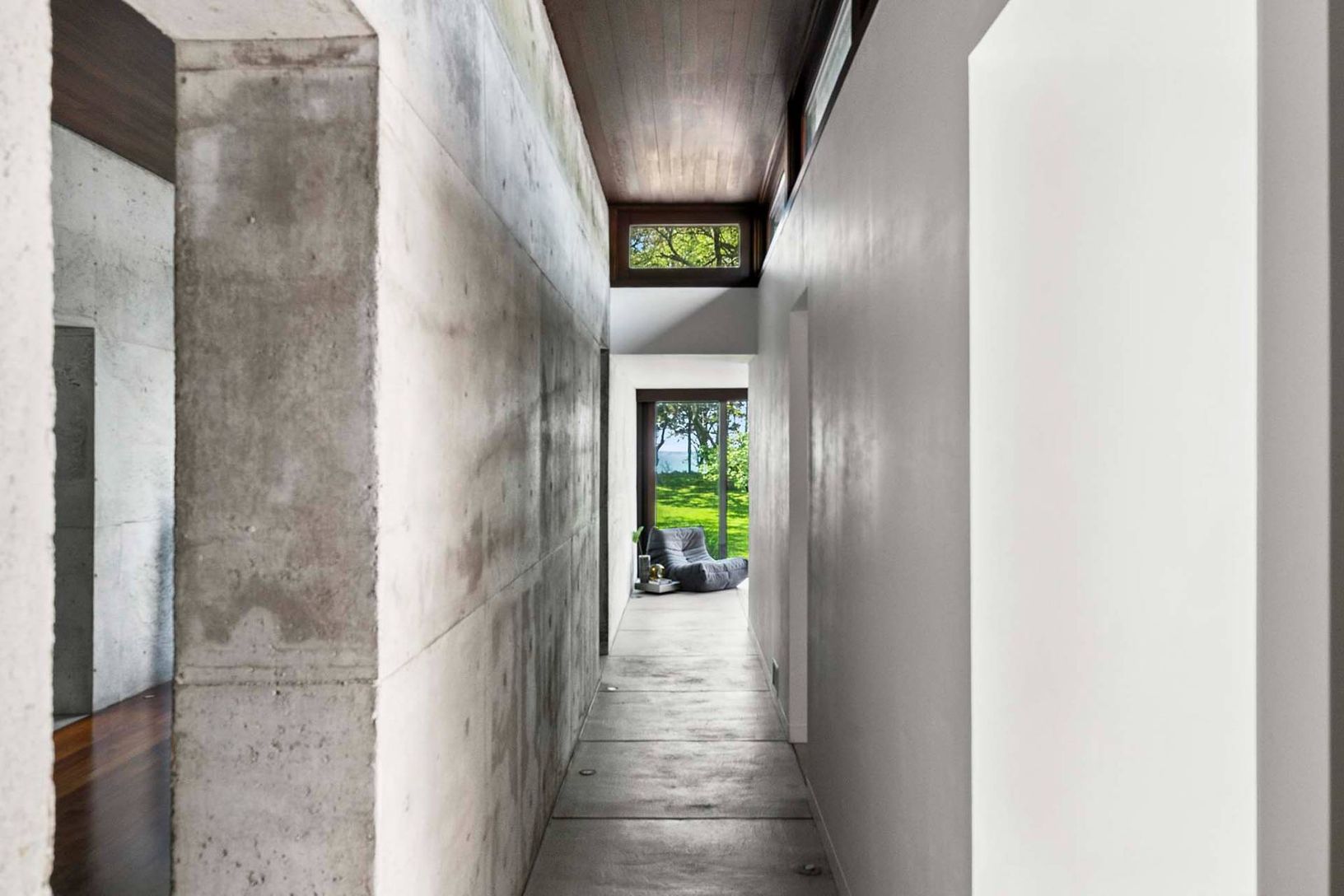 In a secluded setting in North Haven, this unique home offers sweeping views across pristine Noyac Bay to Shelter Island, as well as privacy among the trees on the two-acre property. The epitome of simple modern elegance, the home designed by architect William Reese in close cooperation with the homeowners is inspired by modernist design masters such as Tadao Ando and Rudolf Schindler. It employs simple lines and geometric shapes, executed in