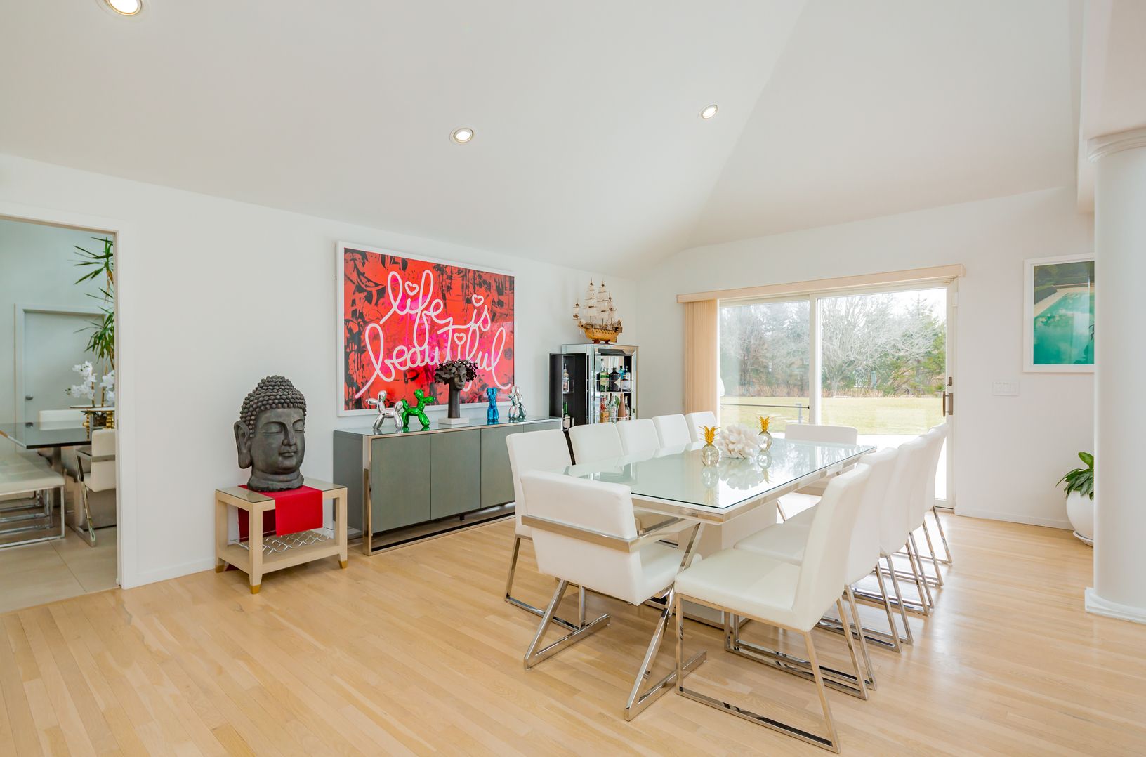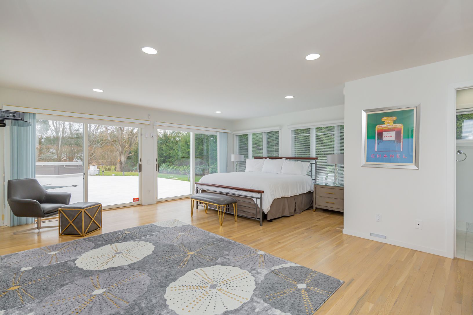 This bright sun filled Contemporary home has it all with lots of "smart" features, including Nest/Doorbird for the privacy gate and outdoor lighting. Tablets throughout the house connect to Pandora, Spotify and lots of other apps. Situated on a quiet cul-de-sac in Watermill with beautiful scenic views, it includes 8 bedrooms and 8.5 bathrooms. An open, spacious living room, eat-in gourmet kitchen, formal dining room and enclosed sunroom are co