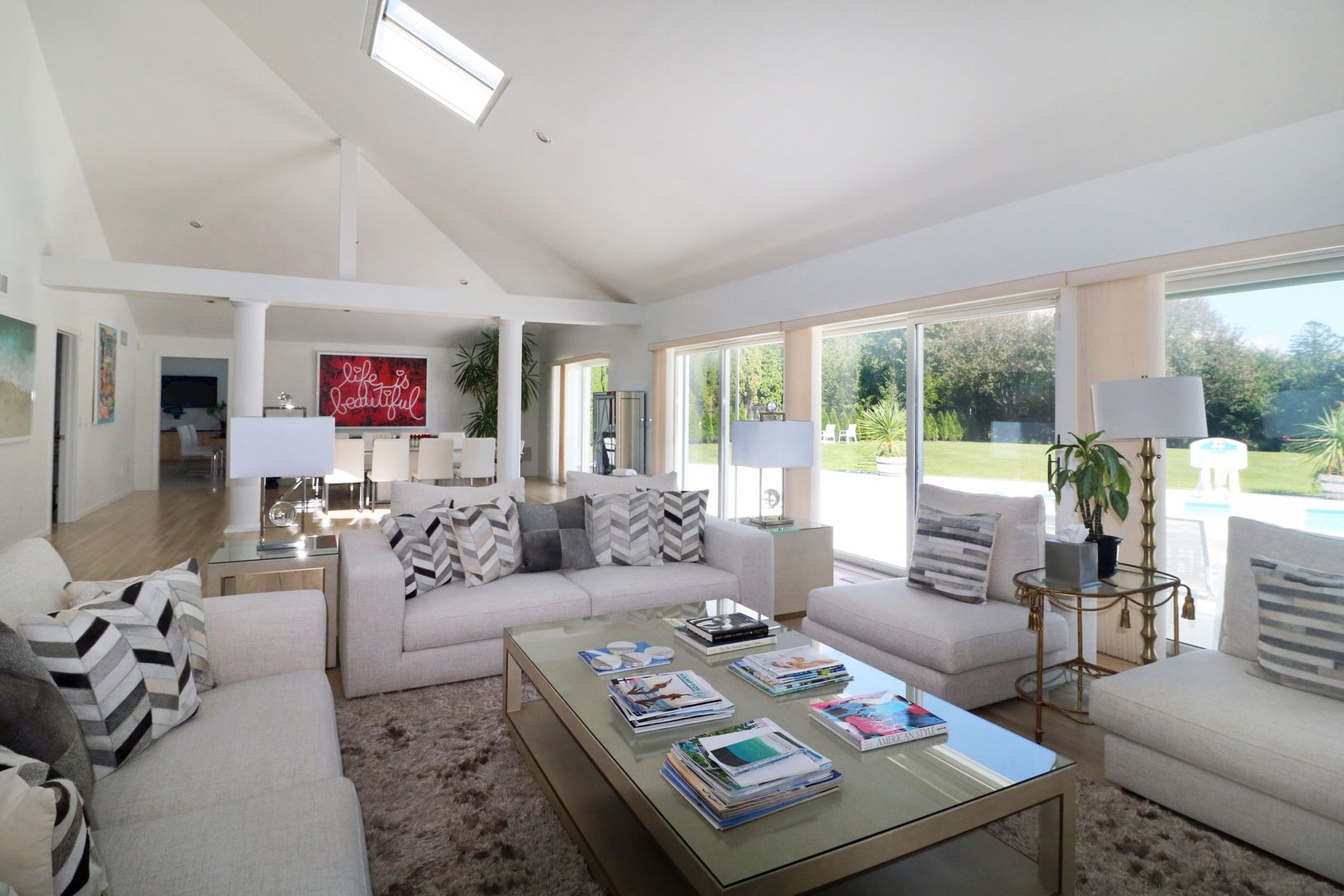 This beautiful contemporary is perfectly located on a quiet cul-de-sac near Southampton Village and ocean beaches. Featuring 6 en-suite bedrooms, an eat-in gourmet kitchen, a formal dining room along with a gym and wine cellar, this home is perfect for entertaining family or guests. You will be captivated by the sun filled room with cathedral ceiling and fantastic furnishings, as well as the French doors leading to the impeccably landscaped ya