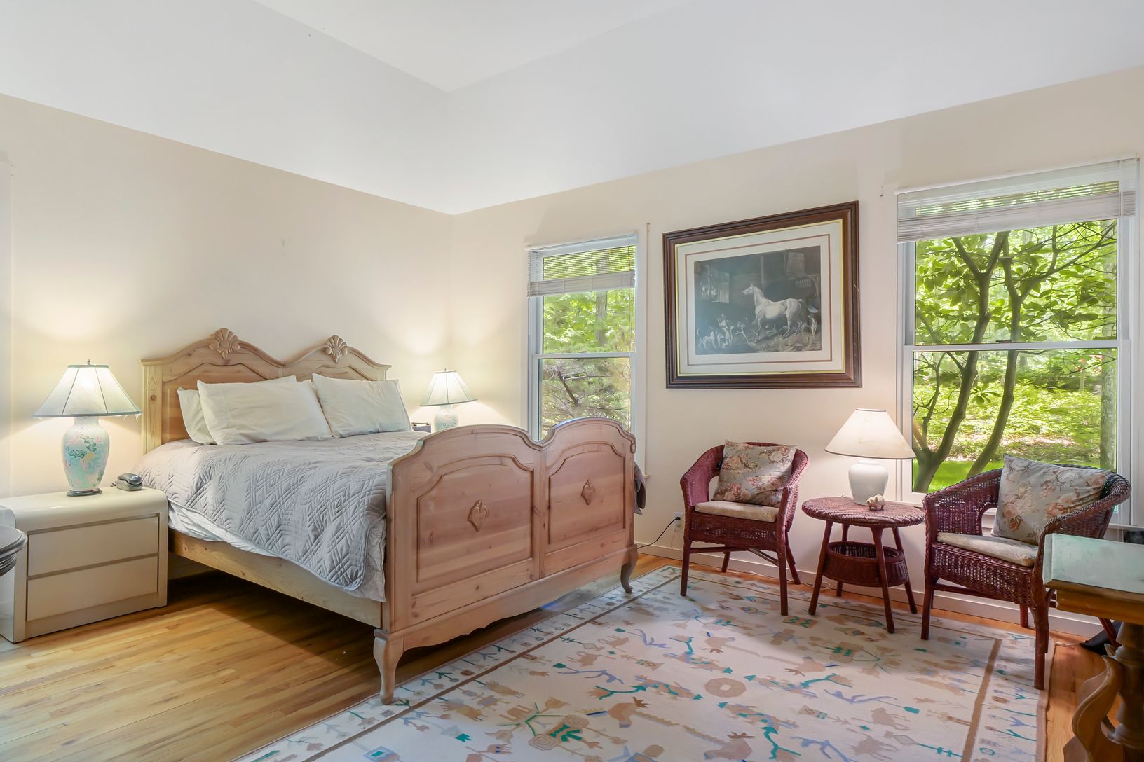 Uncover serenity in this exceptional four-bedroom, three-bathroom residence ideally situated in Northwest Woods, just three miles from the heart of East Hampton Village. This captivating home is gracefully positioned on a sprawling one-acre parcel, offering a perfect blend of space and sophistication.