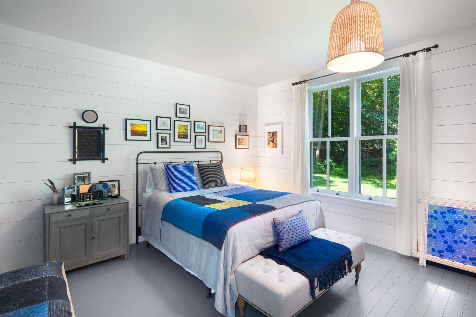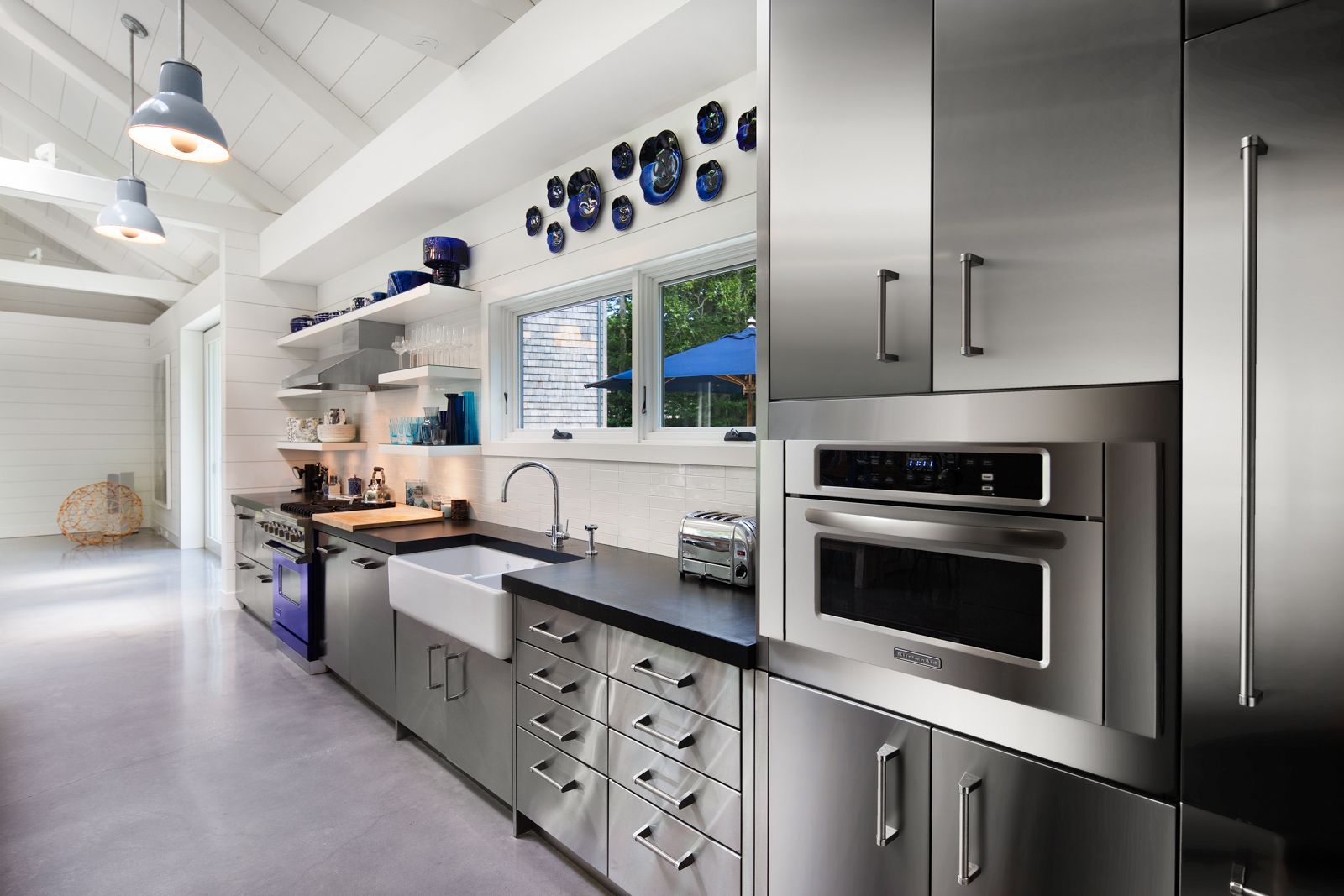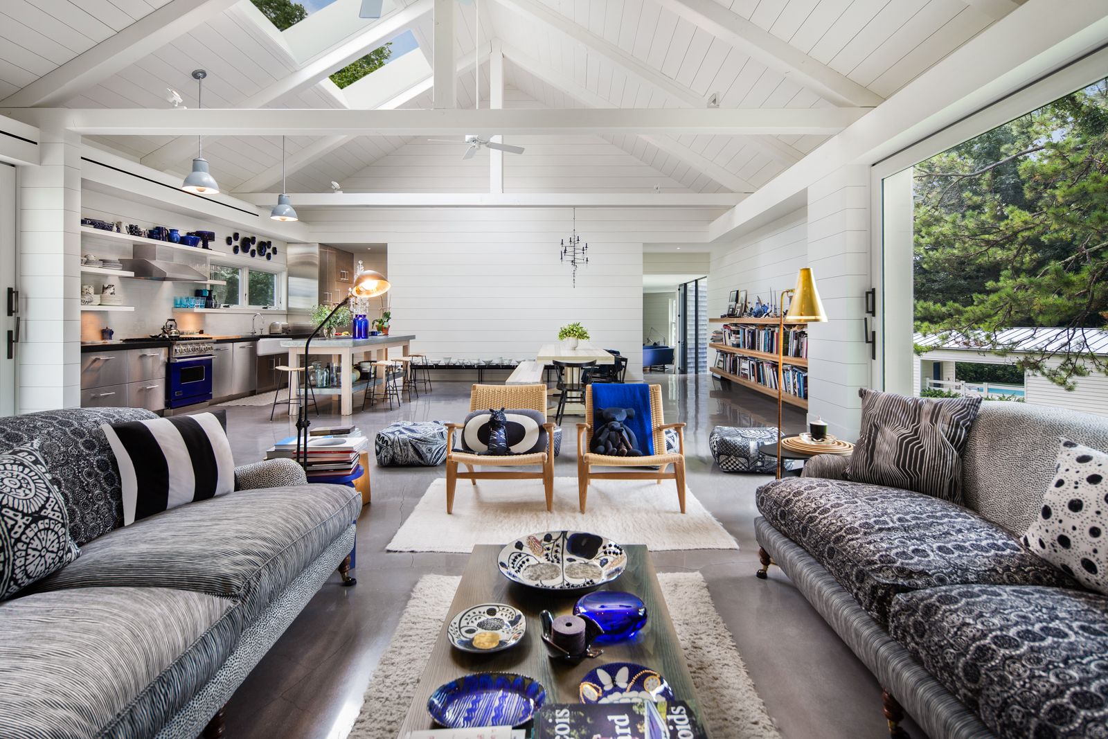 An inspired rendition of a modernist barn-style aesthetic, this well-known architecturally significant home was completed in 2012 by the current owners and embodies the elegant simplicity of country life at the beach. Architecturally unique, two barn-style structures clad in Alaskan silver cedar and a more modern structure are connected by glass and steel walkways all bathed in natural light with floor-to-ceiling windows. One wing serves as a