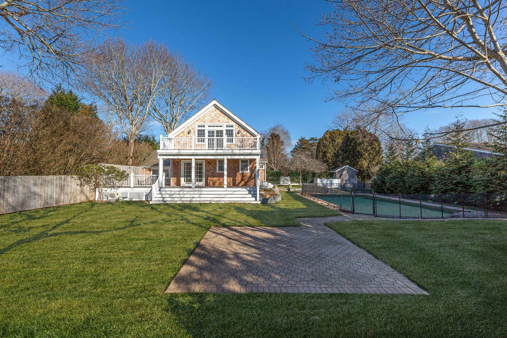Tucked away on a quiet square, this special newly renovated cottage offers the best with all new furnishings overlooking a field of landscaped trees. First time on the market for rent under new ownership. Four bedrooms, four baths, laundry, heated pool, outside wrap around deck with partially covered porch in the back. One bedroom on the first floor en suite, upstairs hosts three bedrooms, two bedrooms share a bath, master suite has an outsi