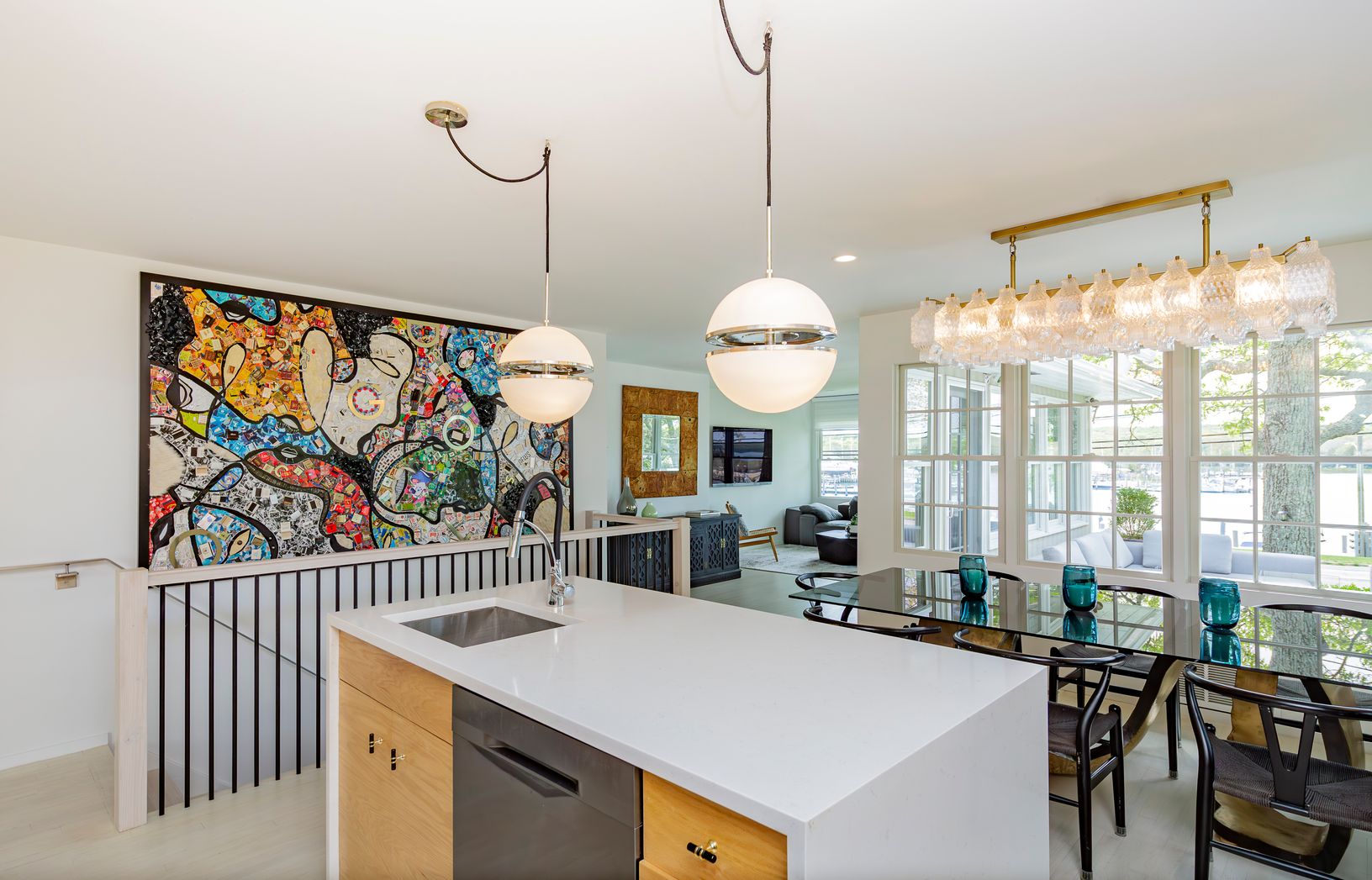 Nestled on a 1.44-acre rectangular property, this serene East Hampton retreat, located at 24 Three Mile Harbor Hog Creek Road, presents a beautifully renovated 3-bedroom, 3-bath stylish home that sits atop a verdant hill, offering breathtaking vistas of Three Mile Harbor, including stunning sunsets that paint the sky, creating a mesmerizing backdrop for evenings spent on the patio.