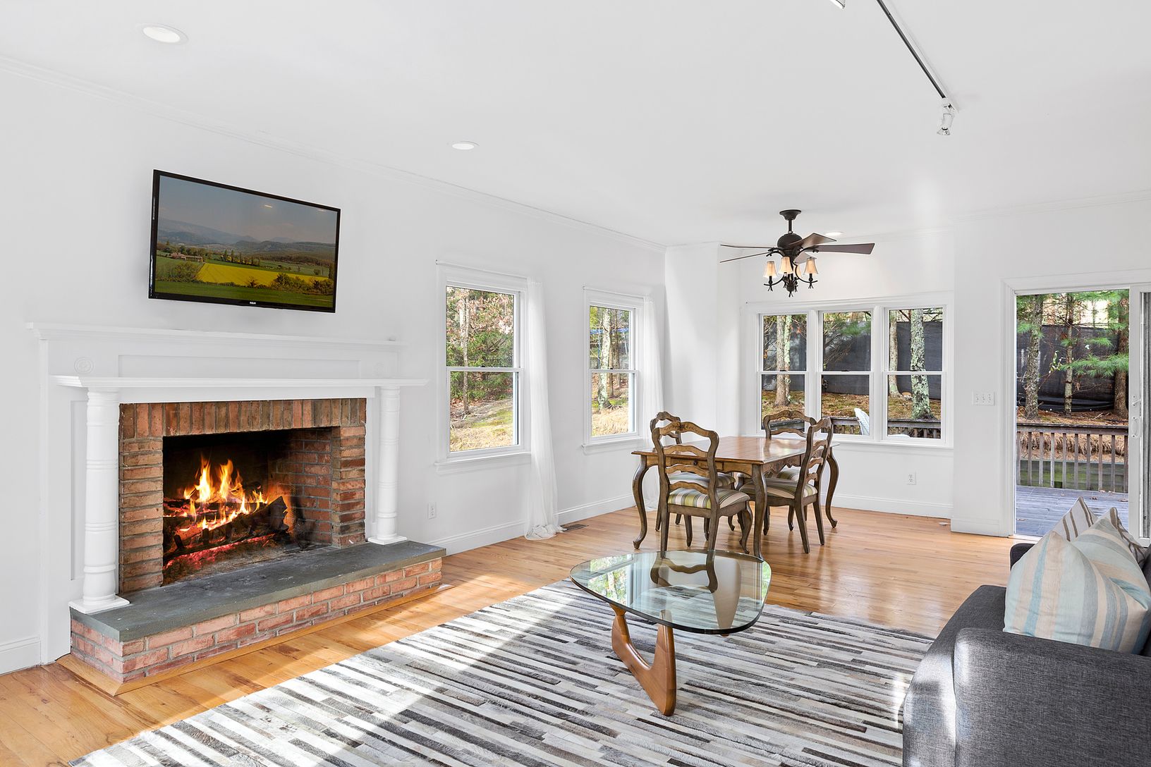 This four bedroom, three and a half bath traditional home is just minutes to the heart of East Hampton, set on just under half an acre. The first floor is a bright and open layout including a spacious living room with a wood-burning fireplace, kitchen and dining area overlooking the outdoor patio and BBQ area. The second floor features the expansive master bedroom and two guest bedrooms. The house also features a two-car garage, finished base