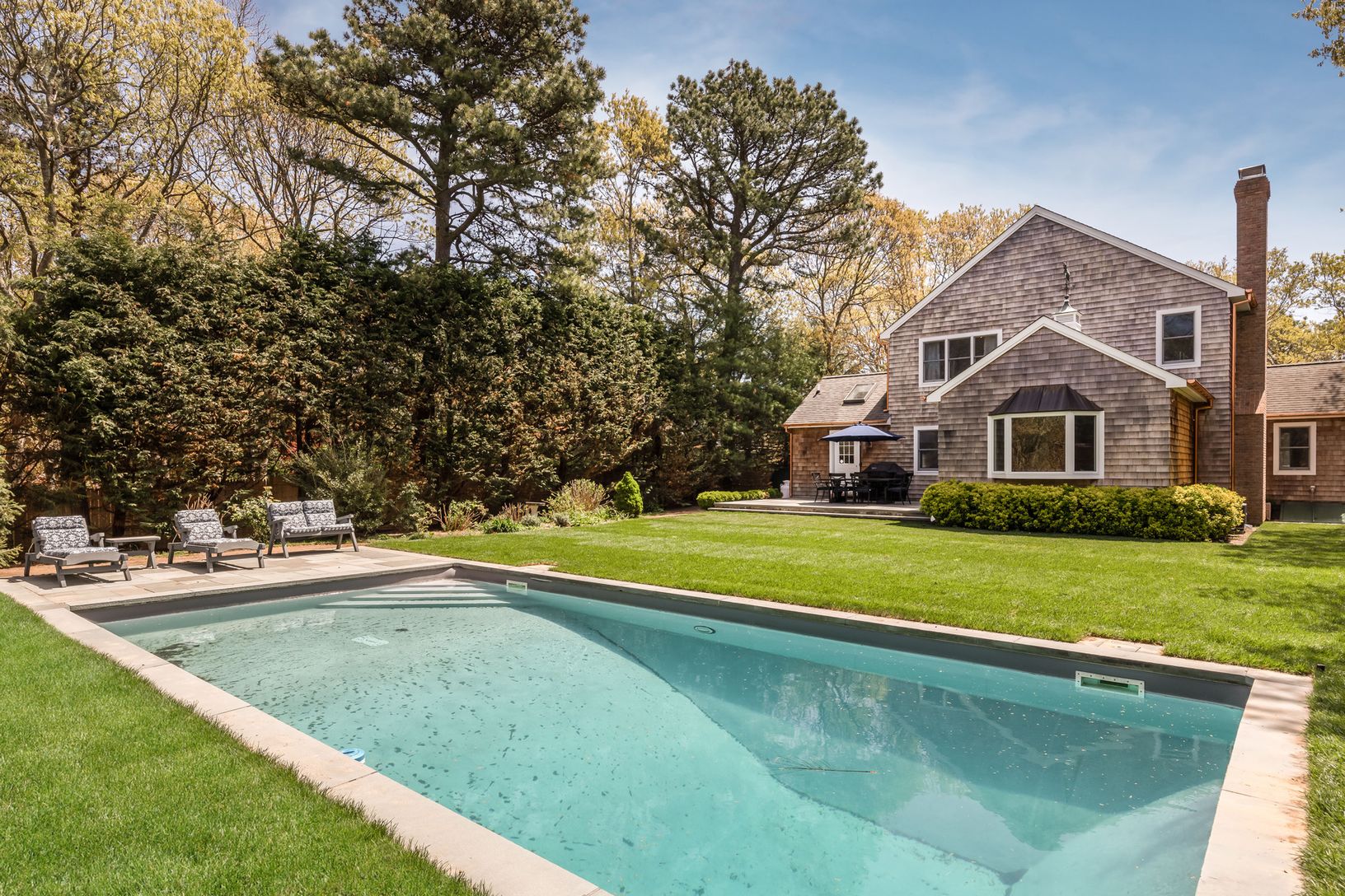 Rental Registration #: 18-1130 Minutes to the villages of East Hampton and Sag Harbor. Have it all in this wonderful four bedroom, three bath Traditional home. Beautifully decorated, brand new country kitchen and great room with fireplace. Formal dining room; master suite with frameless shower and bath. Work out in your private gym and swim in your private pool surrounded by gorgeous landscaping. Spend a most memorable month in the glorious Ha