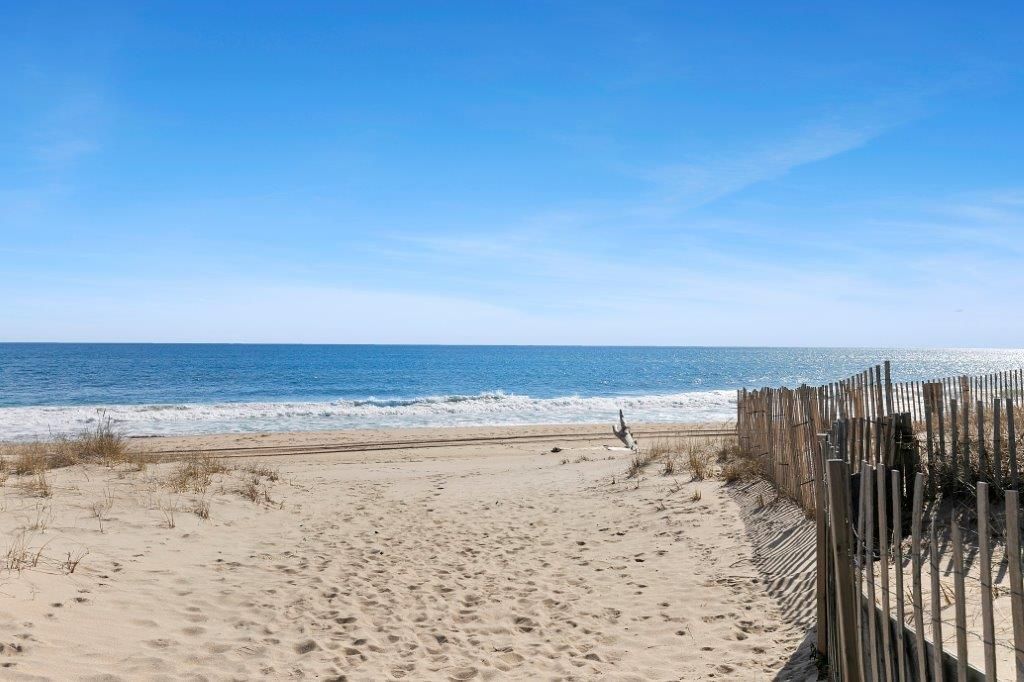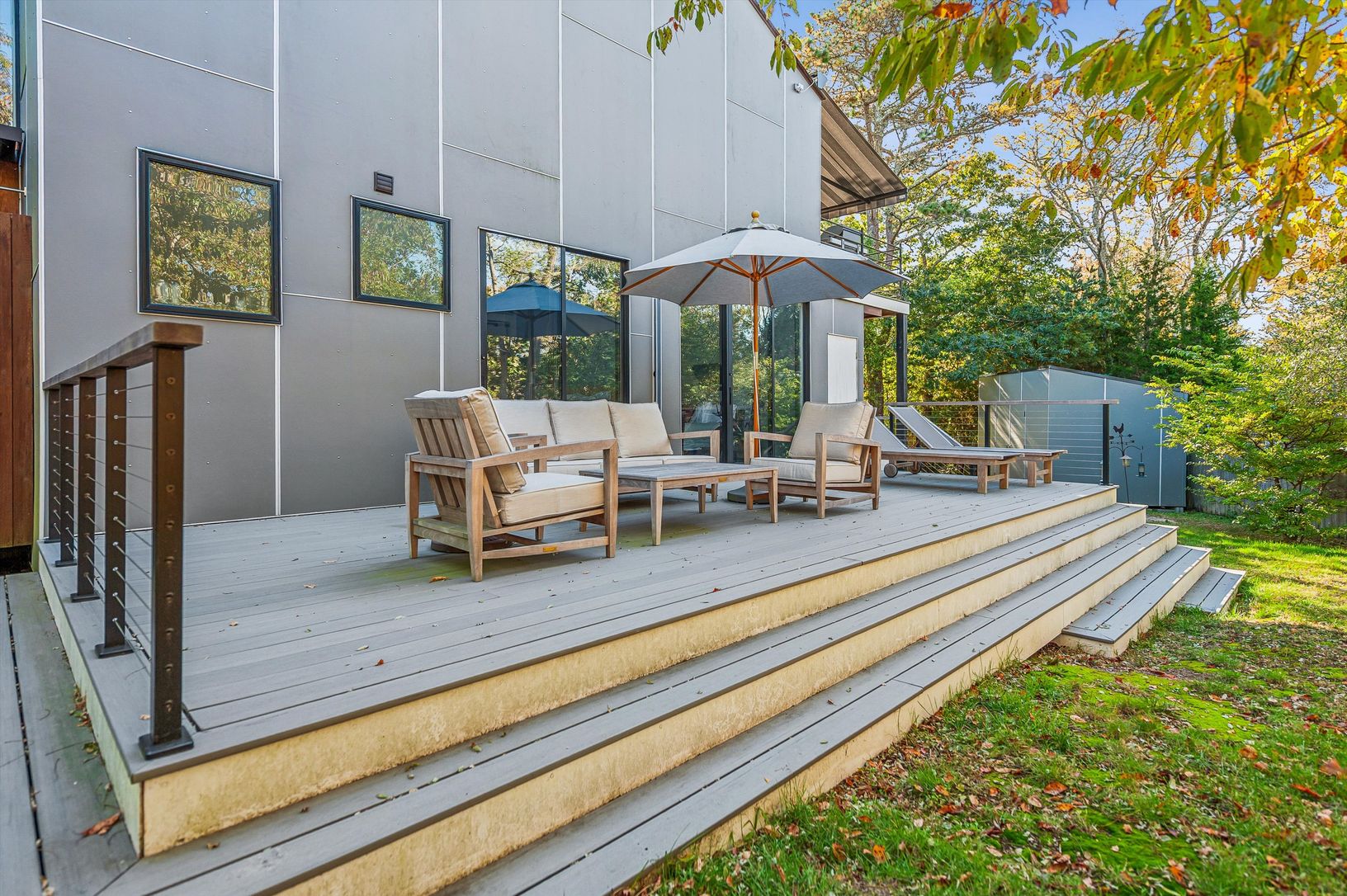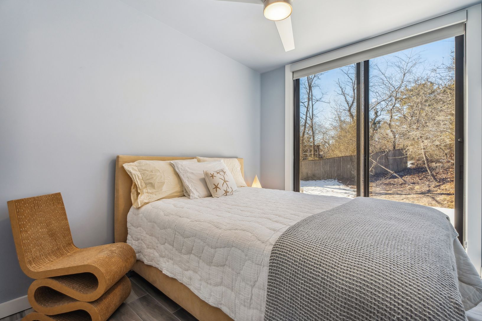 Introducing a stunning modern beach house rental in the coveted Amagansett Dunes, now available for Summer 2026. This beautifully renovated 3-bedroom, 3.5-bathroom retreat offers the perfect blend of luxury and comfort, designed to bring the outdoors in with expansive panes of glass and multi-level decks. The light-filled living room features soaring ceilings, creating an inviting space for relaxation. The chef's kitchen is equipped with a bra