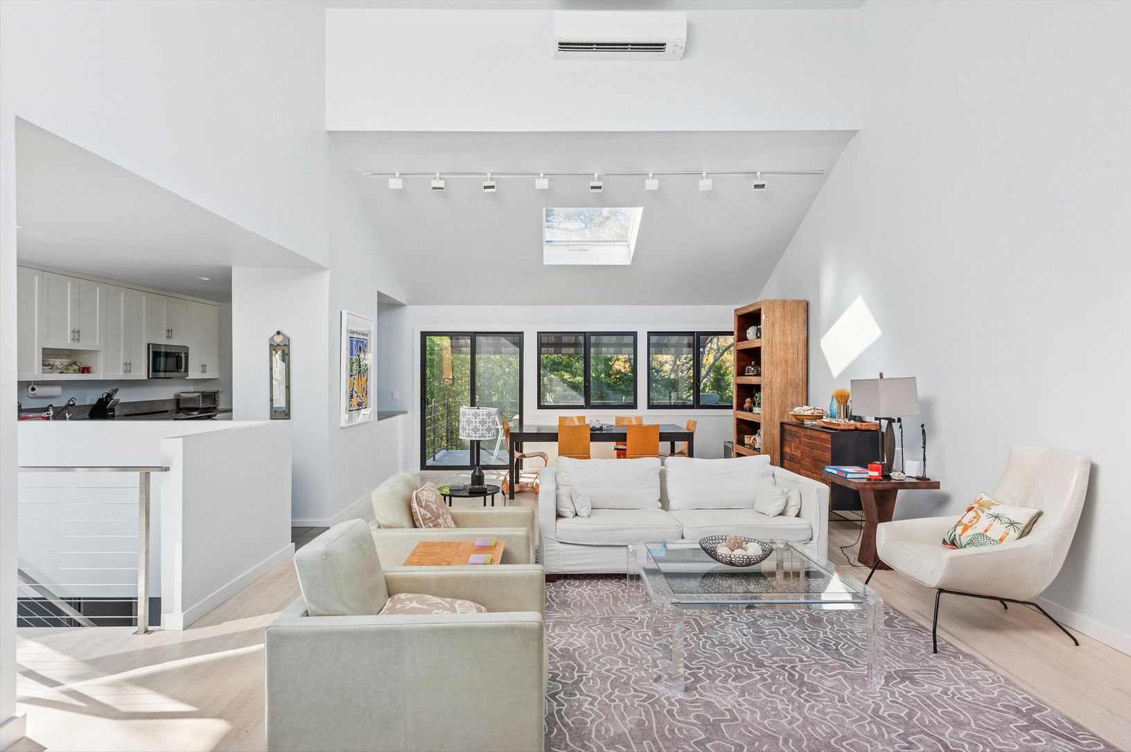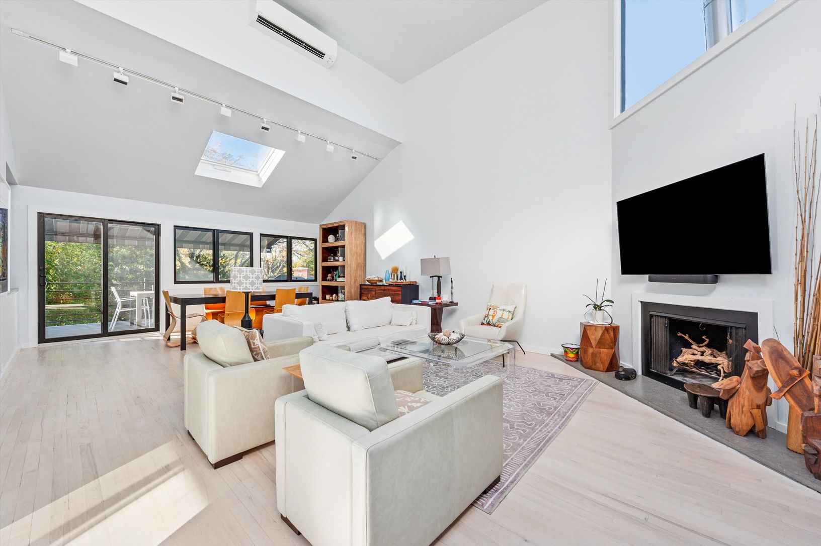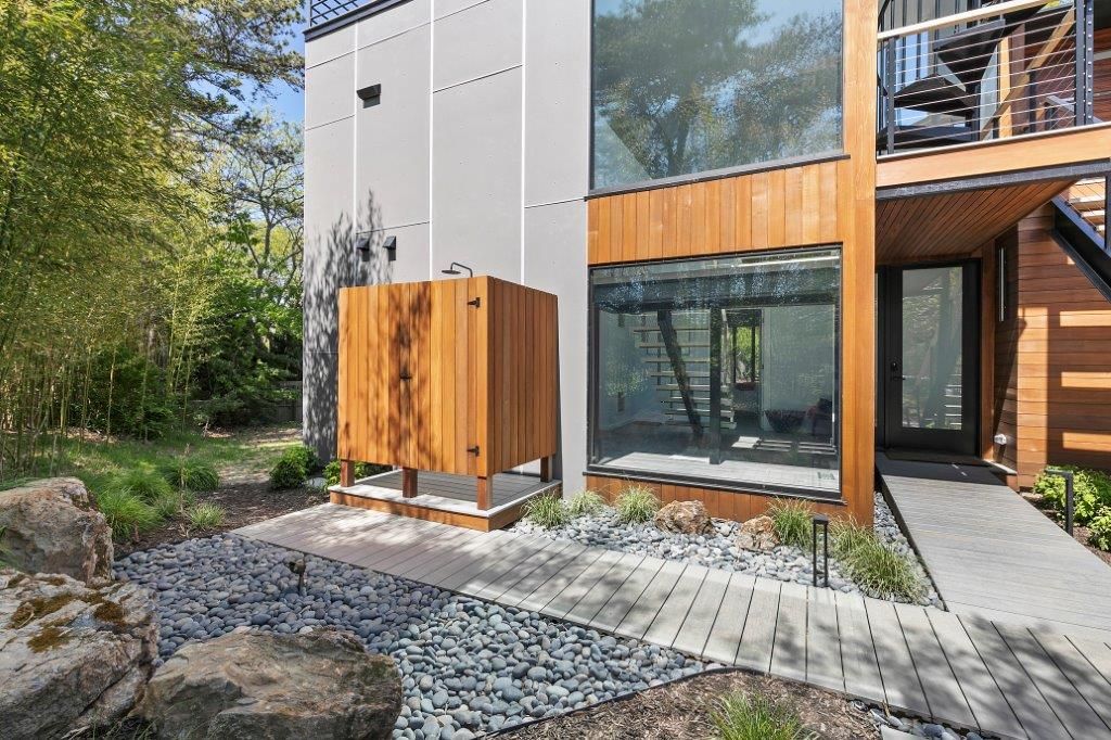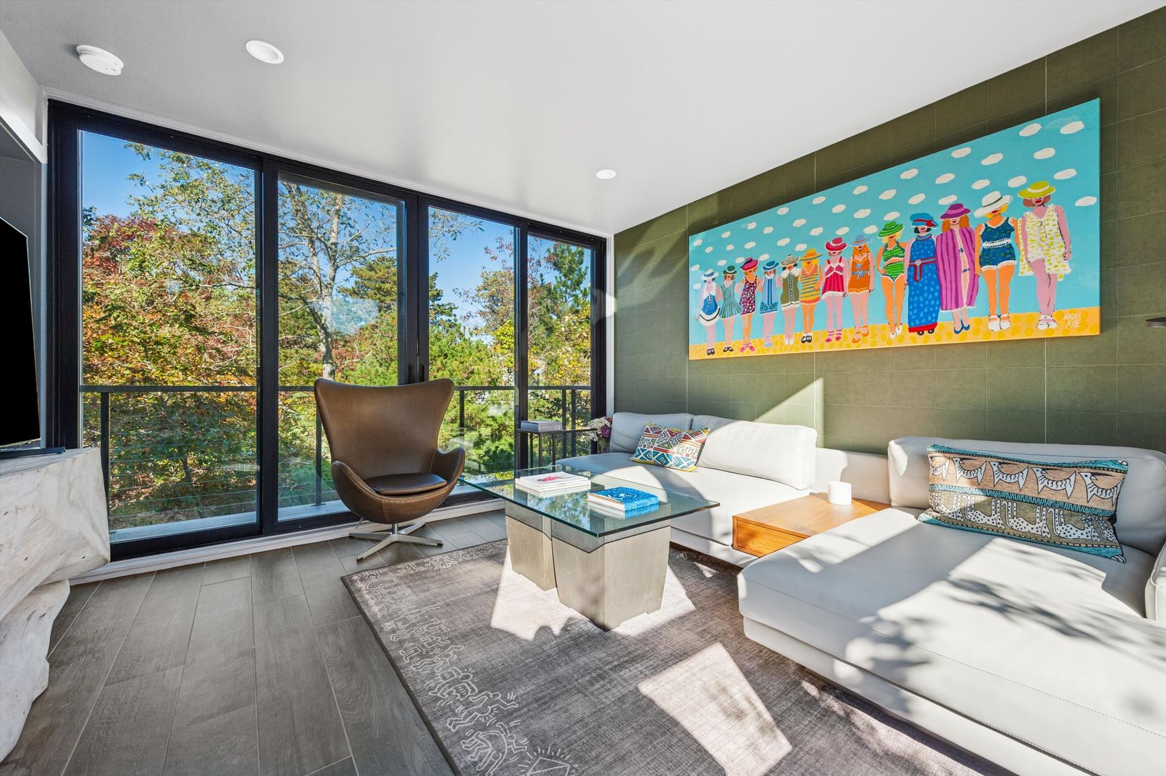Introducing a stunning modern beach house rental in the coveted Amagansett Dunes, now available for Summer 2026. This beautifully renovated 3-bedroom, 3.5-bathroom retreat offers the perfect blend of luxury and comfort, designed to bring the outdoors in with expansive panes of glass and multi-level decks. The light-filled living room features soaring ceilings, creating an inviting space for relaxation. The chef's kitchen is equipped with a bra