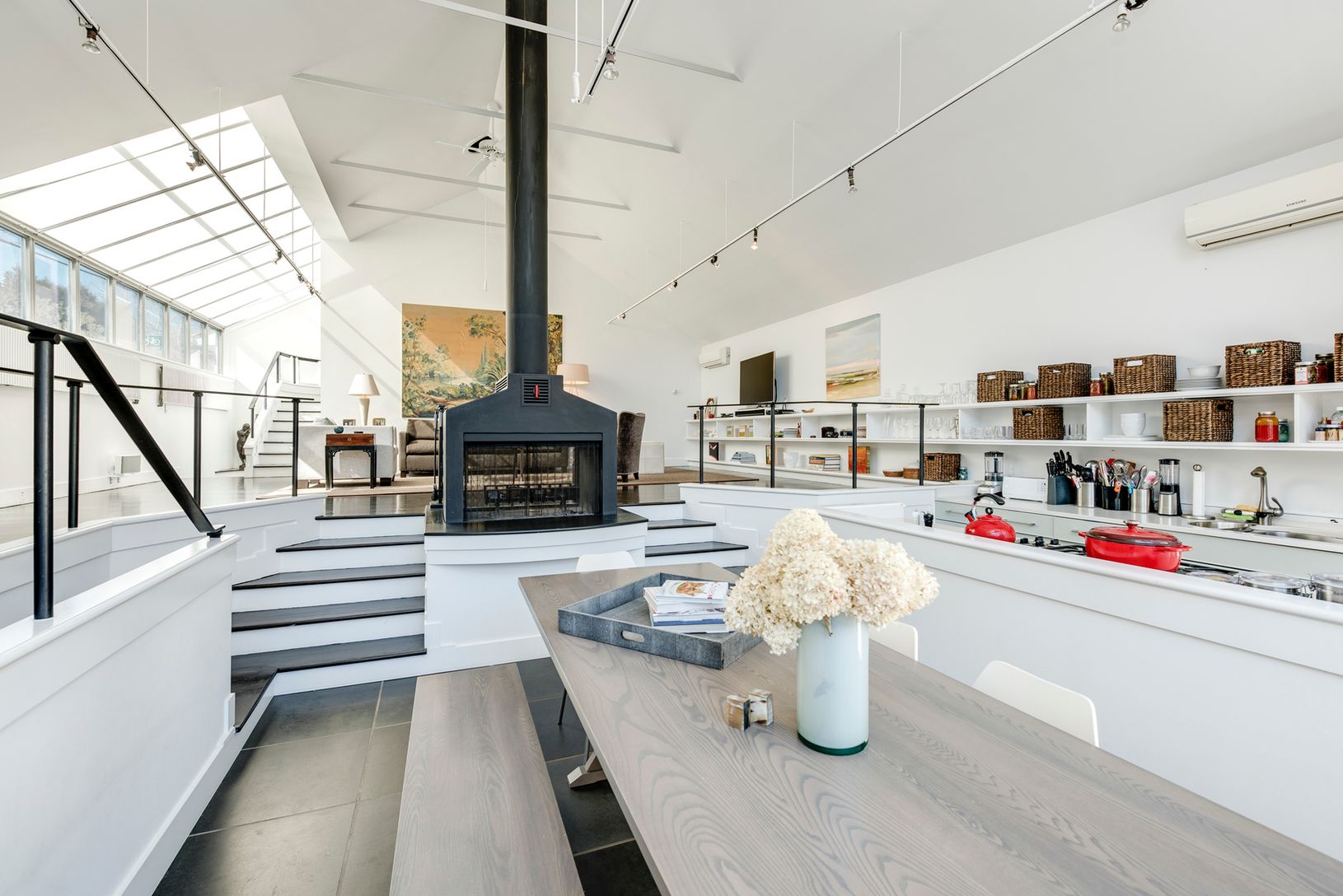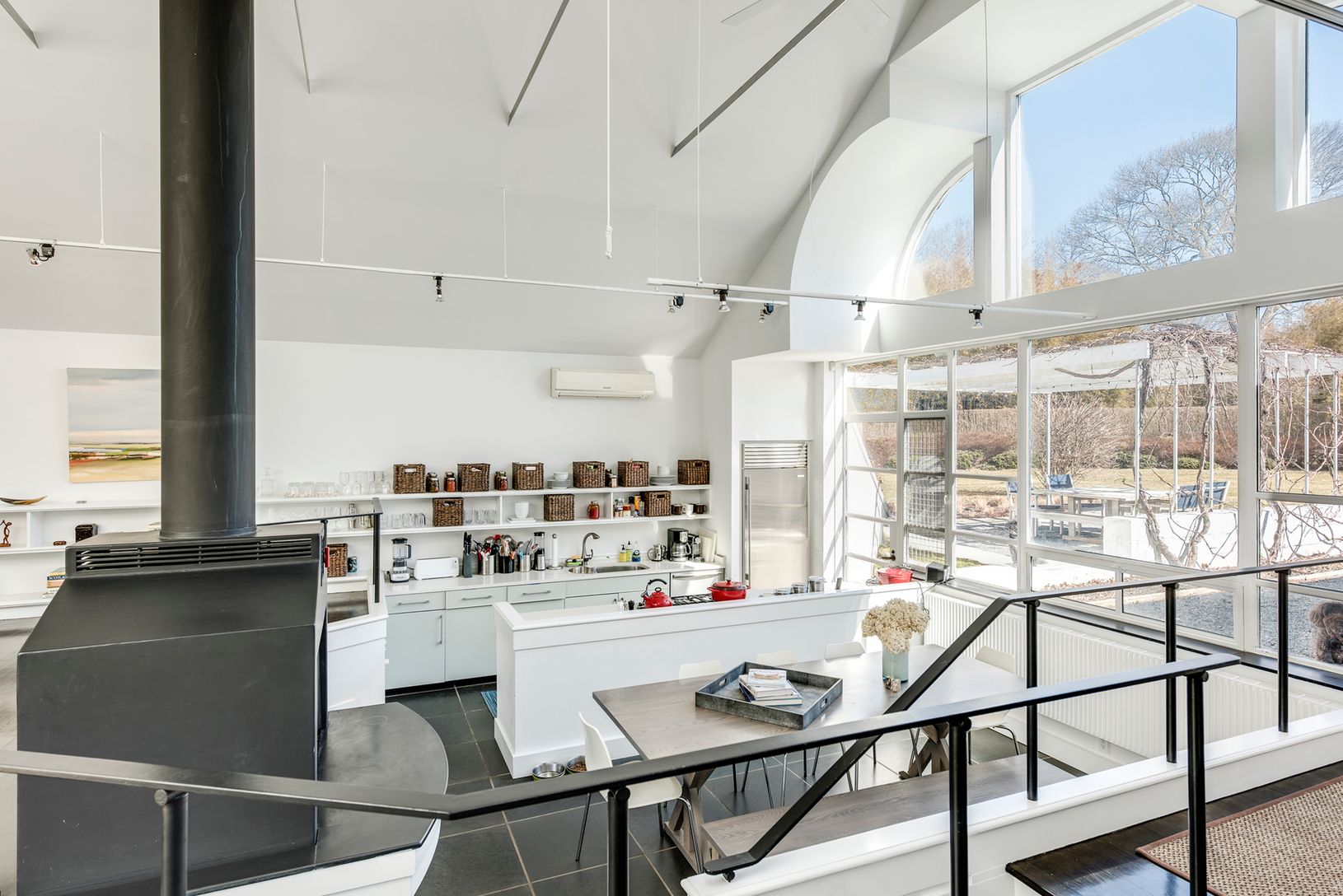 Award winning renovated 1930's potato barn converted into a modern luxury refuge in the heart of Sagaponack Wine & Horse Country. Large open loft-like great room with state of the art kitchen, high ceilings, wall of windows overlooking outdoor dining pavilion, flowering gardens and a symmetrical orchard. Stylishly detailed ebony wood floors in this three bedroom with two newly renovated modern bathrooms all in the comfort of central A/C.