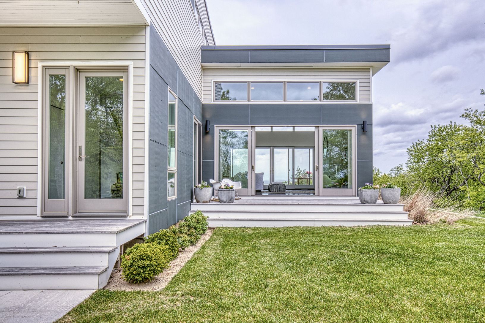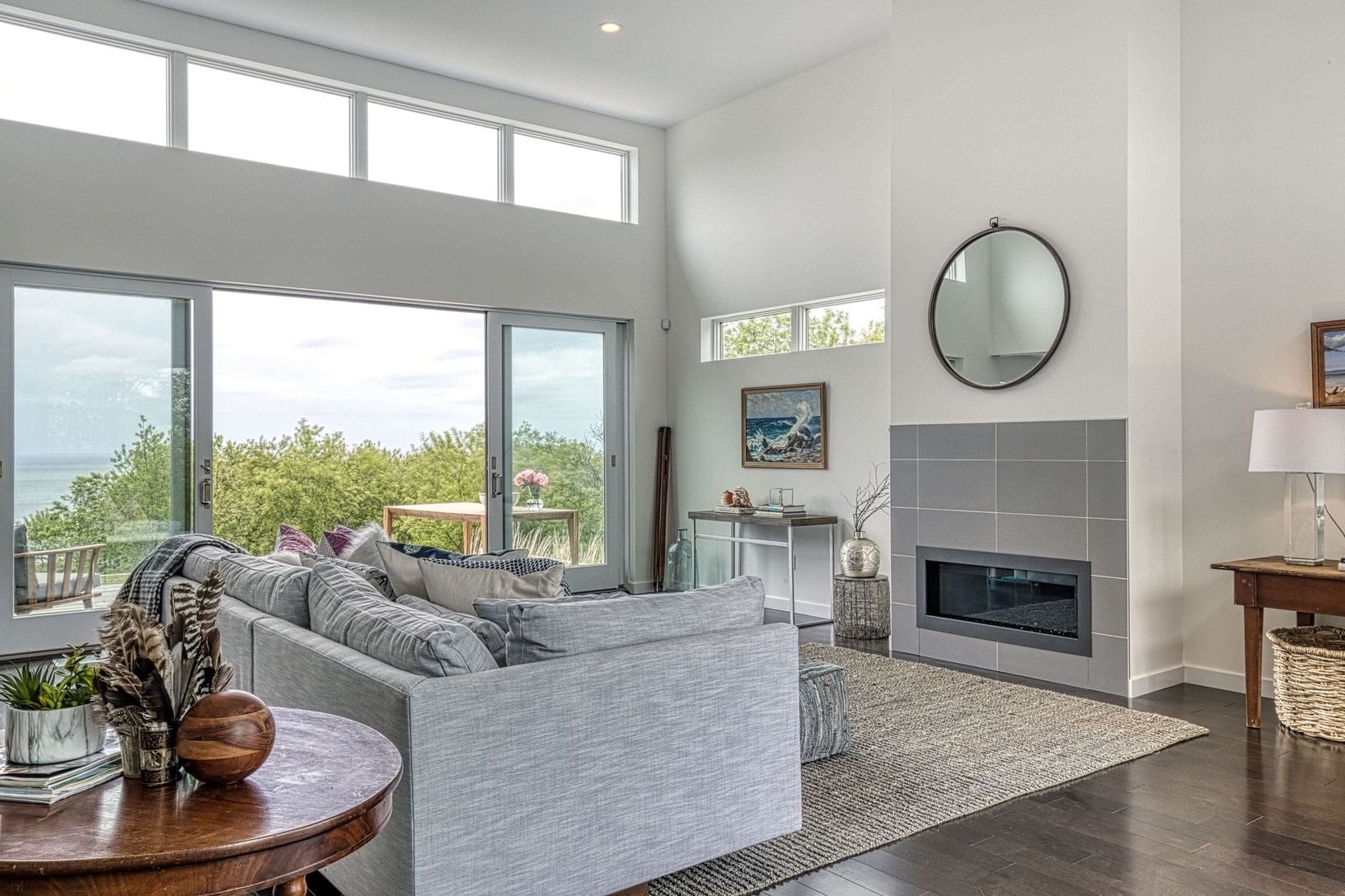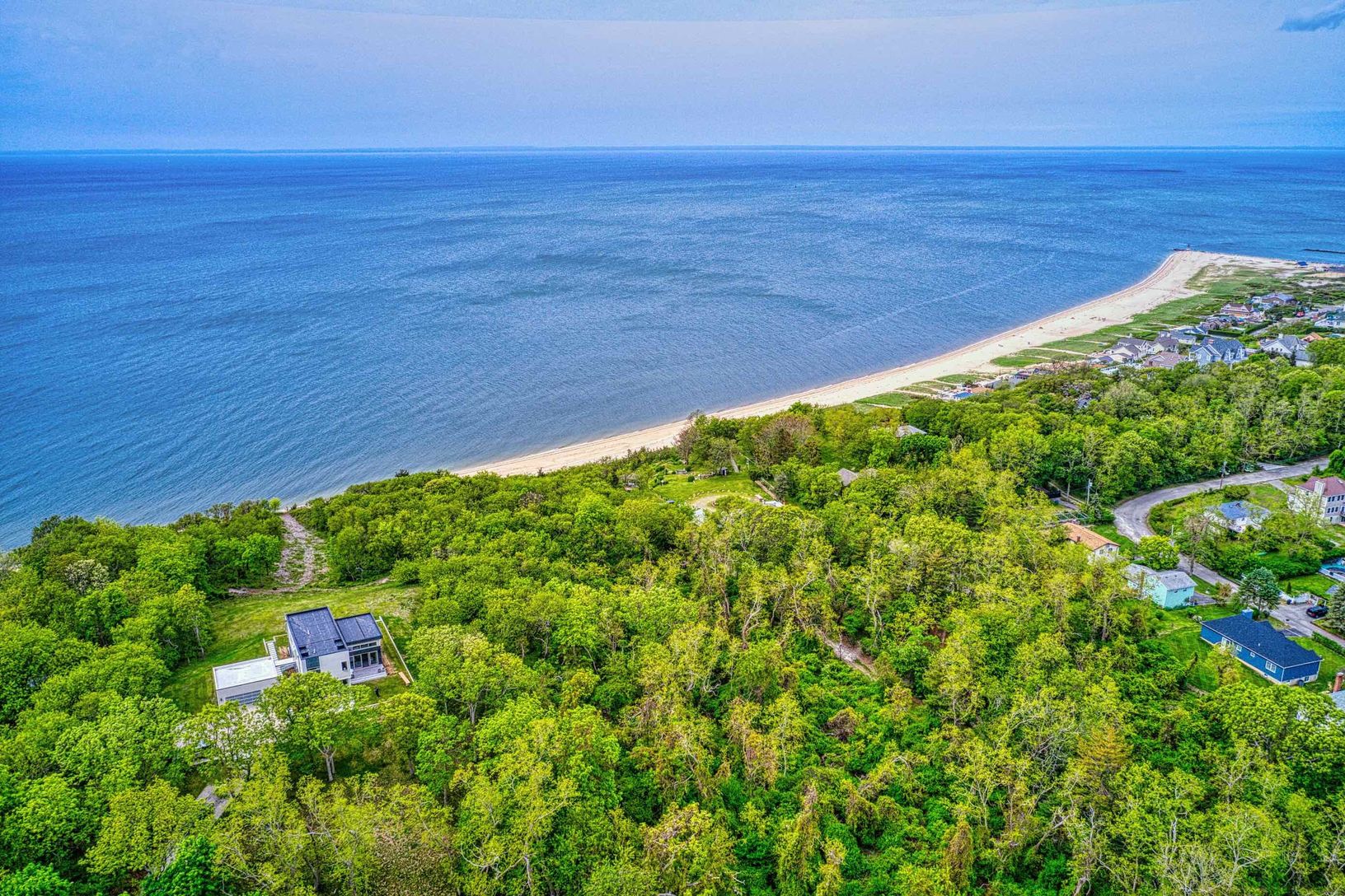 Enjoy beautiful North Fork sunsets from this, exquisitely built modern, light-filled waterfront home in Mattituck with 200 feet of sandy beach frontage. This Rarely found 5.3 acre waterfront estate is truly stunning. The home is beautifully positioned providing spectacular water views and surrounded by gardens, mature specimen trees and lots of room left for a tennis court, pool house, studio and many other possibilities including subdividing