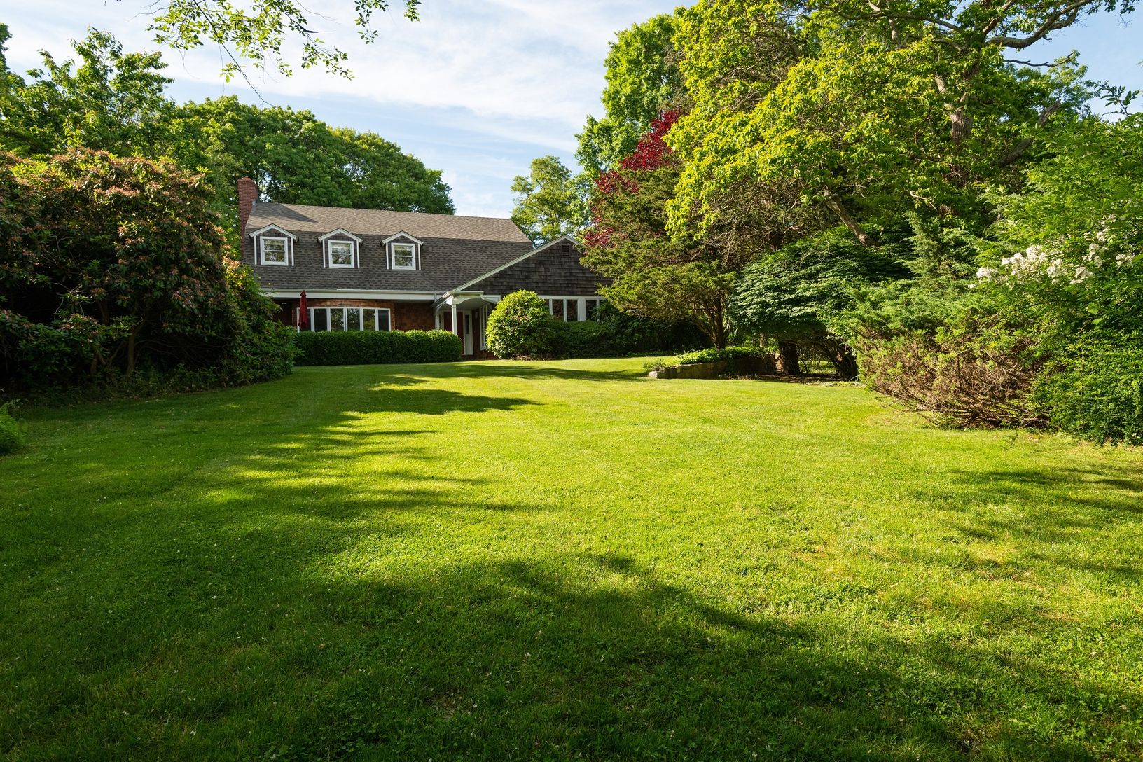 This Traditional Southampton home is located minutes from the Village. Set on almost 3+/- acres, with a long driveway, the property offers privacy and beautiful grounds. A spacious, open floor plan is perfect for today's modern lifestyle. Features include a grand living room with fireplace, den, dining area and a large kitchen with gas stove and top-of-the-line appliances. Ground floor master bedroom and one en suite bedroom oriented towards t