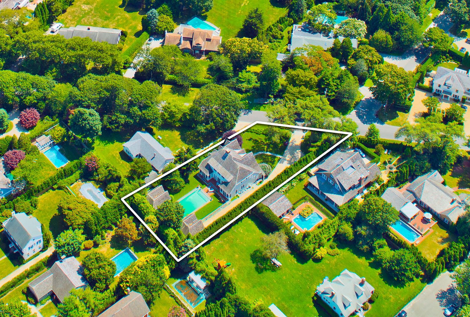 This gracious Southampton Village residence positioned in one of the most coveted and sought after locations has just been listed for the first time. A mere two blocks from the Atlantic Ocean this thoughtfully designed custom home features 6 bedrooms, with a first floor Master,a total of 6 and 1/2 baths, a beautiful gourmet kitchen with adjacent breakfast room, a pool house with full bath, a 20 X 40 heated pool framed with bluestone patio and