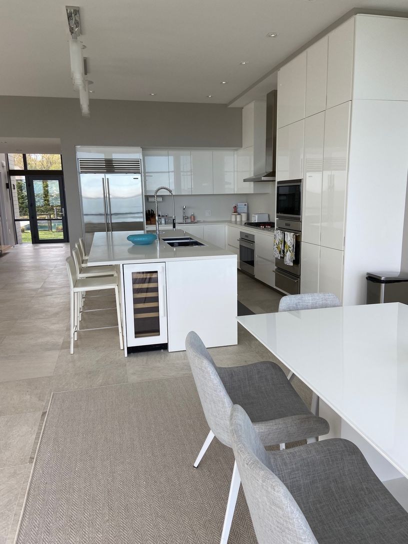 WATERFRONT/BAYFRONT - FABULOUS VIEWS - The Italian kitchen is luxury and home provides every amenity for easy living at the beach. Its many features include state of the art double appliances, quartz counter tops, custom cabinetry with ample prep and serving space. There are five ensuite bedrooms with glass enclosed balconies for sensational unobstructed views. The double height glass foyer flows to an exquisite floating glass staircase acces