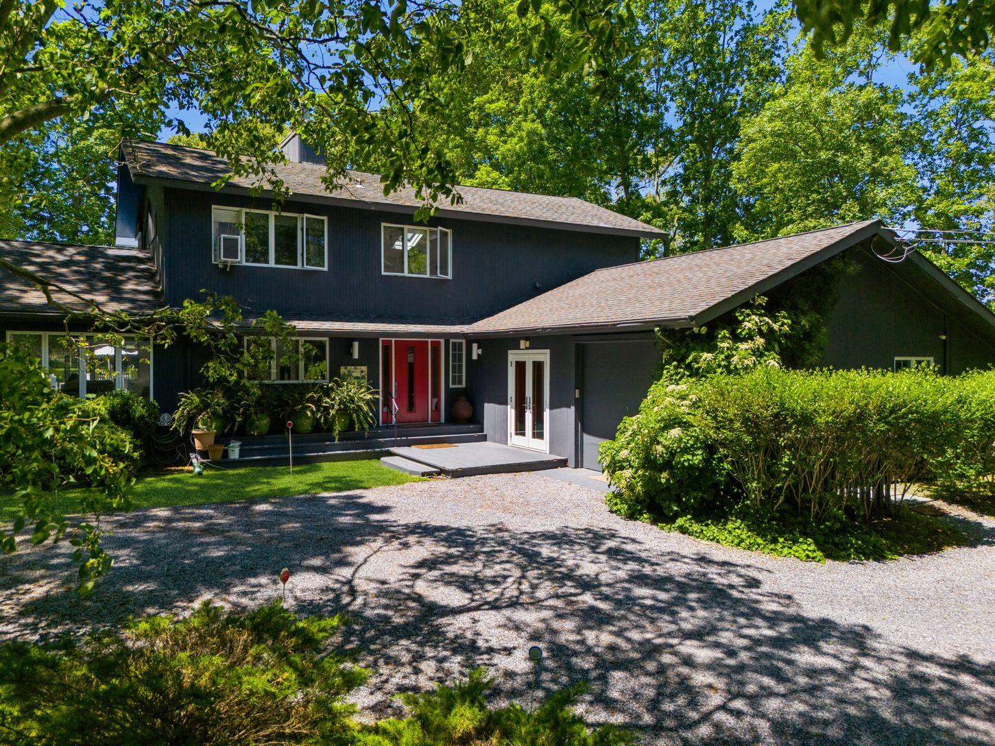 Down a rare 356+' driveway sits a 1 acre + flag lot on bucolic Blank Lane, with unobstructed western farm field views . Keep as is or make your own 5-7000 sf home at this incredible SOH type of location, for a fraction of the cost. The current house is a split level ranch with exceptional views and privacy for that discerning buyer. This 3500 sf home has 5 bedrooms and 4 bathrooms, 2 primary are en suite while the 3 primary sits on the seco