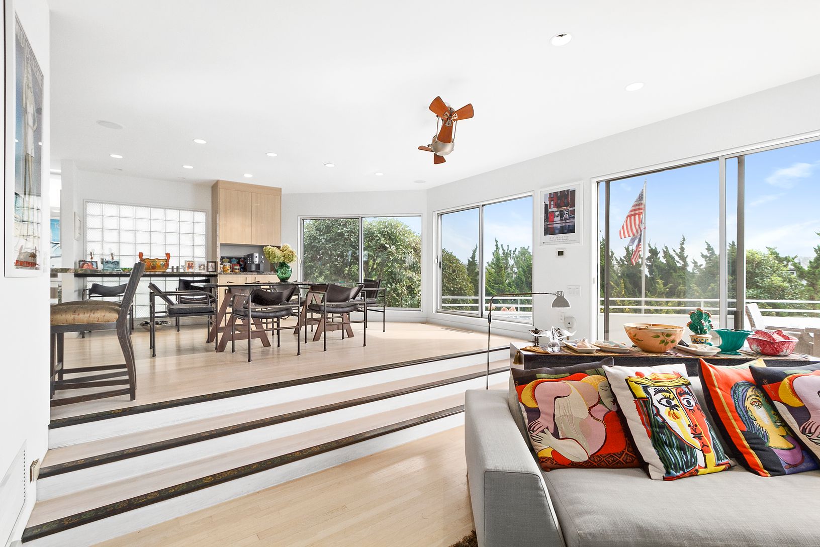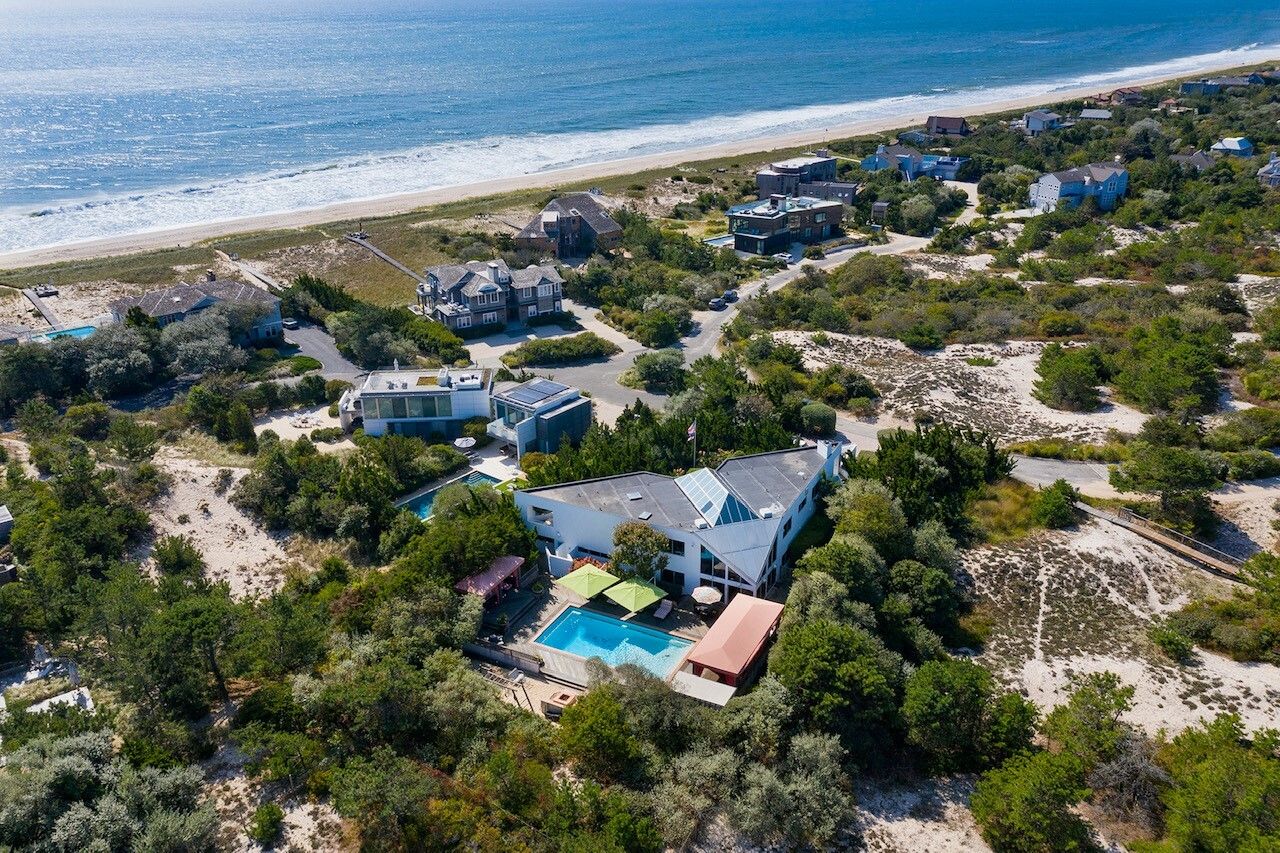 Rarely does a turn-key property with the size, scale, breadth, and condition come up for sale in coveted Amagansett Dunes. With deeded beach access, located less than 300 feet from the powdery sand of the Atlantic, this striking Hollenbeck contemporary is set on a dune to maximize ocean views. This 6000+ square foot contemporary home with 1 Million in renovations and walls of glass throughout features 8 bedrooms, 5 full and 2 half baths sited