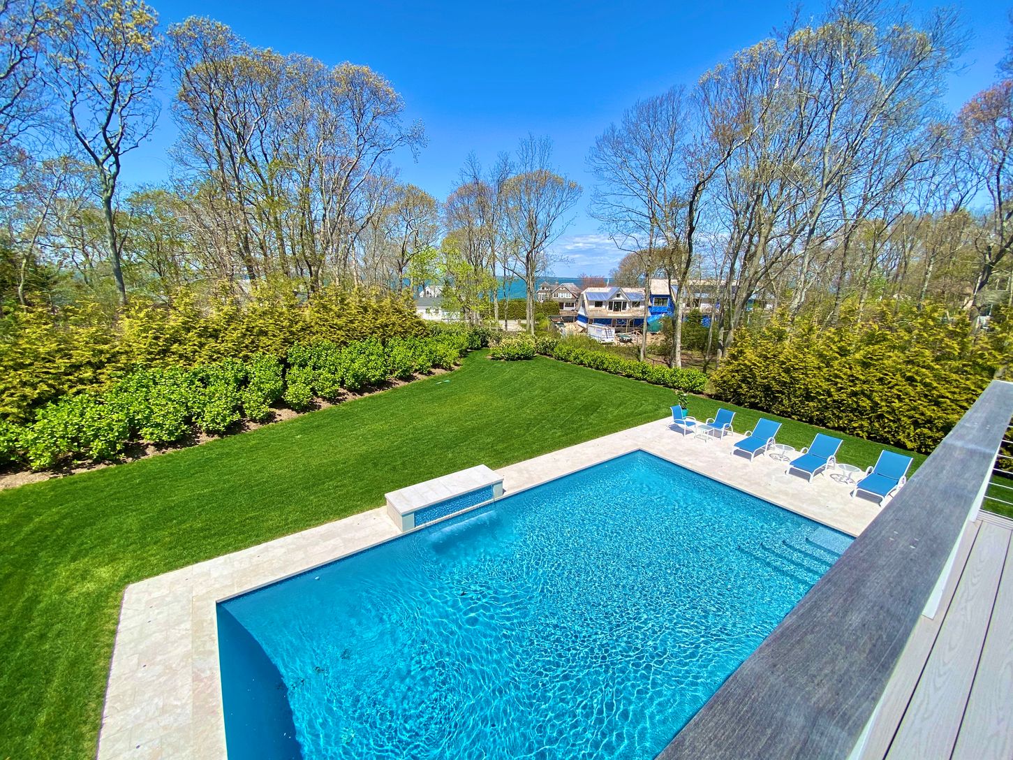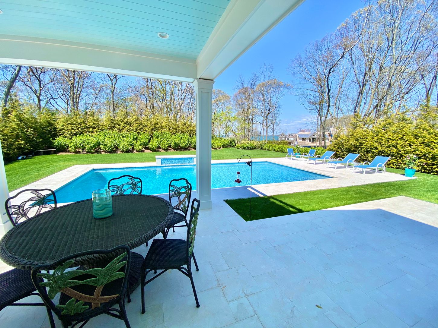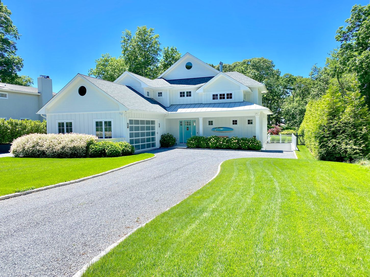 You can enjoy this new Farrell-built, water view five bedroom, five bath home on .45+/- acre in Southampton. Built in 2017, the 3,600+/- sq. ft. home has all you need for the perfect Hamptons summer. Located just half a block to a private bay beach, you can moor your boat a block away. Entertain in the state of the art custom kitchen with lighted cabinets and quartzite counters, on the marble patios, or in the walkout lower level with wet ba