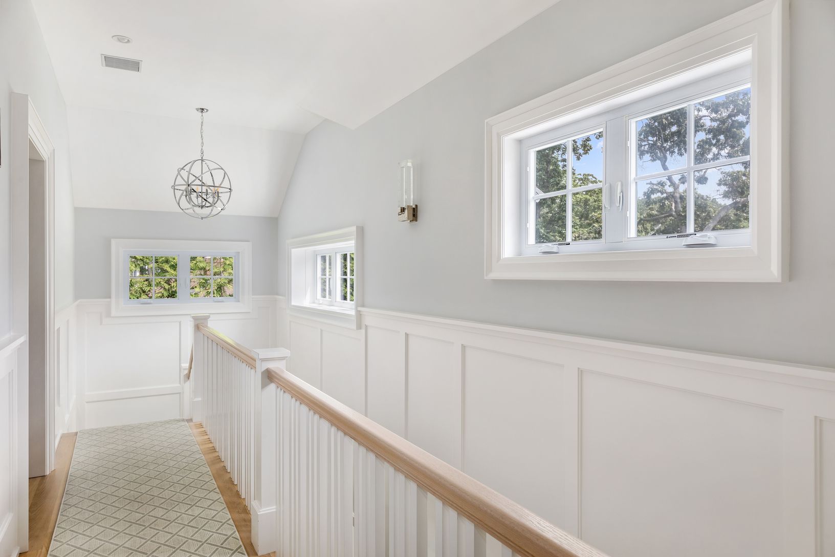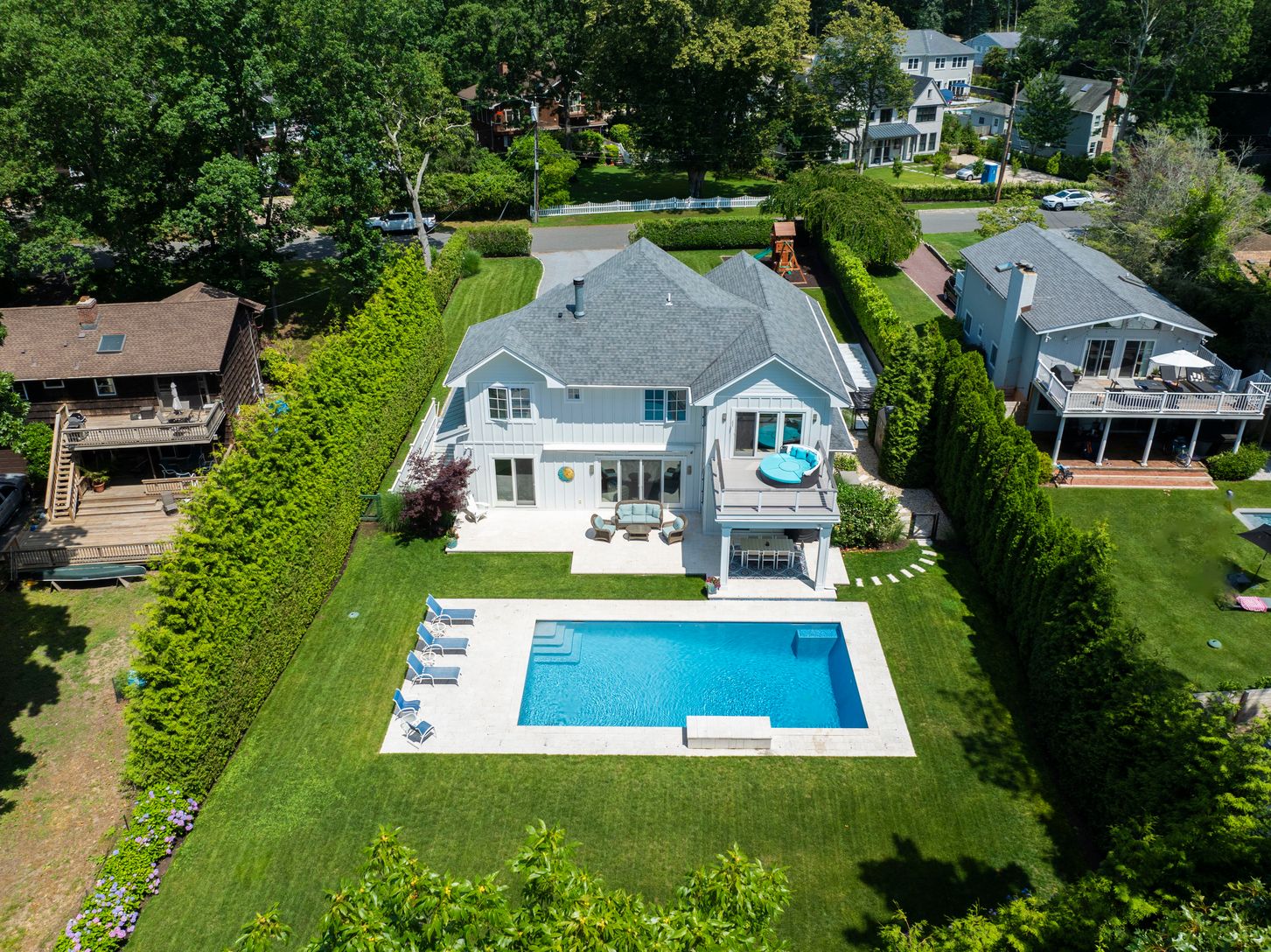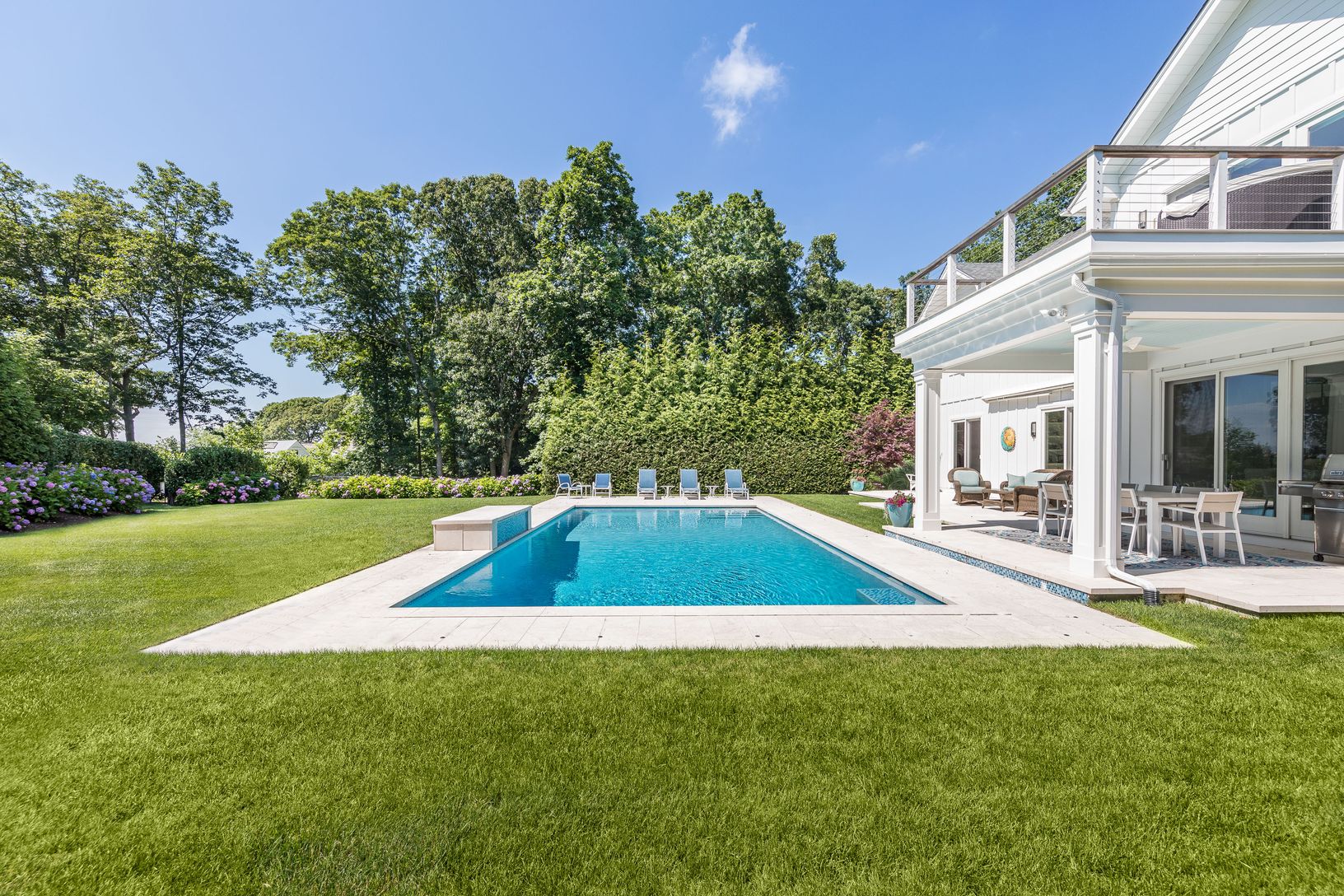 Welcome to 25 Bayview Road North, an exquisite 5 bedroom, 4.5 bath coastal-style residence in Southampton situated half a block from a long private beach in the Bay View Oaks waterfront community. This custom-built designer gem is offered move-in ready entirely furnished for immediate spring and summer enjoyment. Set back from the road on a sunny, fully cleared, and immaculatel