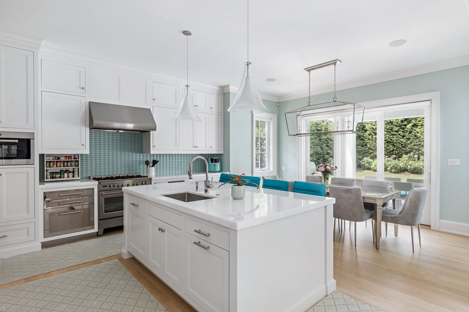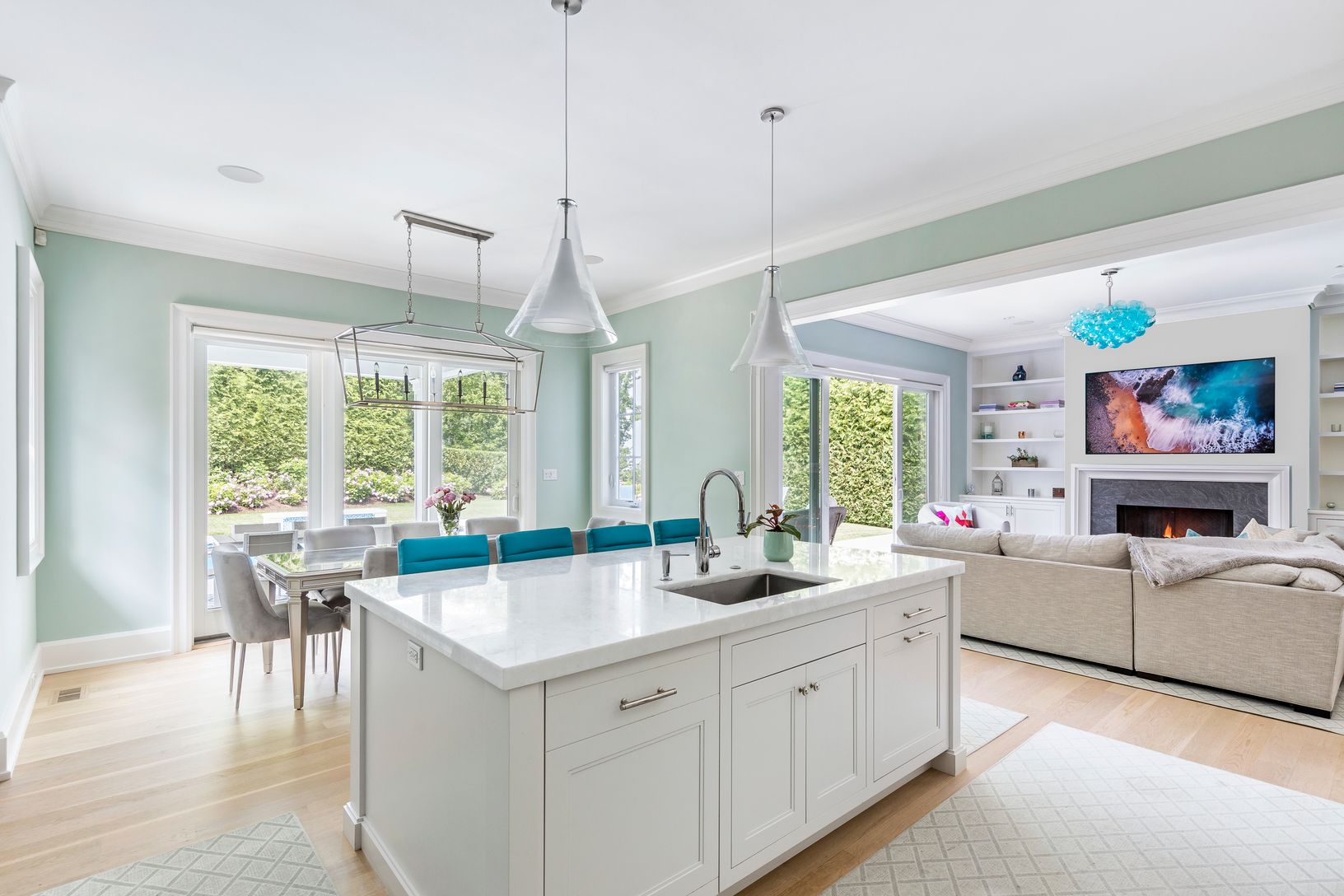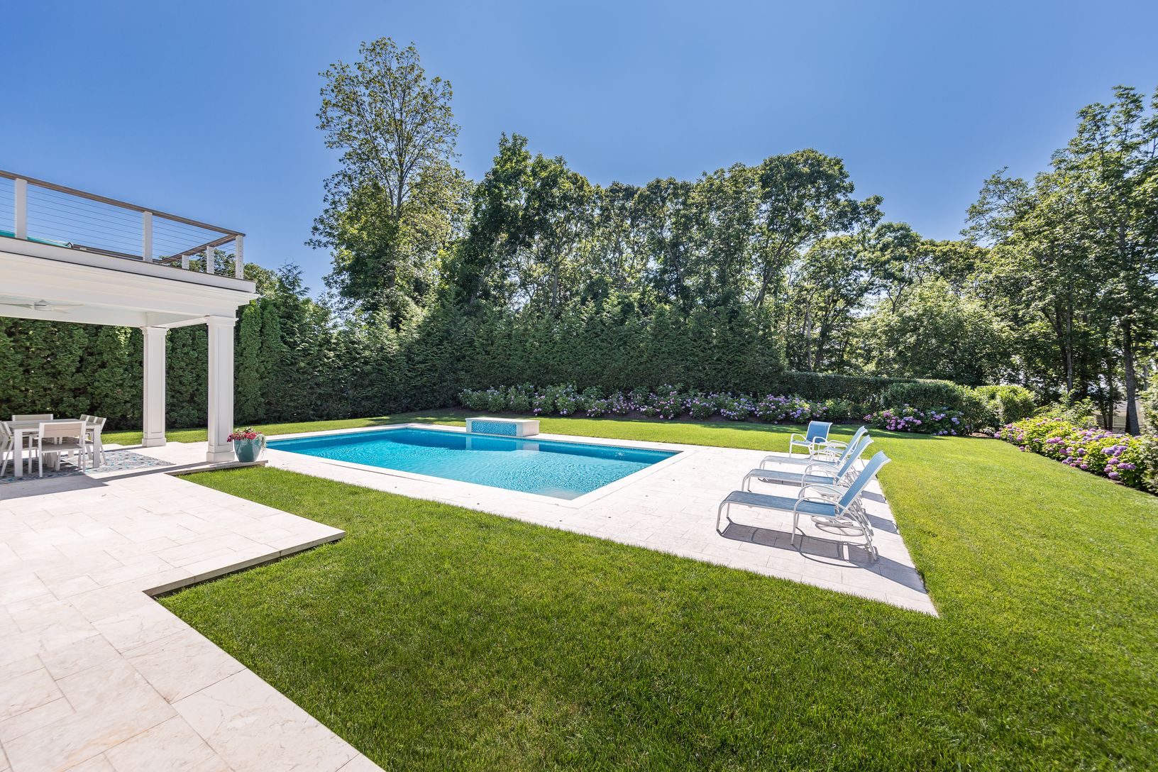 Welcome to 25 Bayview Road North, an exquisite 5 bedroom, 4.5 bath coastal-style residence in Southampton situated half a block from a long private beach in the Bay View Oaks waterfront community. This custom-built designer gem is offered move-in ready entirely furnished for immediate spring and summer enjoyment. Set back from the road on a sunny, fully cleared, and immaculatel