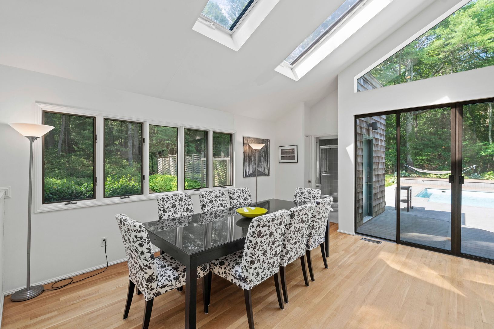 This beautifully designed contemporary home is filled with natural light and offers a seamless indoor-outdoor living experience. Set on a quiet cul-de-sac just outside East Hampton Village, it offers privacy while remaining close to ocean beaches, restaurants, and shops.