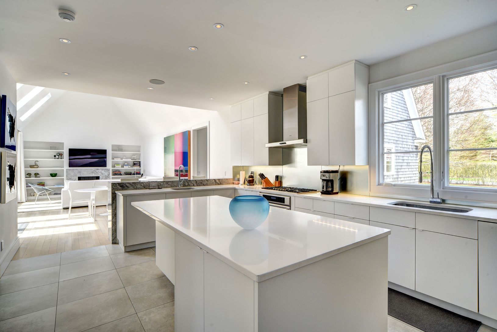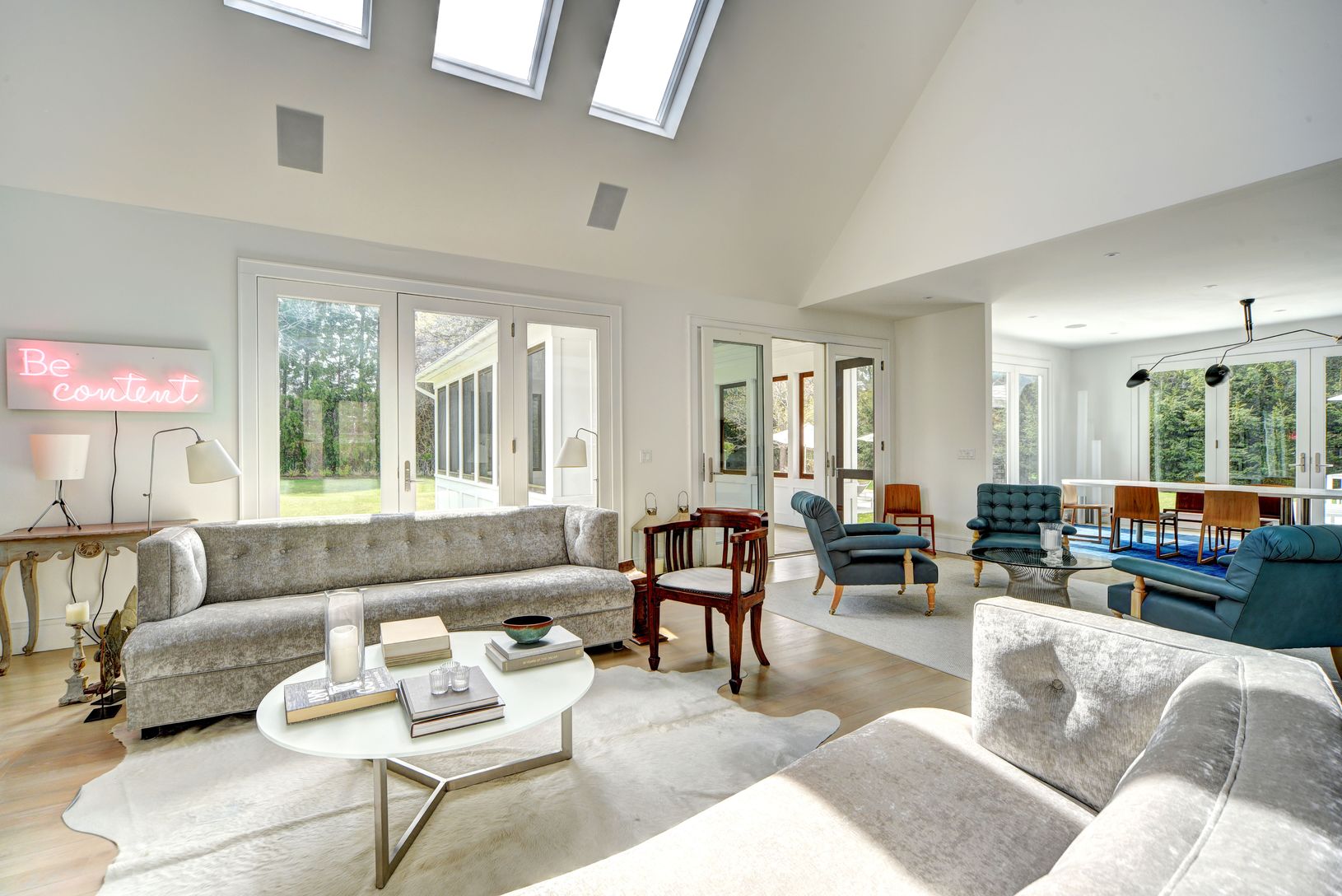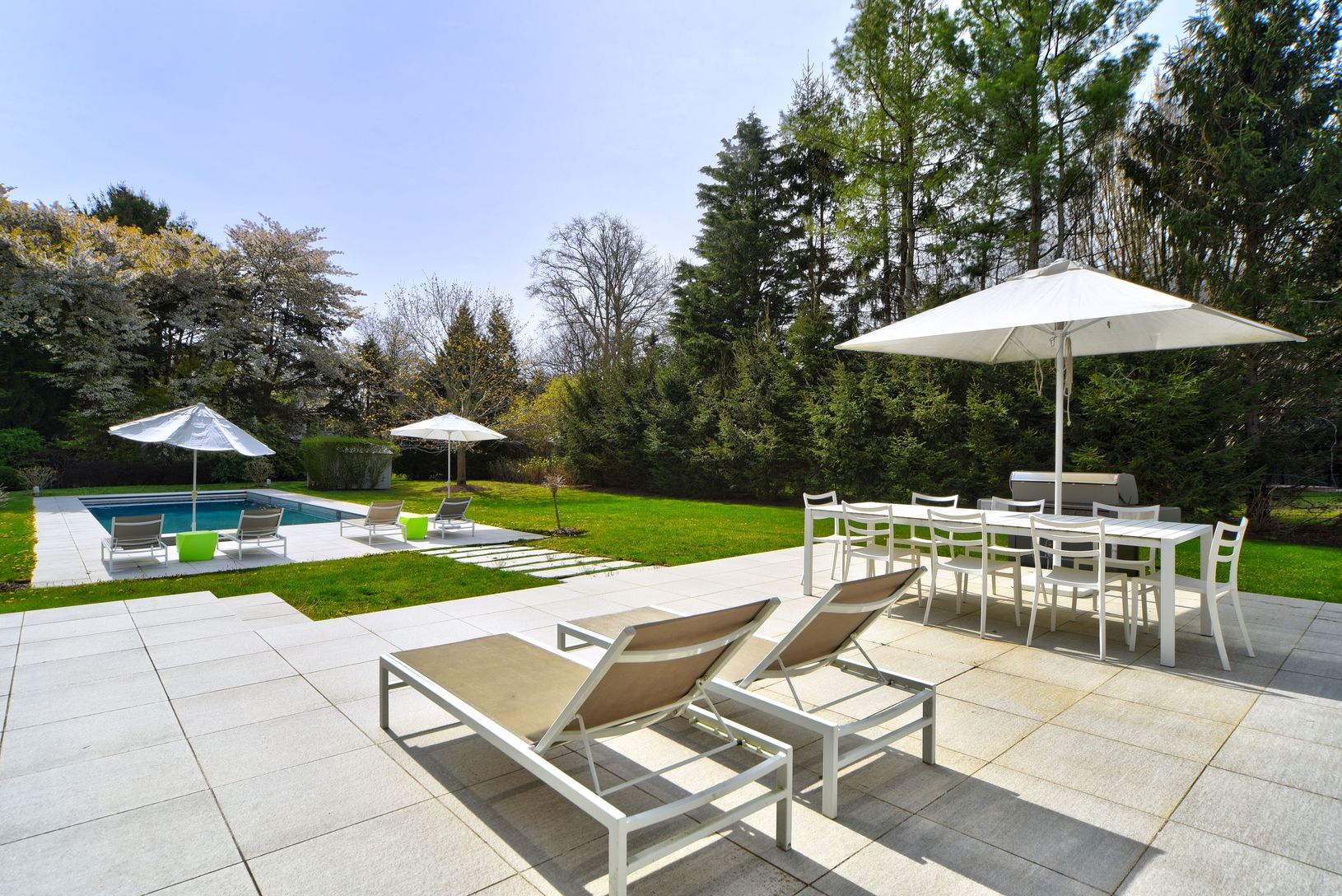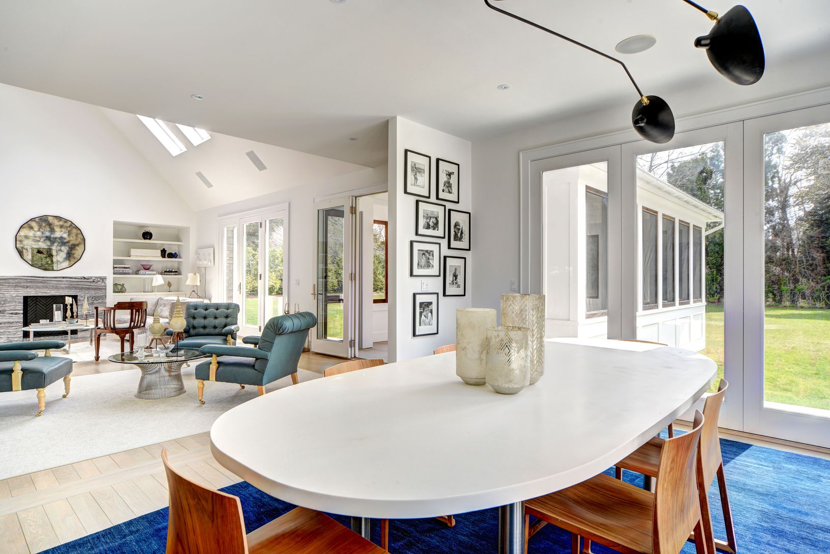Located minutes from the village and ocean beaches of East Hampton, this 6+ bed 6.5 bath traditional is the perfect summer getaway. Completely renovated, the open floor plan connects a large living room to the dining room, and screened-in porch along with the kitchen and media room, all overlooking the pool and expansive backyard. The primary bedroom is on the first floor and opens up to the backyard. Four additional bedrooms are located on th