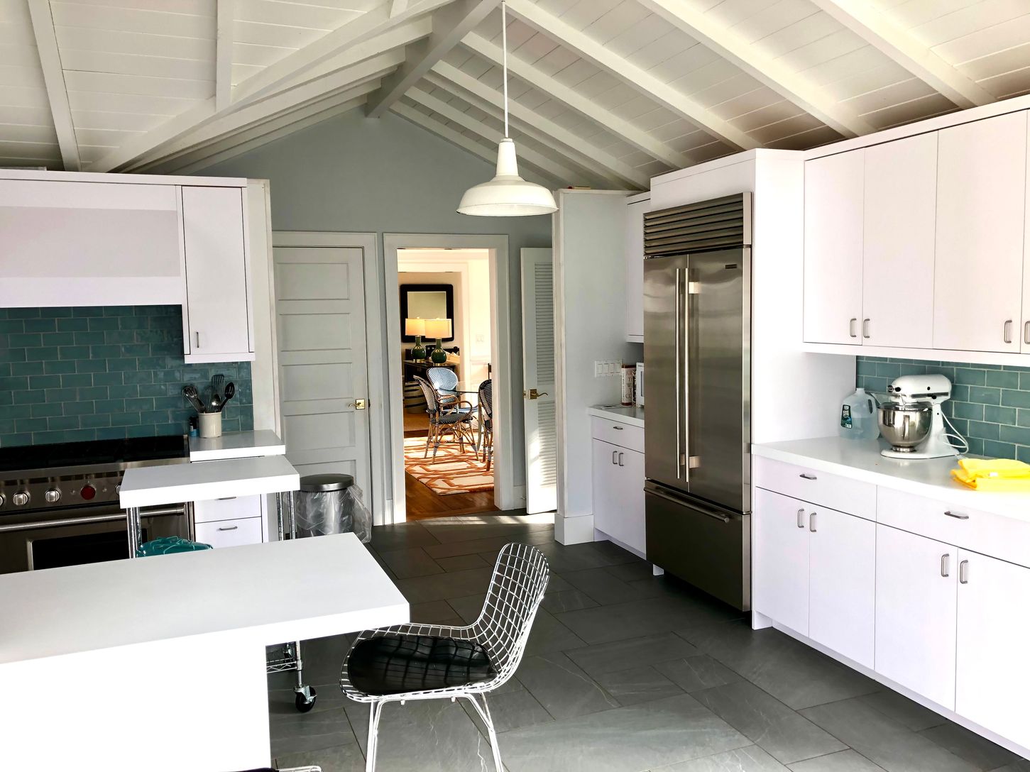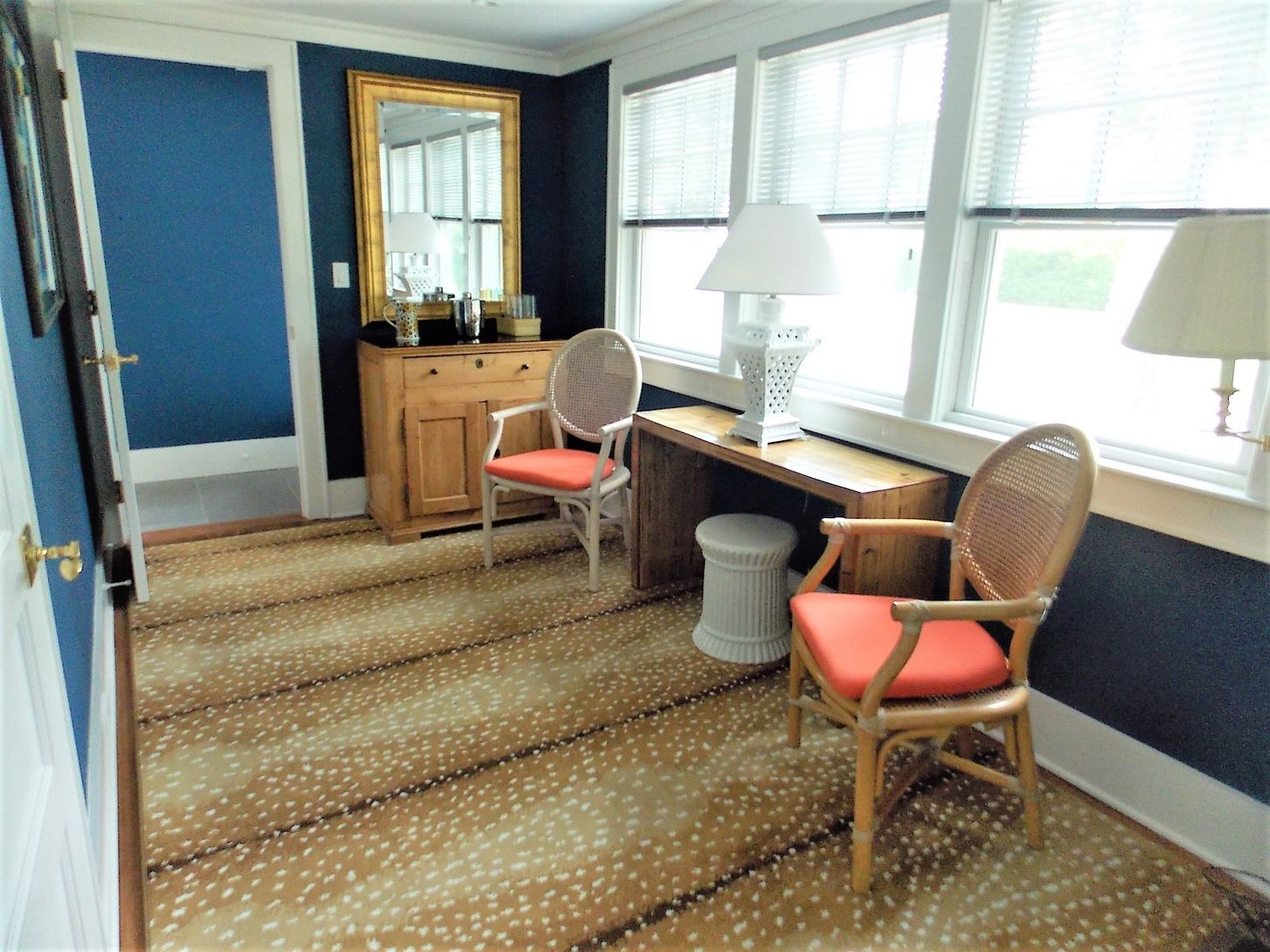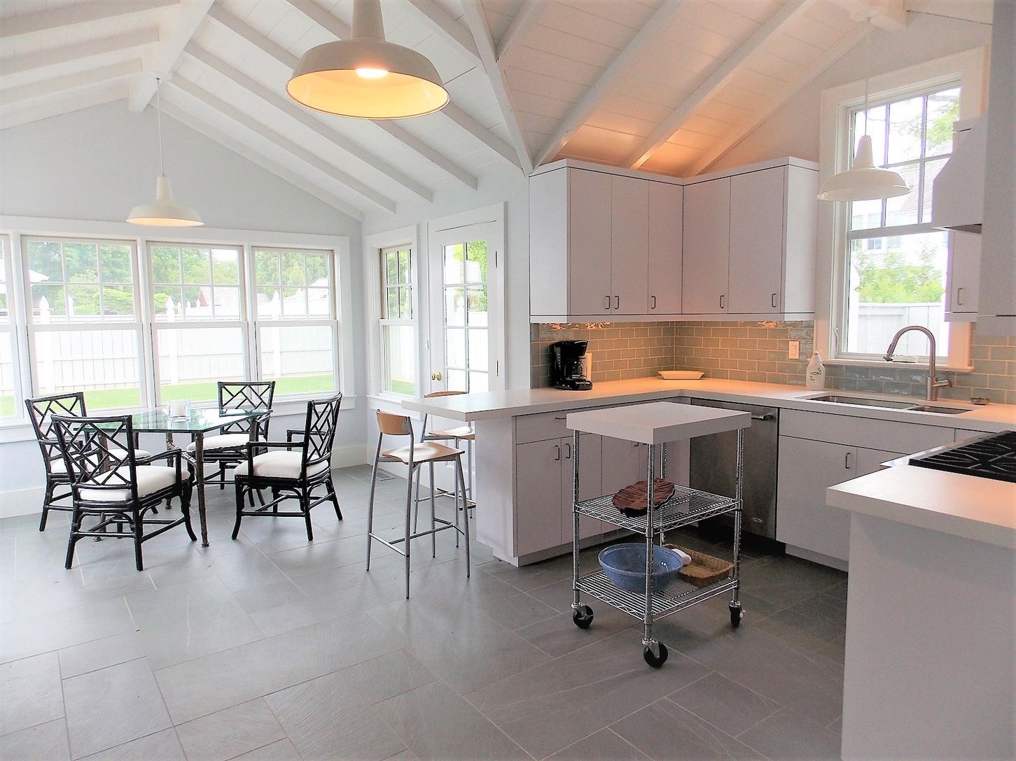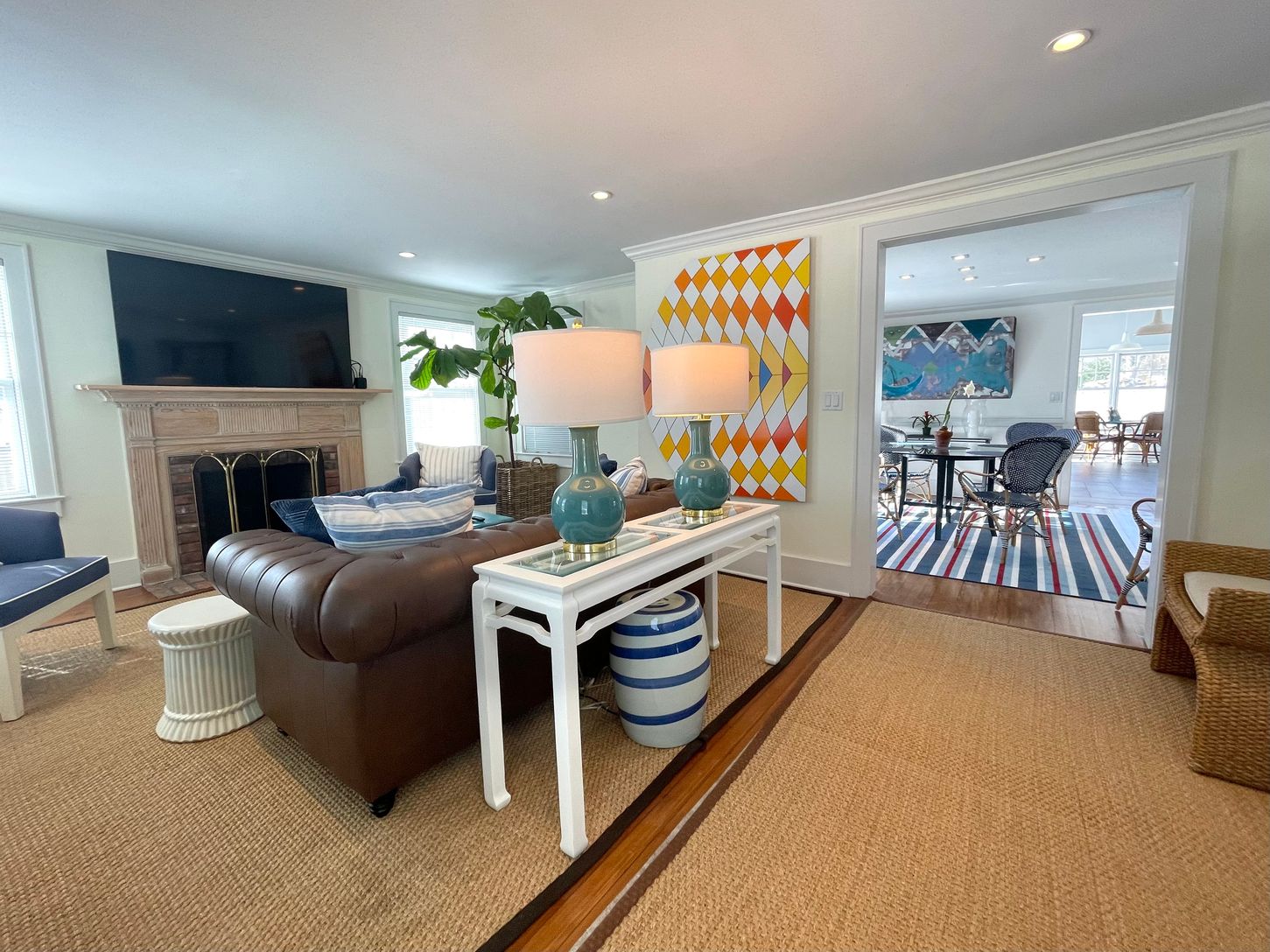 This renovated and tastefully decorated cottage features a formal entry to the living room with separate dining room opening to a canvas covered deck. An elegant eat-in kitchen, a new mudroom and another deck with views of the heated gunite pool. There is also a den with sofa bed for extra guests, bathroom and laundry room. The primary suite boasts a fireplace and new soaking tub full bath. The second floor has three guest bedrooms and a new s