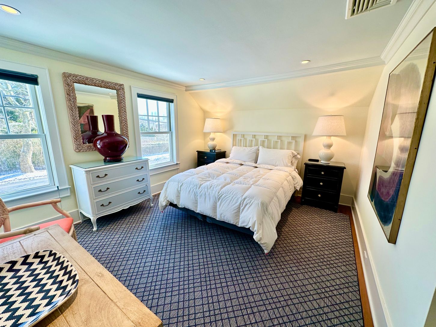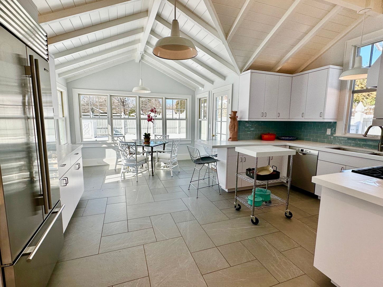 This beautifully renovated and tastefully decorated cottage has 3 bedrooms and 2.5 baths. It also boasts a formal entry to the living room and separate dining room that opens up to a canvas covered deck. The eat-in kitchen is sunny and another deck has views of the heated gunite pool. There is also a den with sofa bed for extra guests, bathroom, laundry room, and mudroom. The primary suite has a fireplace and new soaking tub full bath. The sec