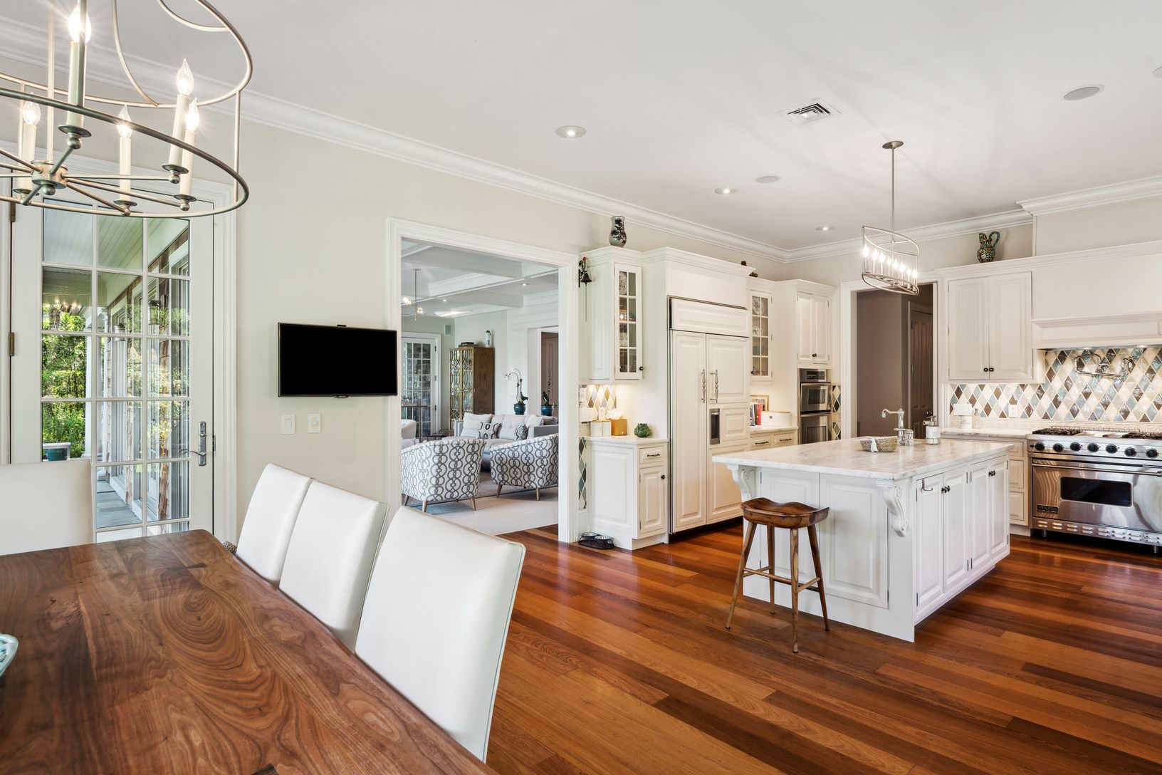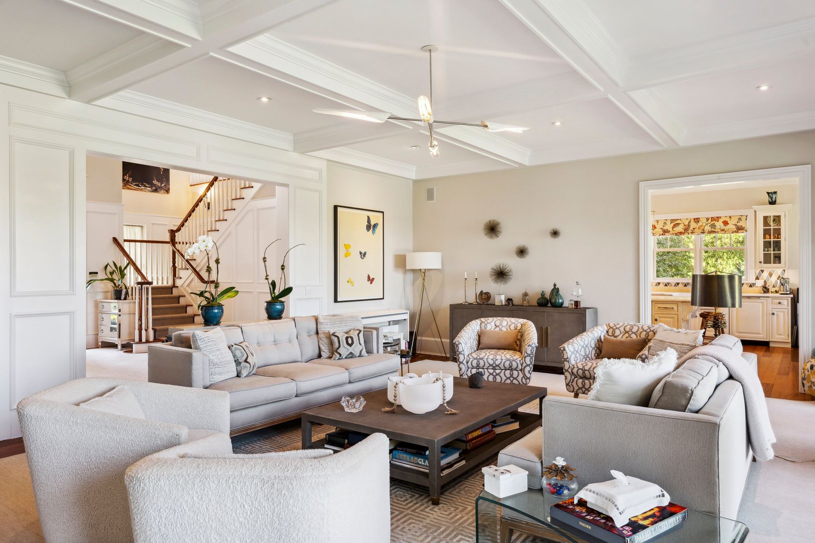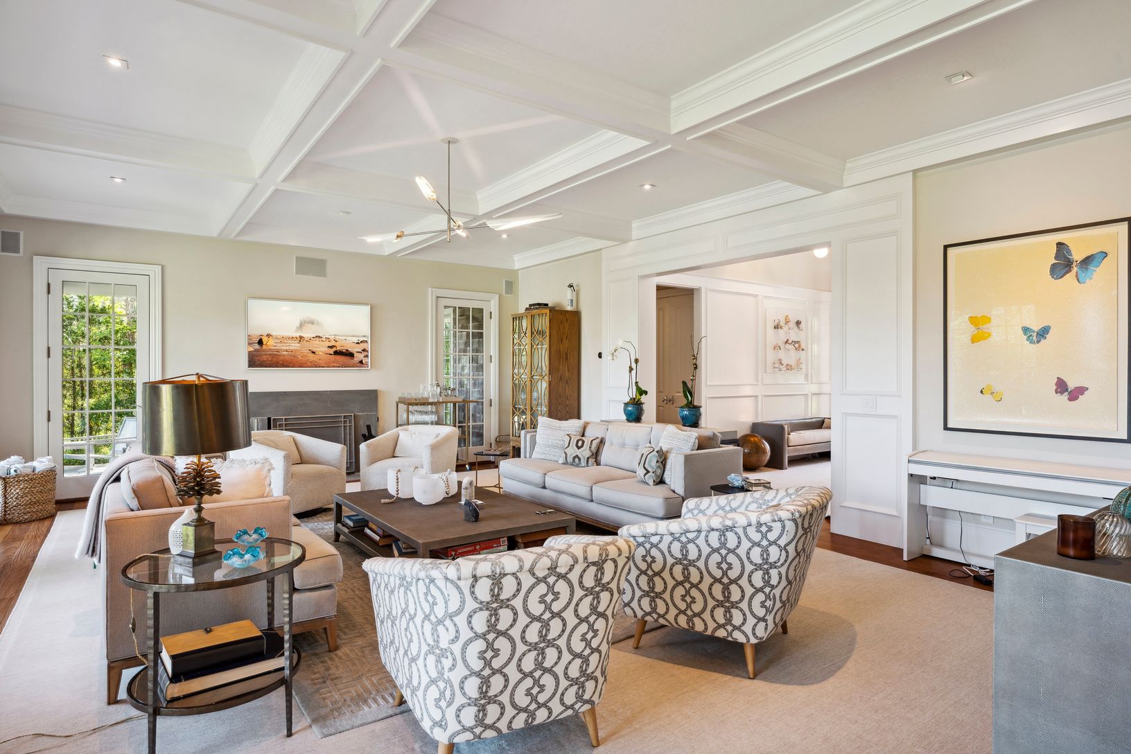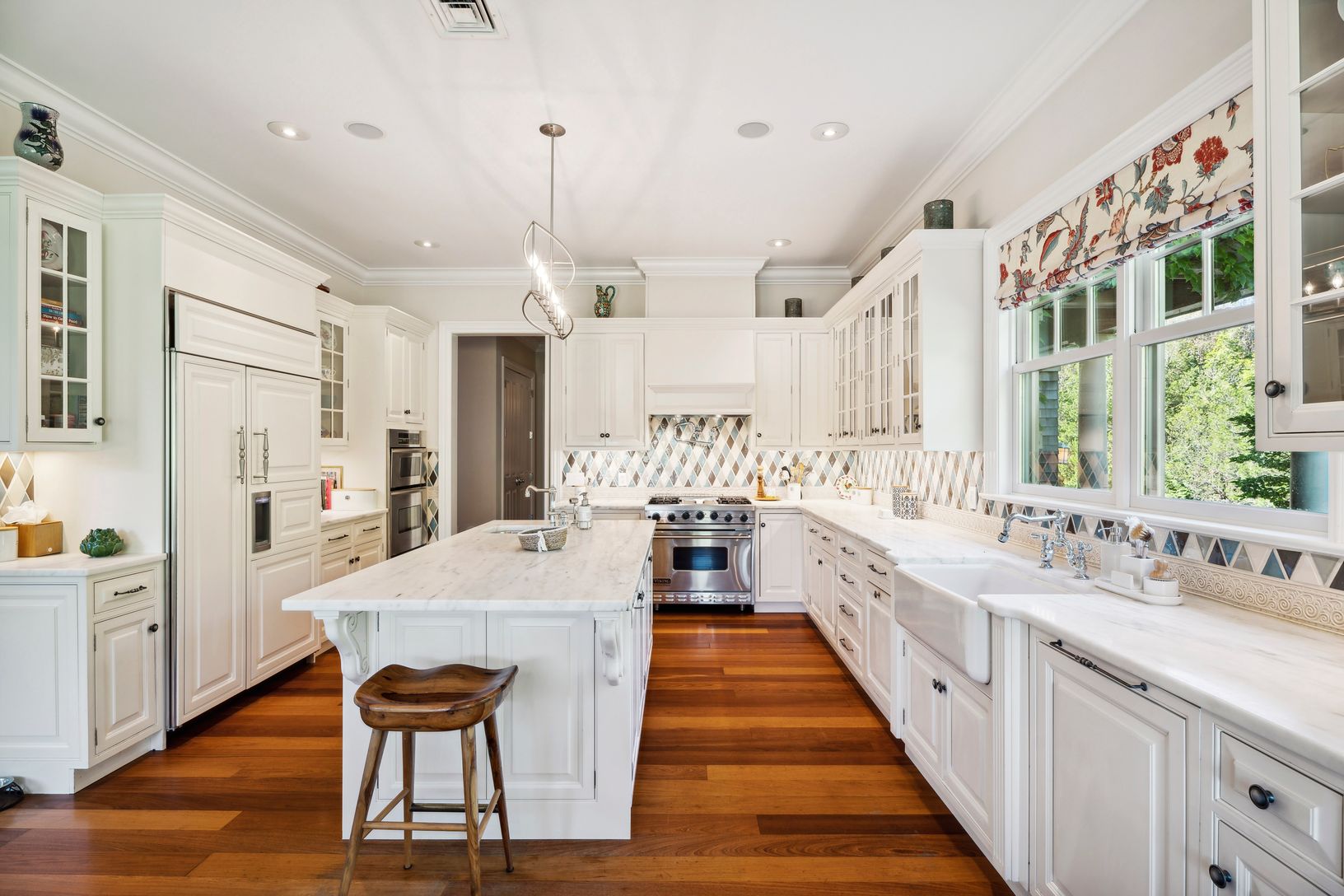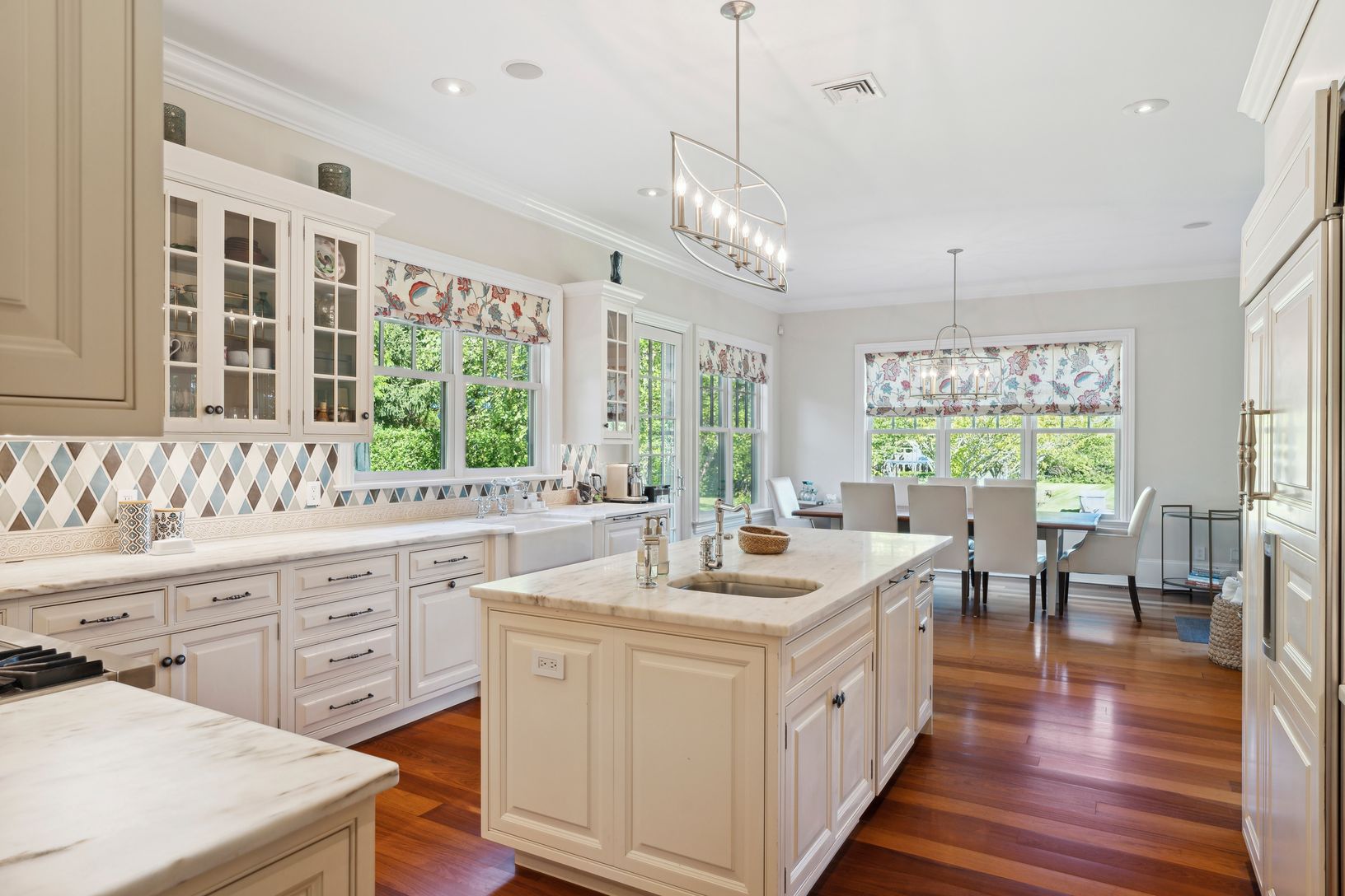 Beautiful custom-built home overlooking 60 +/- acre agricultural reserve on 1.5 acres with an expansive lawn, mature plantings and a heated 11'x70' gunite pool. The home consists of 7 bedrooms including primaries bedrooms both up and down, an eat-in dining area open to a family room with a fireplace, a built-in outdoor BBQ grill and a covered porch. Beautifully finished lower level with a large screen TV, kitchenette, 2 bedrooms, a bathroom, e