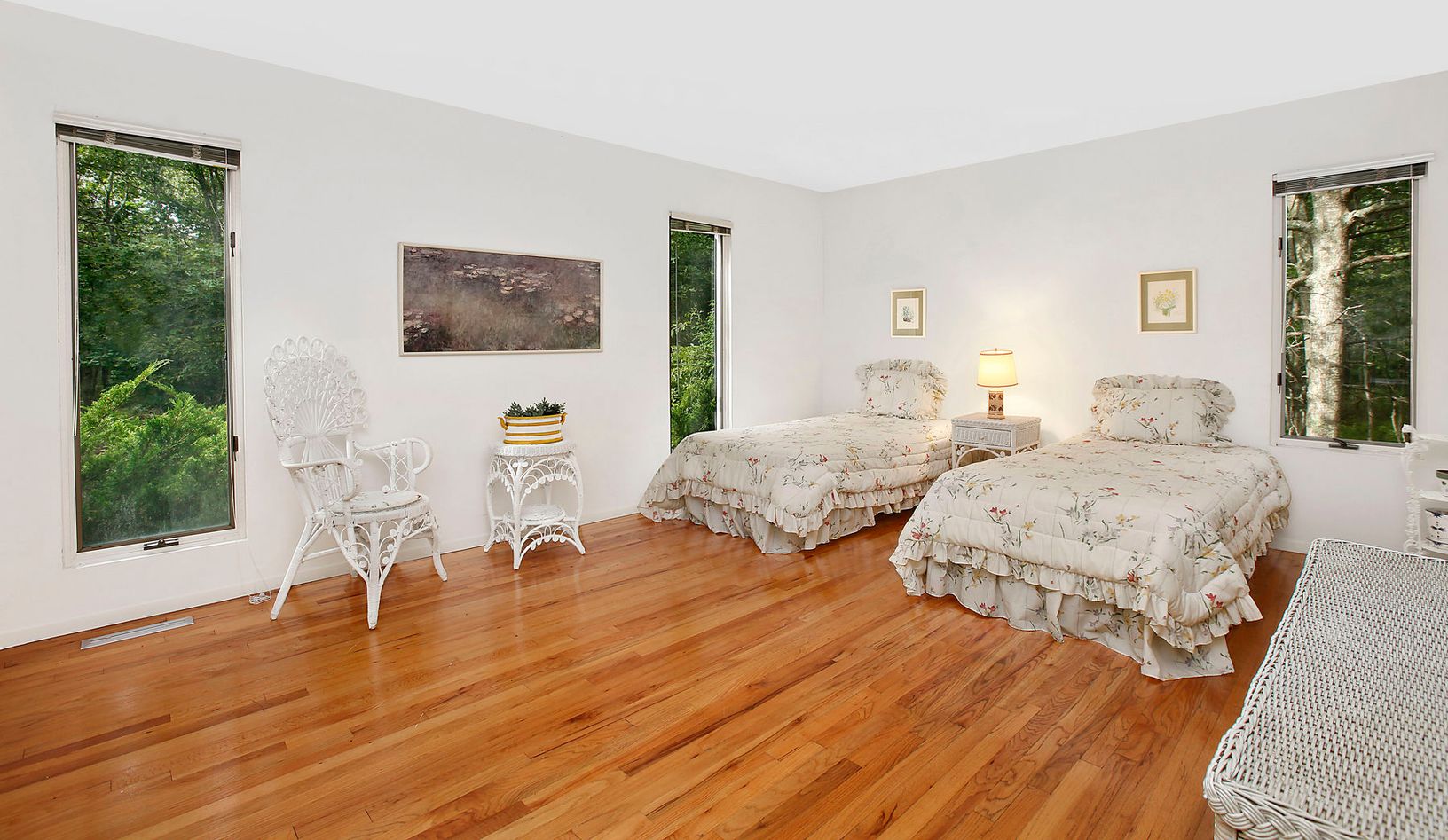 Private setting adjacent to a 45 acre reserve featuring 3 generously proportioned bedrooms, eat-in kitchen overlooking Har Tru tennis, and vaulted ceiling open living/dining room separated by a stone fireplace. Pool surrounded by ample decking. Attached 2-car garage can easily be renovated into additional bedroom or living space. Close proximity to East Hampton and Sag Harbor villages, as well as ocean and bay beaches.