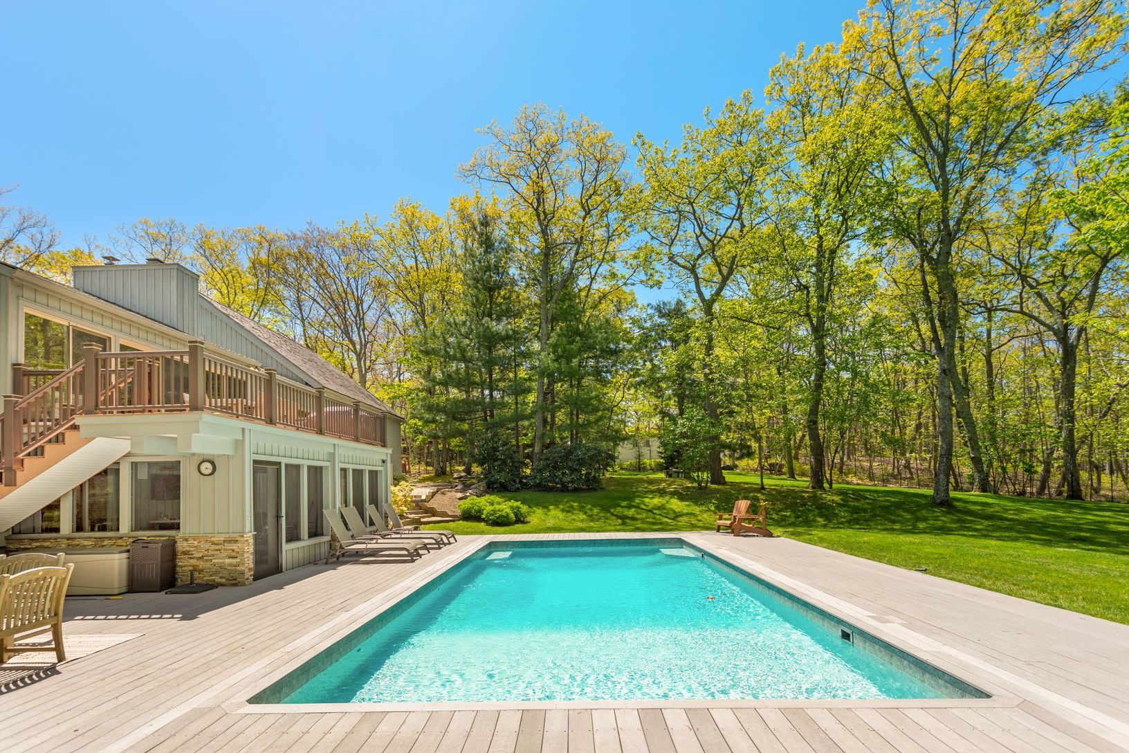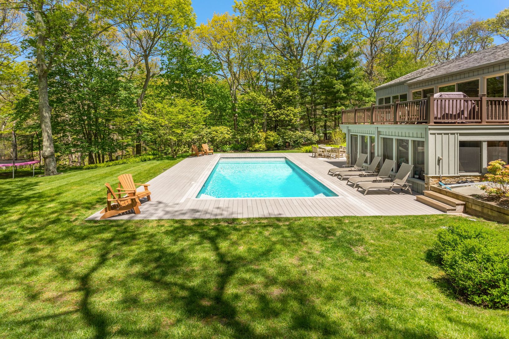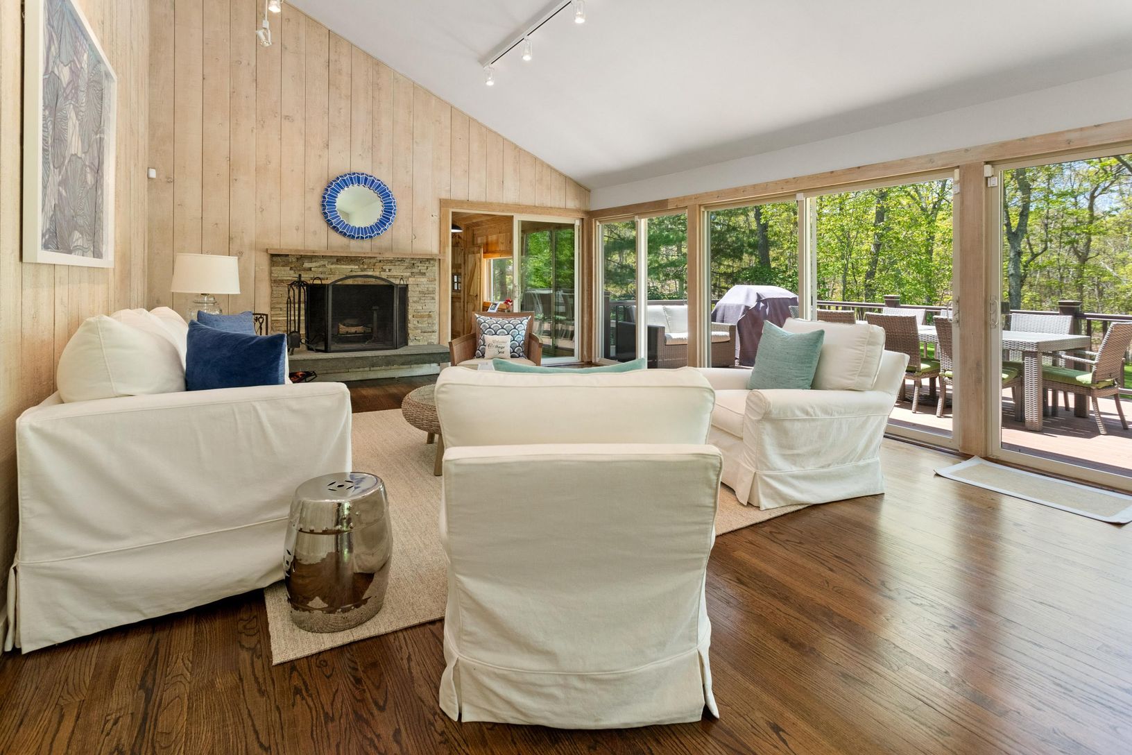 Located in North Hollow, a short distance to your own Gardiners Bay Beach, this well maintained gated contemporary home with rustic charm, has three bedrooms with first floor ensuite master, and three and a half baths. Upon entering the home the beauty of the outdoor living space will draw you in. The home has an open floor plan with recently renovated kitchen with marble stool height countertops , stainless appliances and a large pantry. The