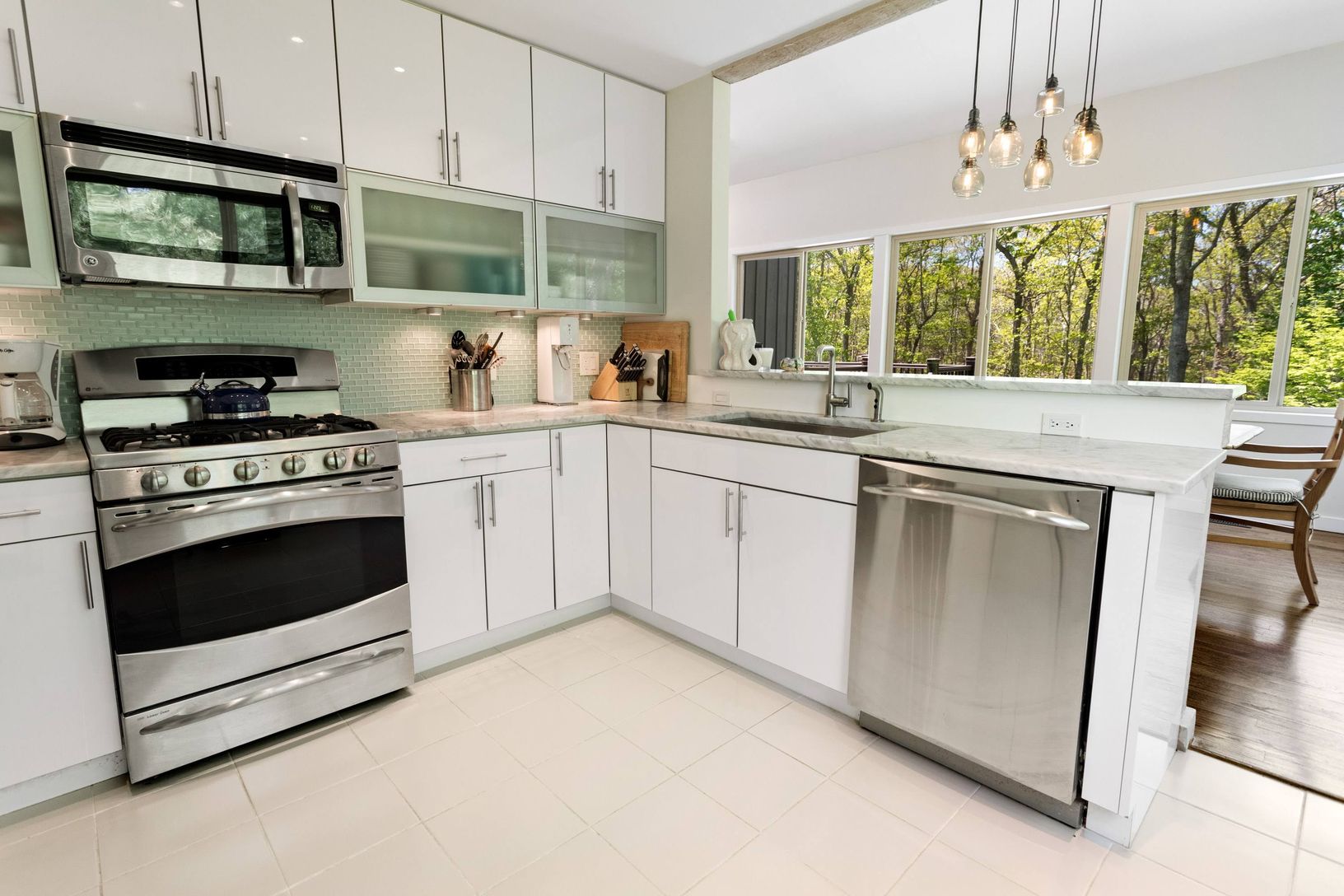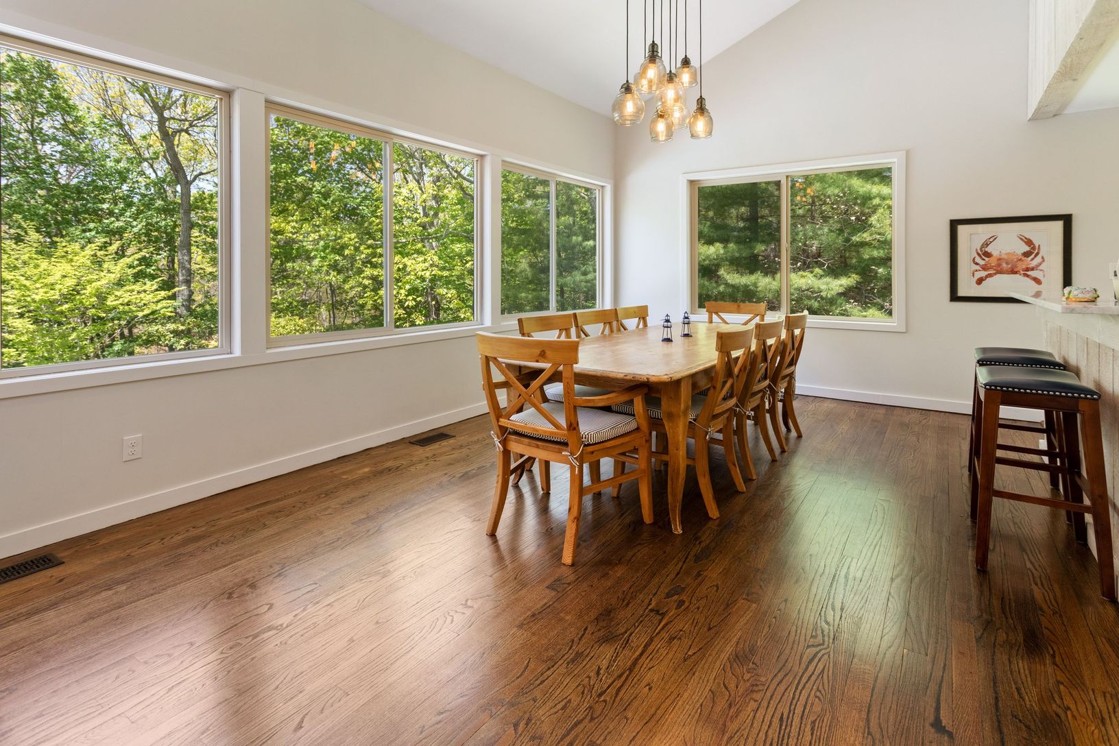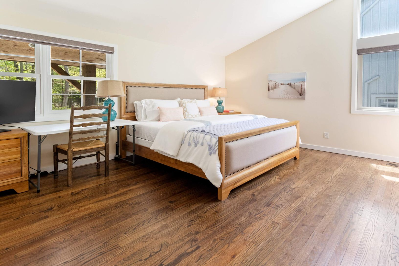 Located in North Hollow, a short distance to your own Gardiners Bay Beach, this well maintained gated contemporary home with rustic charm, has three bedrooms with first floor ensuite master, and three and a half baths. Upon entering the home the beauty of the outdoor living space will draw you in. The home has an open floor plan with recently renovated kitchen with marble stool height countertops , stainless appliances and a large pantry. The