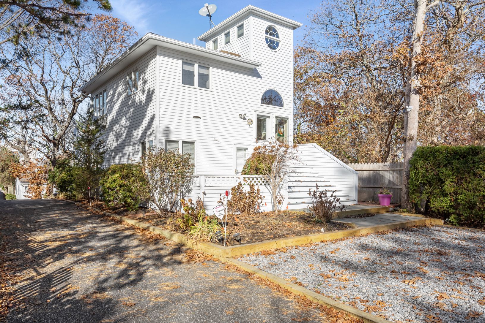 Rare opportunity to own in this neighborhood! Enjoy breathtaking sunsets on Peconic bay or sit on the second story deck and enjoy a glass of ice tea while nestled among the trees. Entertaining is a breeze since the kitchen/living room/dining area is located on the second floor or step outside and dine al fresco. On the first floor you will find a large primary suite w/private patio and outdoor shower as well as 2 additional bedrooms and guest