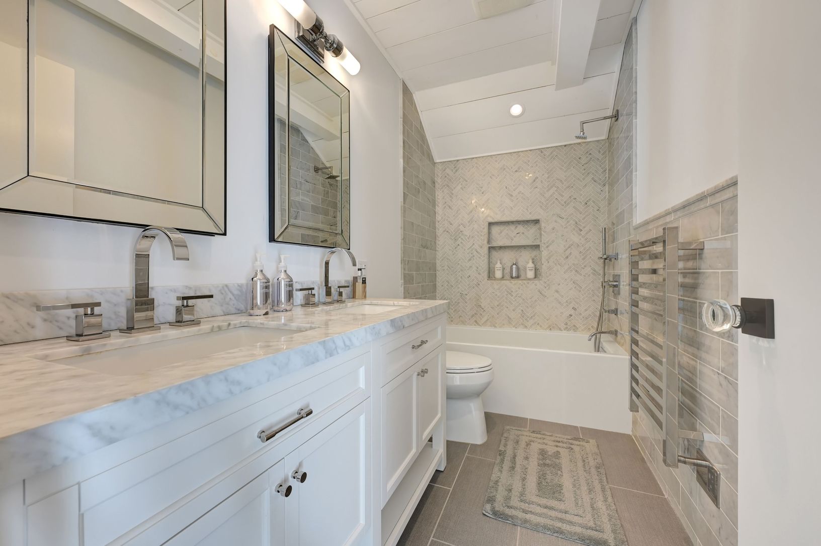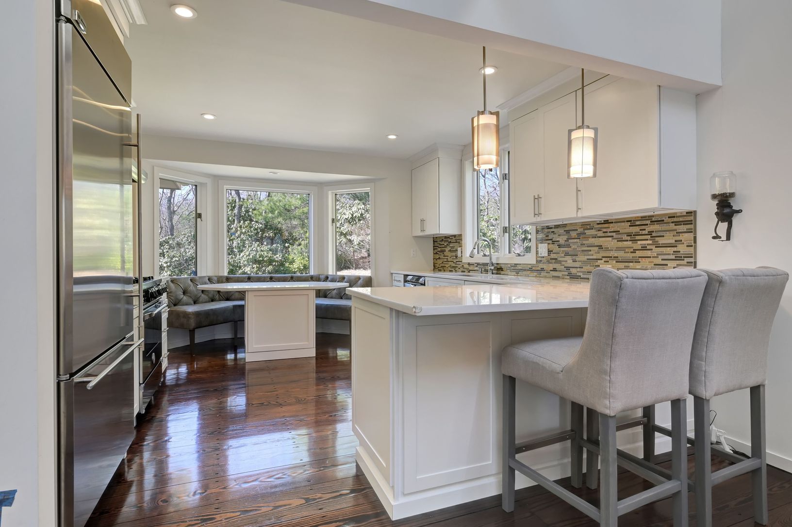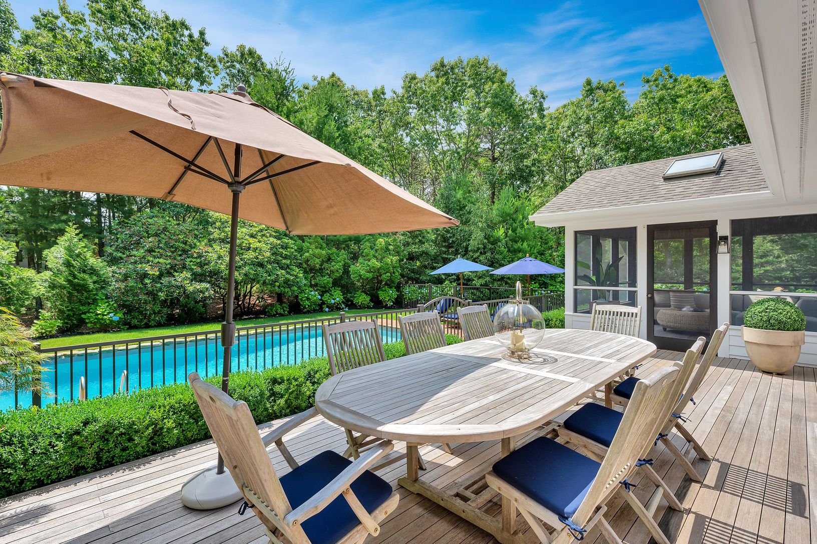 This stunning, like-new 3-4 bedroom/4.5 bath East Hampton beauty has it all. With high-end finishes throughout, the light-filled great room with cathedral ceiling and an open floor plan with a wall of glass - leads to a beautifully landscaped backyard with its oversized deck and heated pool. The chef's kitchen has a custom eat-in area and breakfast bar, seamlessly transitioning to the dining area and living room with a fireplace. The welcoming