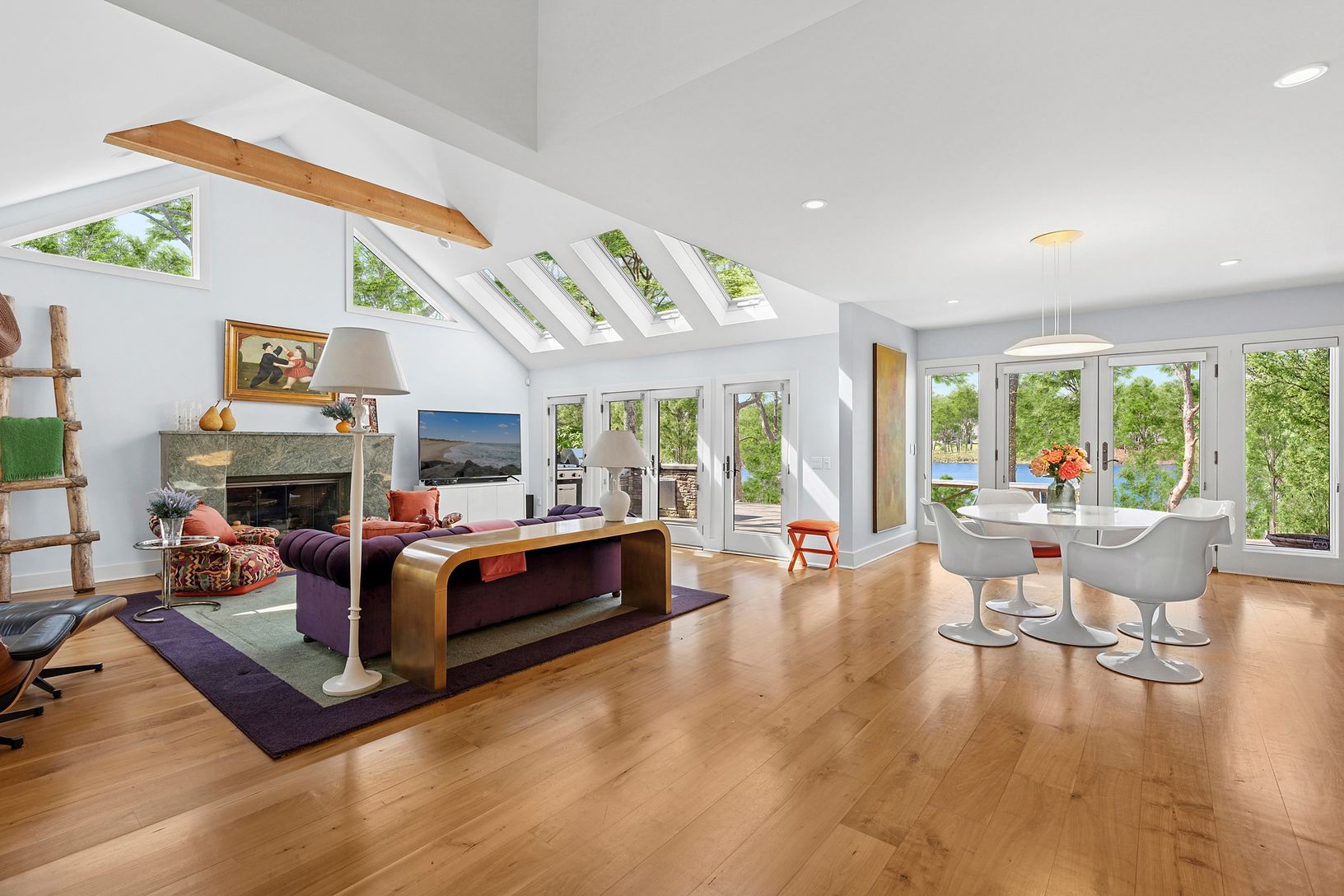 Welcome to Twin Ponds, a waterfront Contemporary retreat with every desire realized for a chic, waterfront escape. Nestled at 25 Round Pond Lane in coveted Sag Harbor, this home is where Hamptons luxury meets the zen of nature. With a full rebuild that showcases artistry and elegance, you've found your unique sanctuary. Prepare to be captivated by the expansive 3,790 square feet of style spread over three levels. The great room is your sun-dre