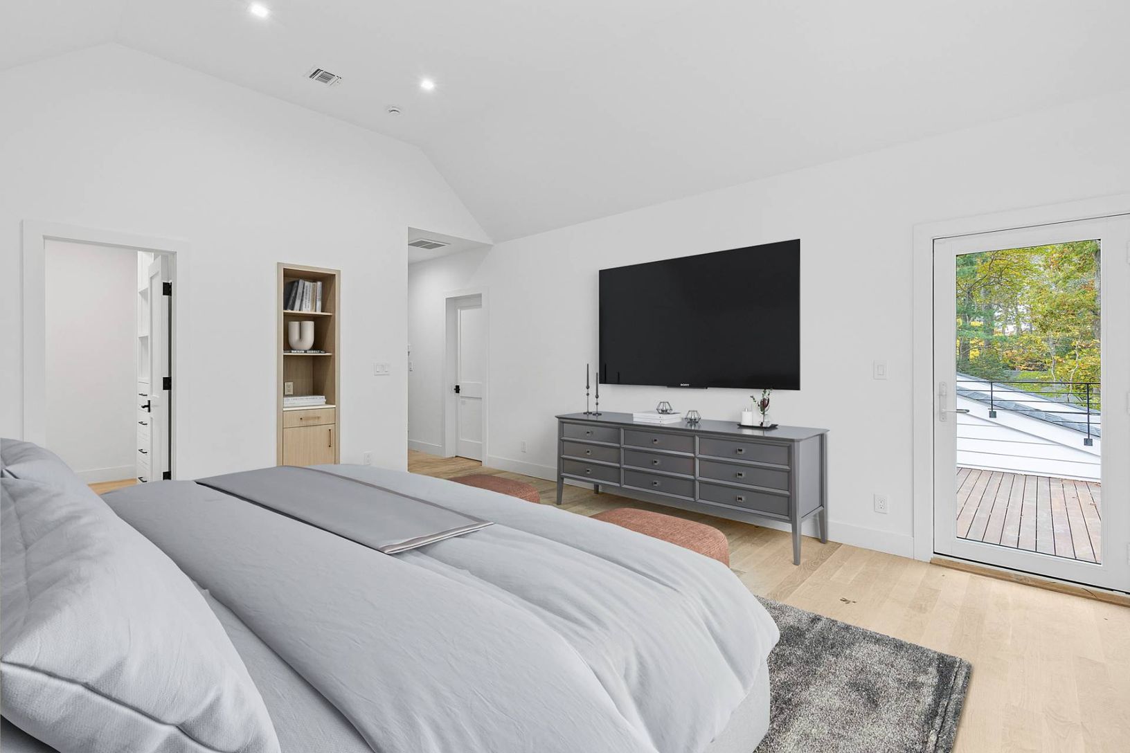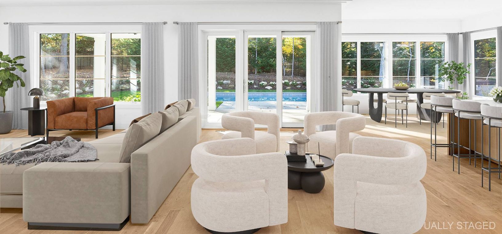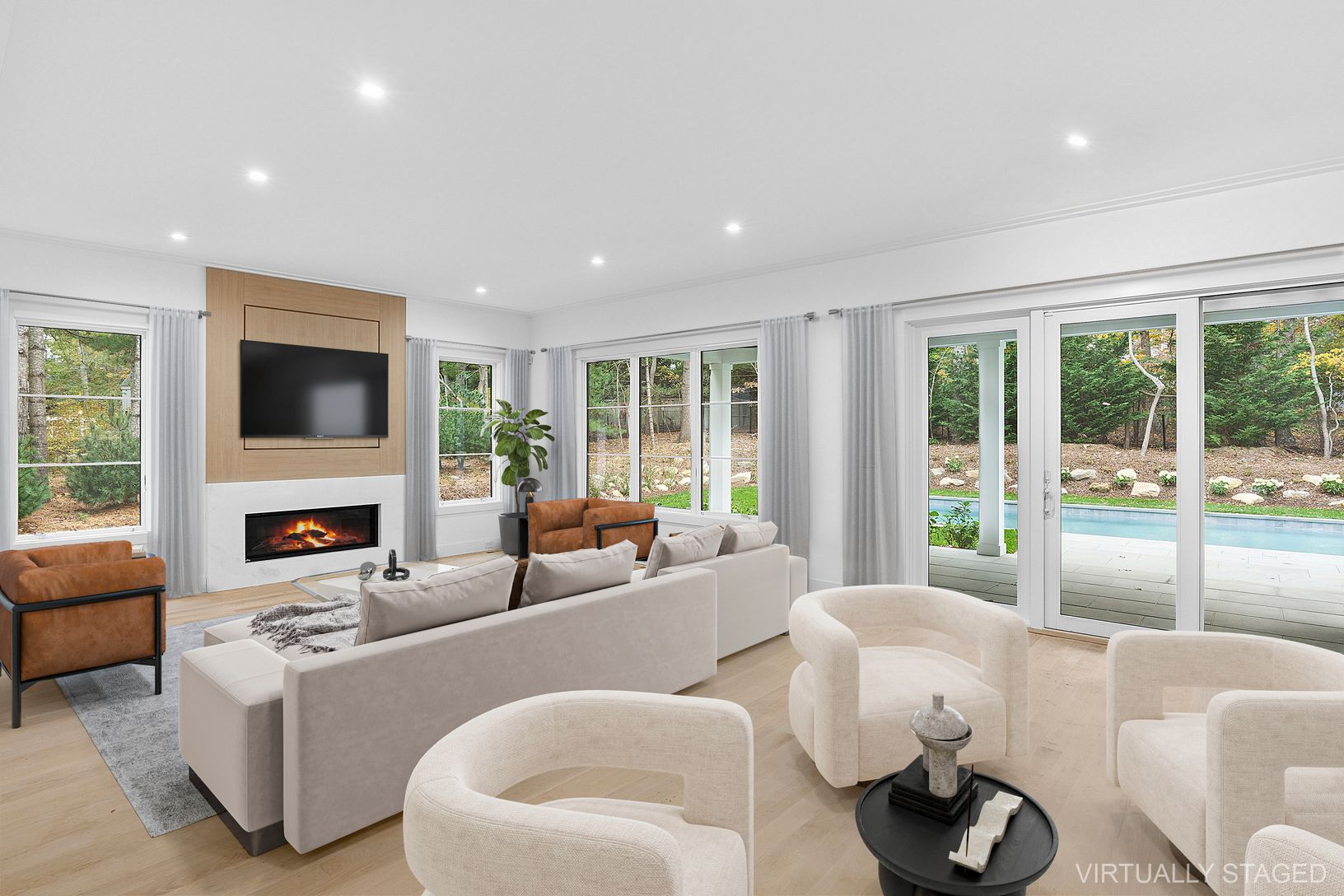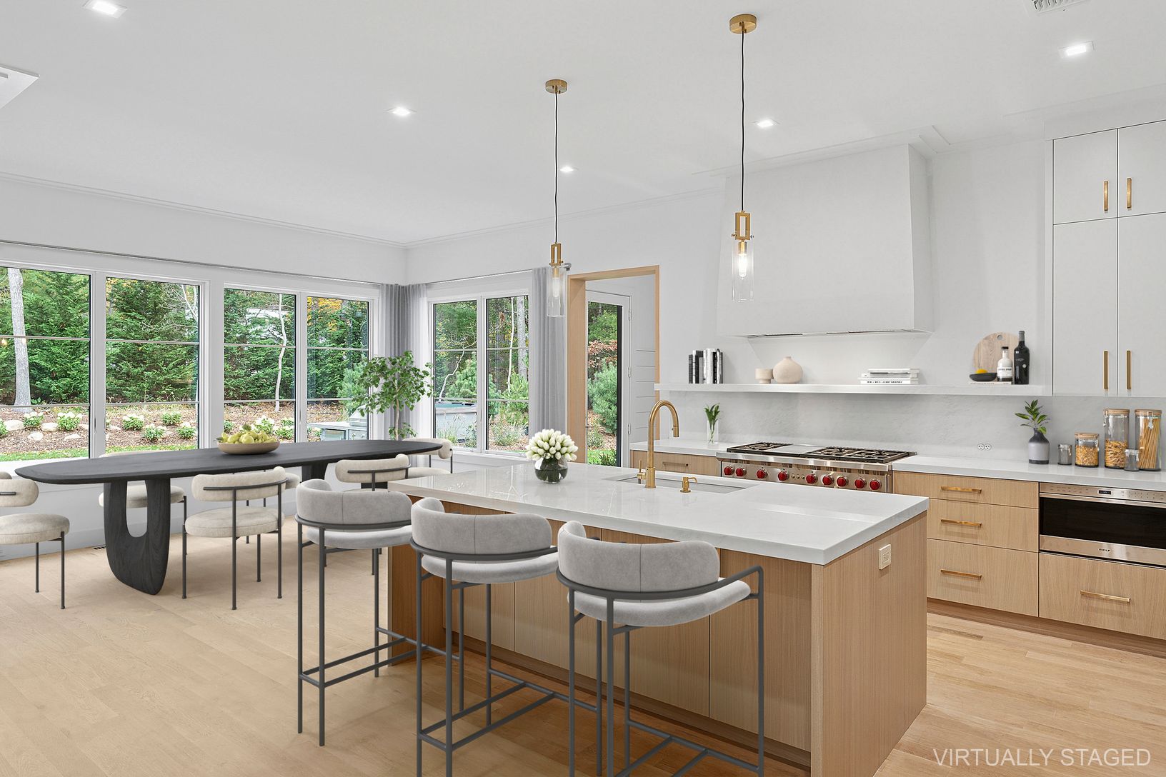 New construction completed November 2025. A Modern Masterpiece in the Northwest Woods. Crafted by Curto Building Company and designed by Architect Ryan Kesner. Experience refined modern living at 25 Scallop Avenue, a newly completed residence in East Hampton’s desirable Northwest Woods. Encompassing over 6,000± sq. ft. across three levels, this striking modern home blends clean architectural lines with an abundance of natural light and tranq