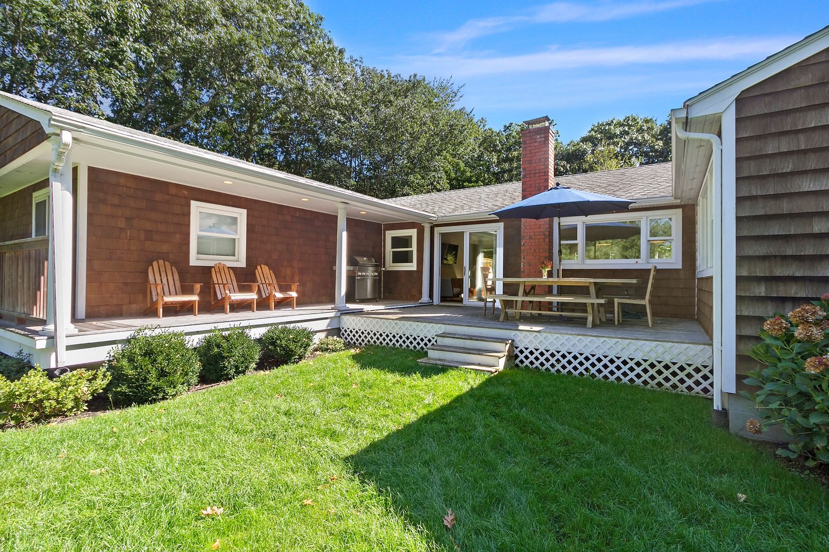 Experience the best of Sag Harbor summer living in this beautifully updated four-bedroom home just two blocks from the water. Originally renovated in 2013, the residence offers a seamless open layout with a chef's kitchen at its heart, featuring marble countertops, a spacious island with seating, and high-end stainless steel appliances. Natural light fills both the main living area and a separate sunlit gathering room, creating inviting space