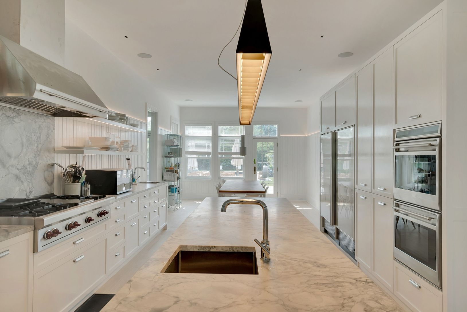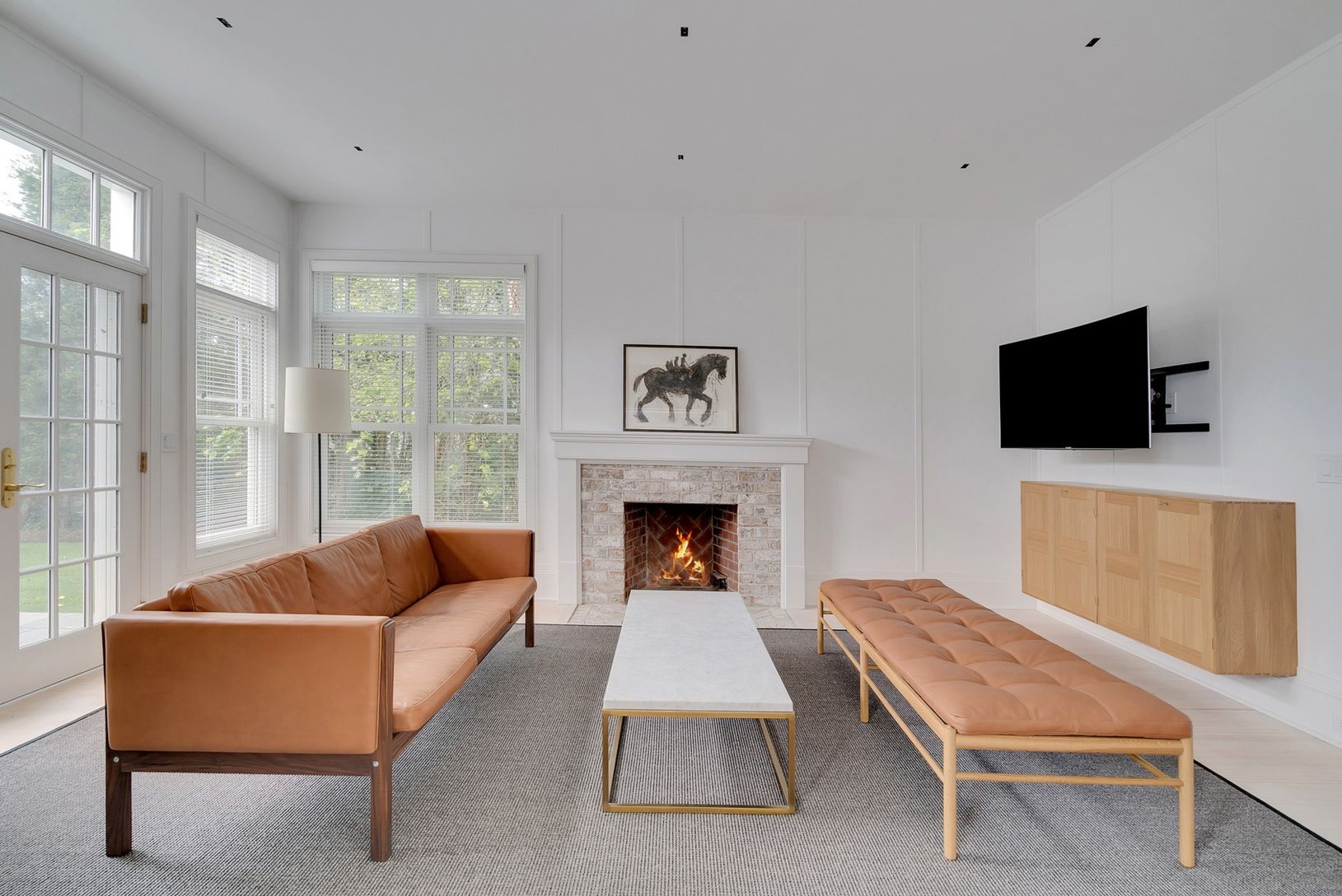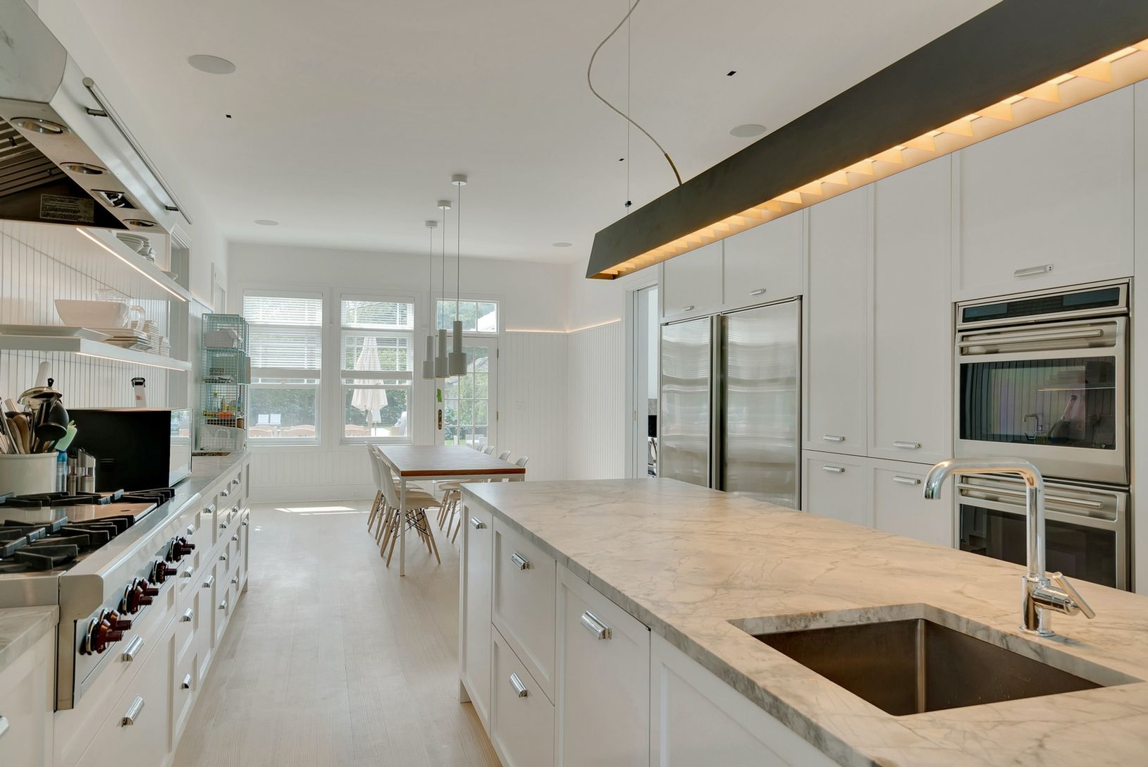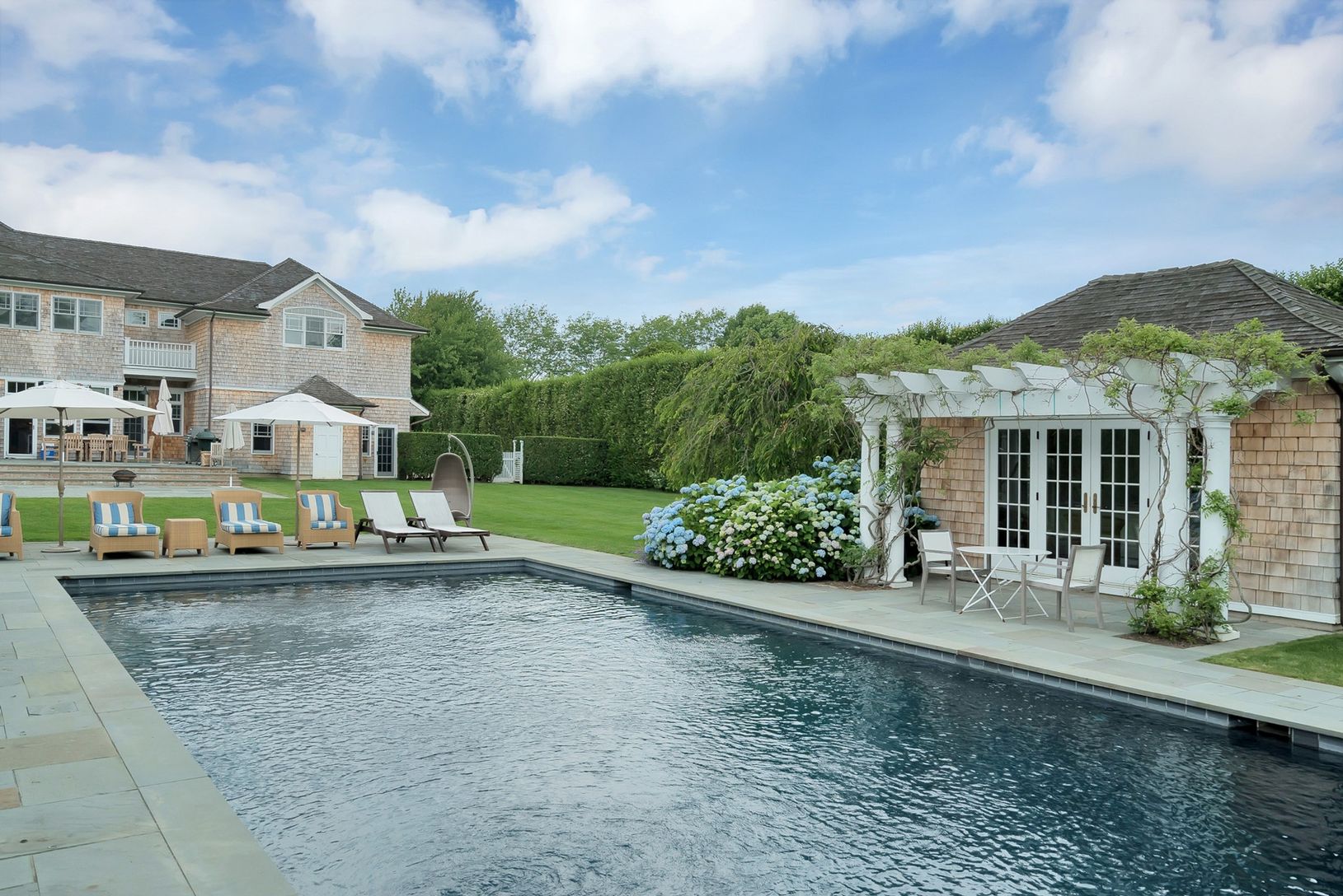 Beautifully appointed Transitional style home in a wonderful south-of-the highway location. Recently renovated to perfection, features include an open great room with vaulted ceilings, stunning eat-in kitchen and dining area, 6 bedrooms, 6 full baths plus two powder rooms, three fireplaces, finished lower level with den, gym, bedroom and bathroom, and an attached three car garage. The professionally landscaped property surrounds the heated gun