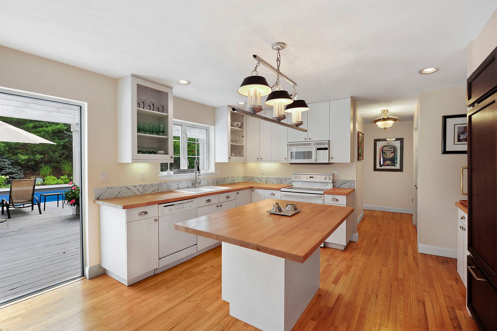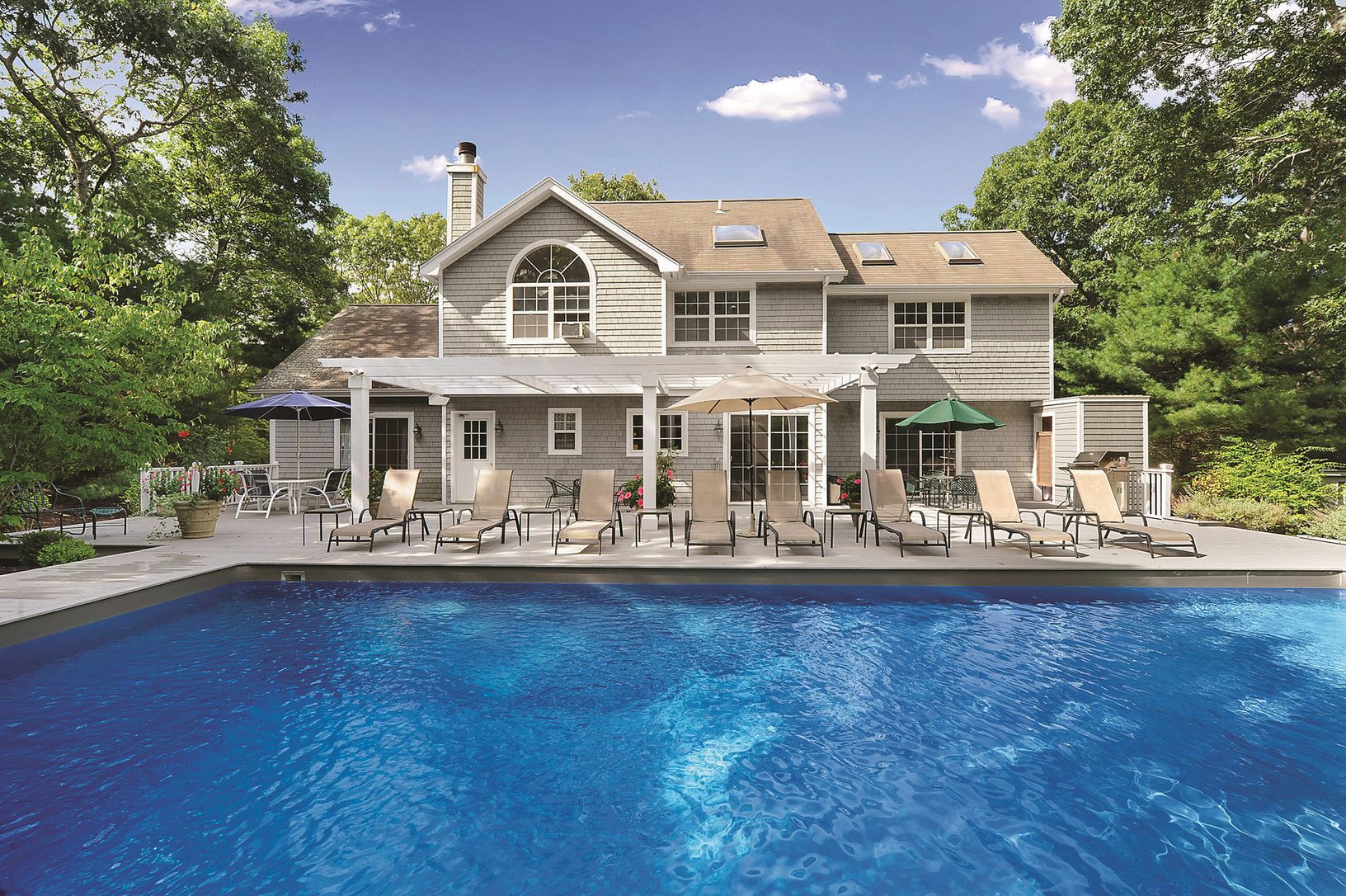 Situated on a private acre and a half in East Hampton's Northwest Woods, this turn-key traditional offers four bedrooms and three full baths. With an open layout, the first floor has a spacious living room with fireplace, eat-in kitchen, dining room and three guest bedrooms. Upstairs, the master bedroom features beamed ceilings, fireplace, a large renovated bathroom, and an expansive walk-in closet. The park-like setting has mature trees and p