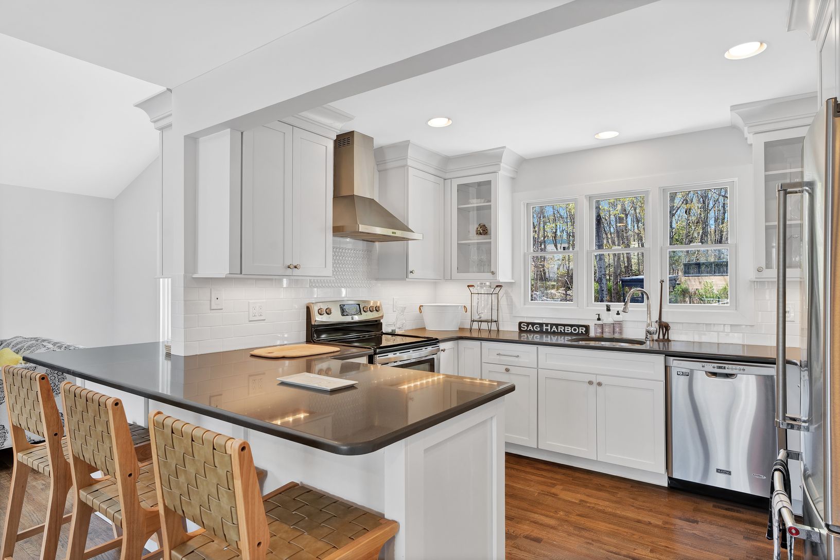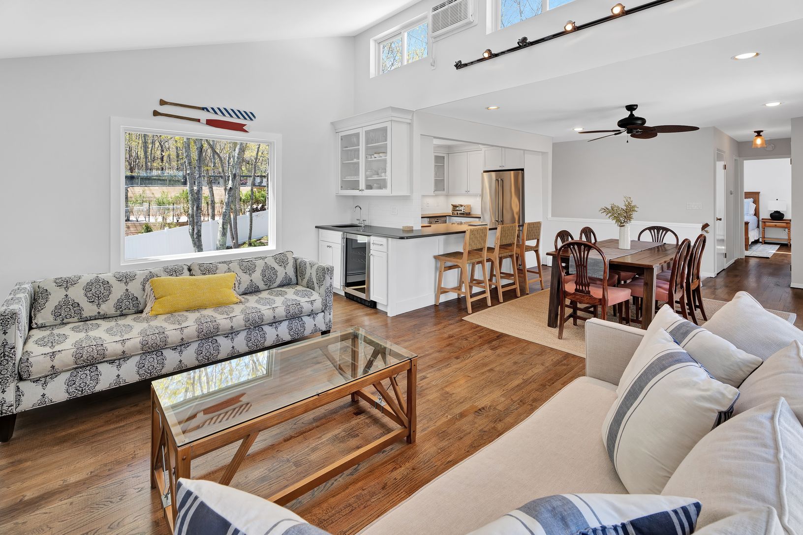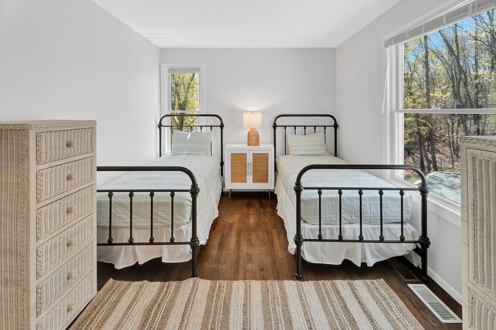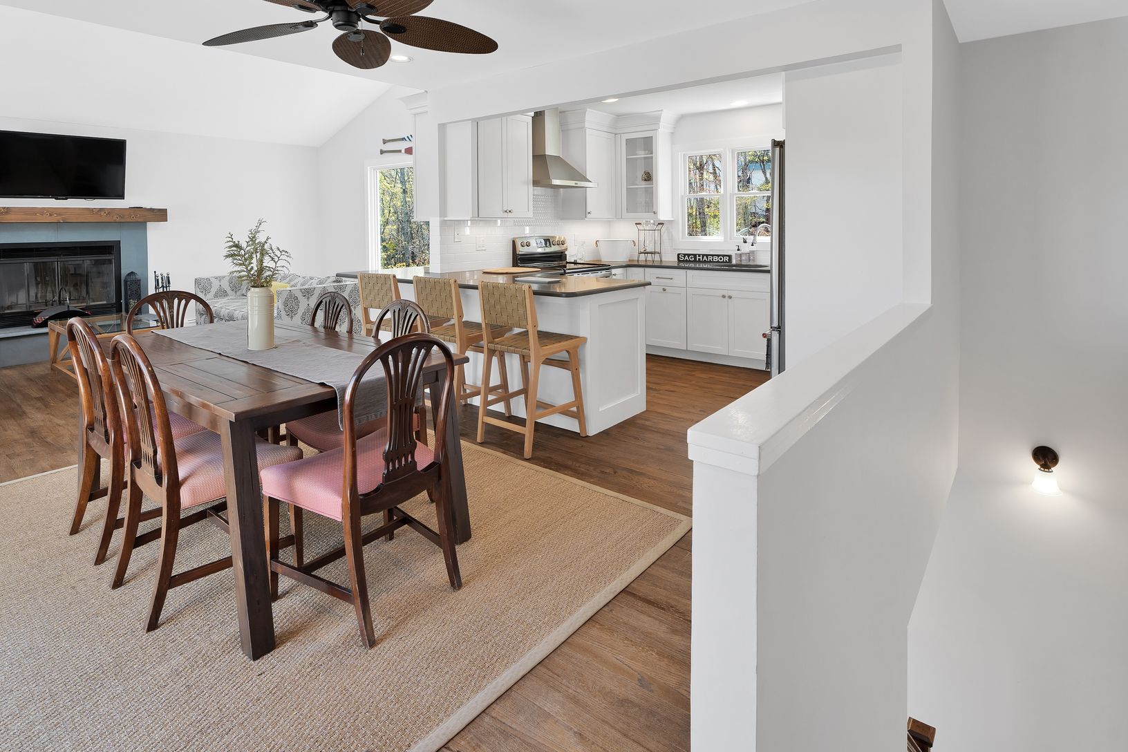 Beautiful Sag Harbor awaits you. Enjoy this recently renovated Modern Classic boasting almost 2,000 +/- square foot. This home offers amazing hilltop views. Bring the whole family, the house comfortably sleeps 8-10.The home is set within two miles from Sag Harbor Village and less than a mile to famous Long Beach on the bay. You enter the property via a beautiful, sloping driveway with very mature landscaping. The house features four bedrooms a
