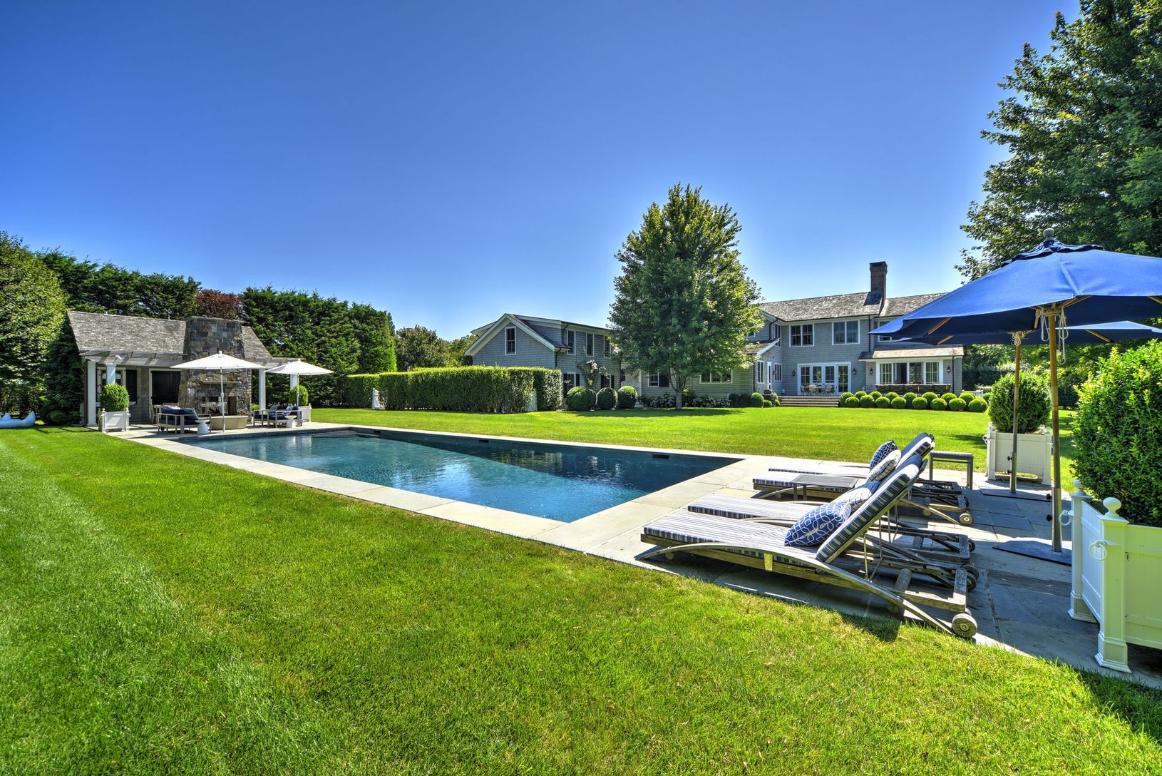 Only minutes to Bridgehampton village, ocean beaches and local farm stands, this beautifully renovated Hamptons estate features 7 bedrooms, 9+ baths, a gourmet eat-in kitchen with attached family room, formal dining, two living rooms, a sunroom porch, full pool house, gym, and a finished basement. Relax in the large back yard or by the pool or host dinner by the outdoor fireplace by the pool house. The perfect location and enchanting property