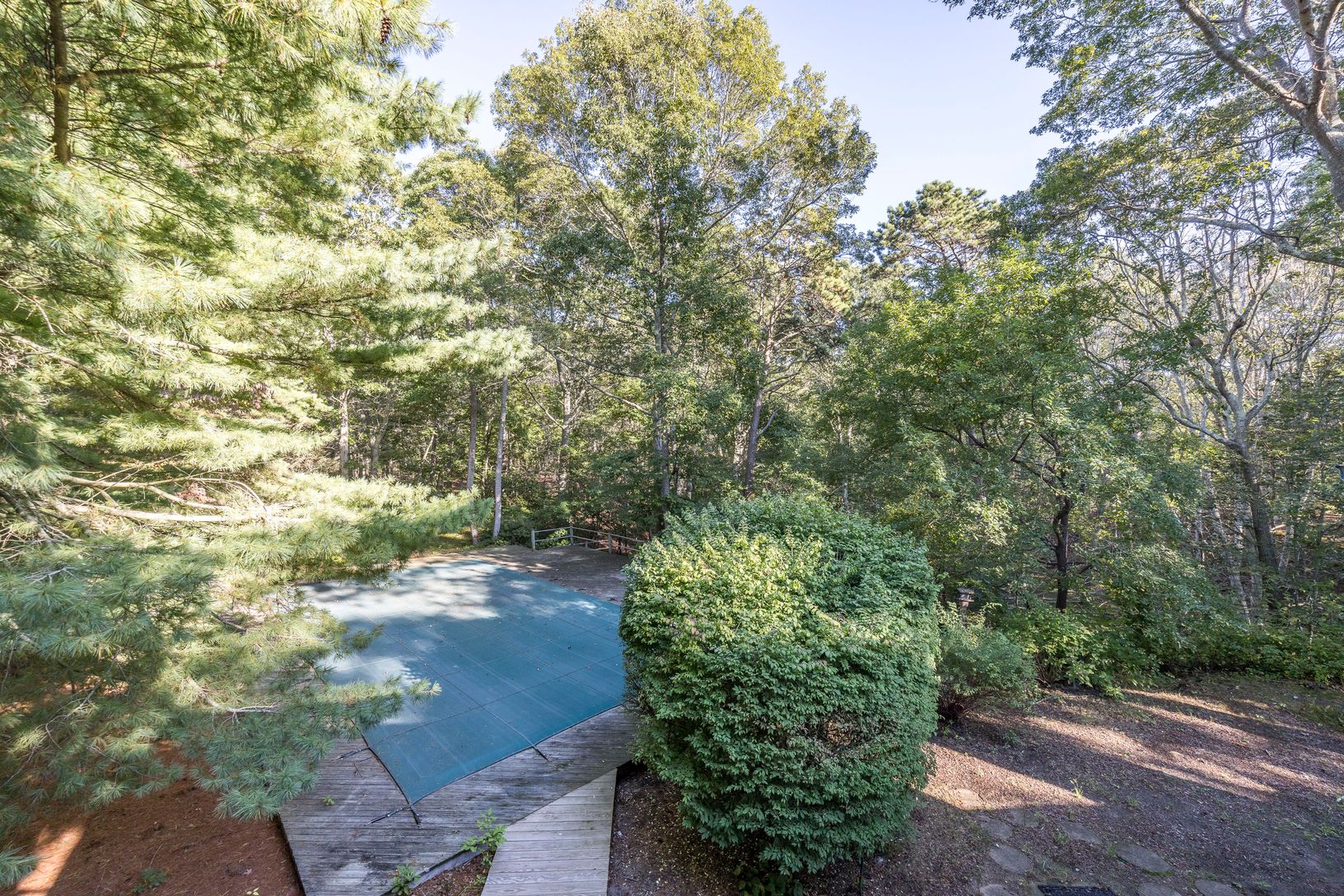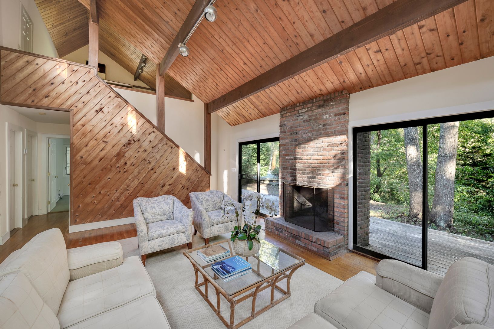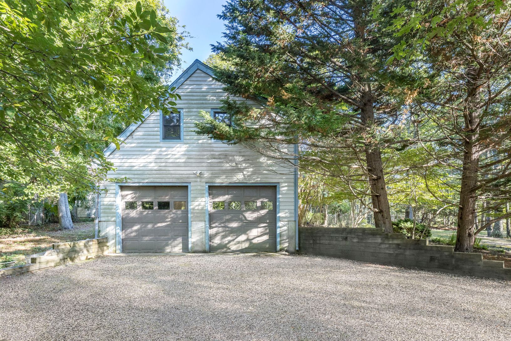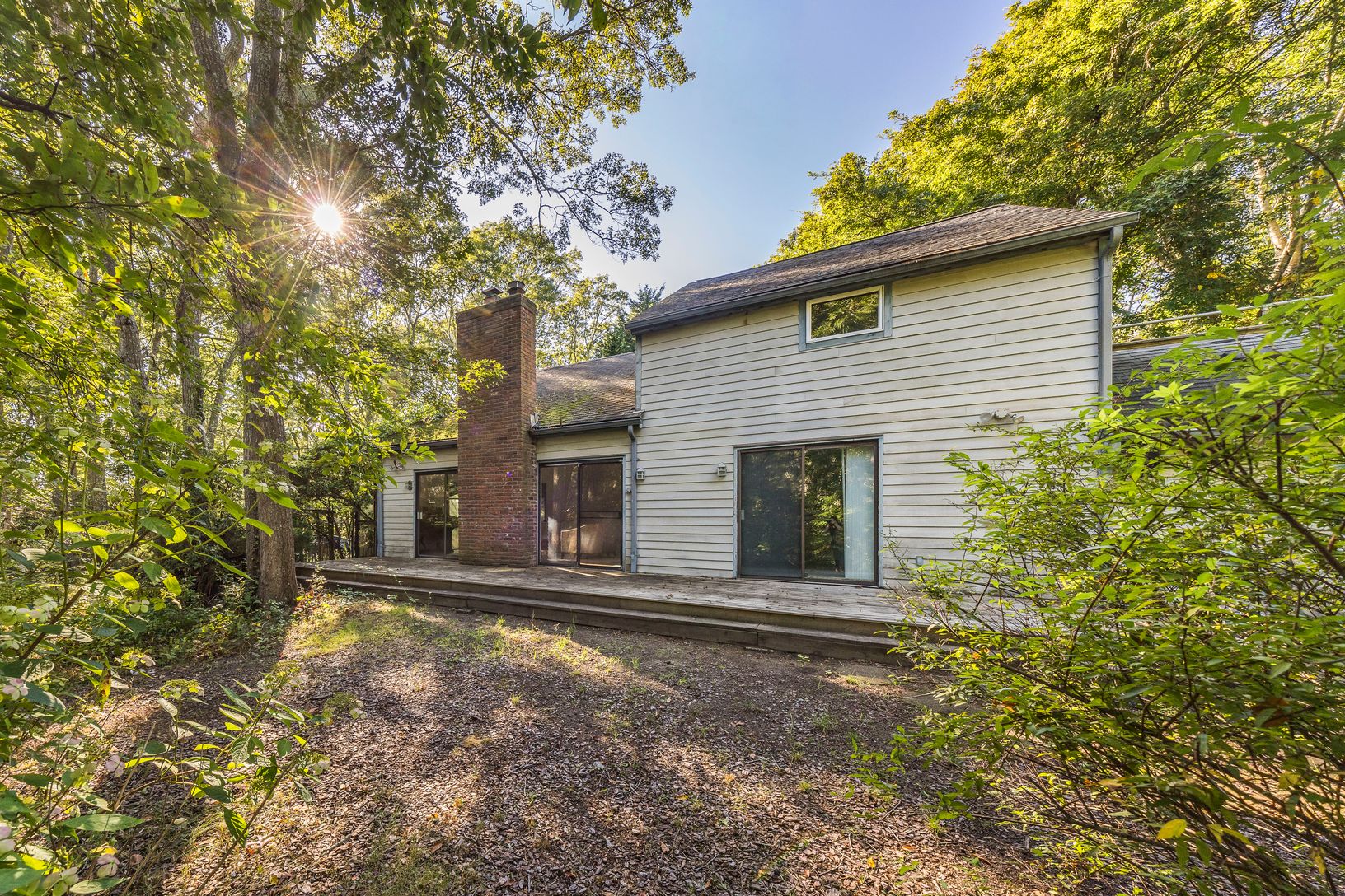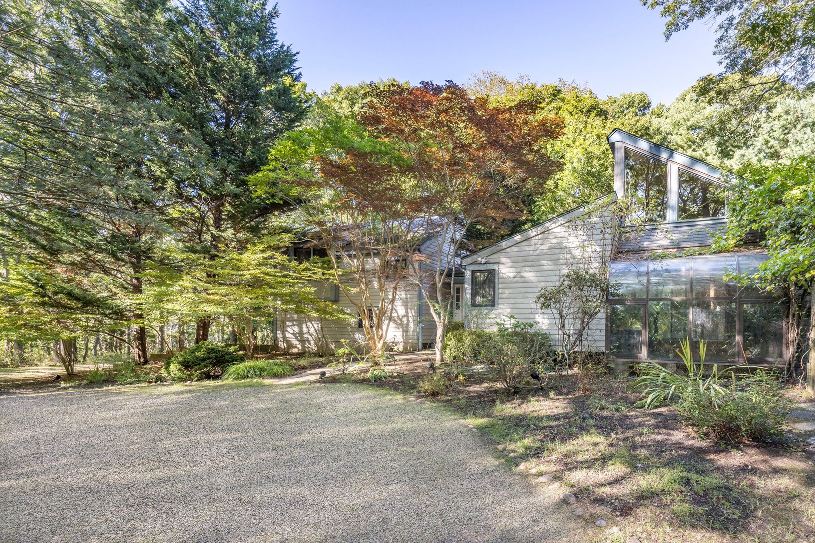 Set on nearly three acres in one of Amagansett's most desirable hamlets, this rare offering presents multiple paths forward - whether reimagining the existing three-bedroom, three and a half bath contemporary residence or creating something entirely new. Being sold "As-Is" this home offers good bones and character: a vaulted-ceiling living area with fireplace, a solarium-style room, a country kitchen, and an oversized one-car garage. Outdoors,