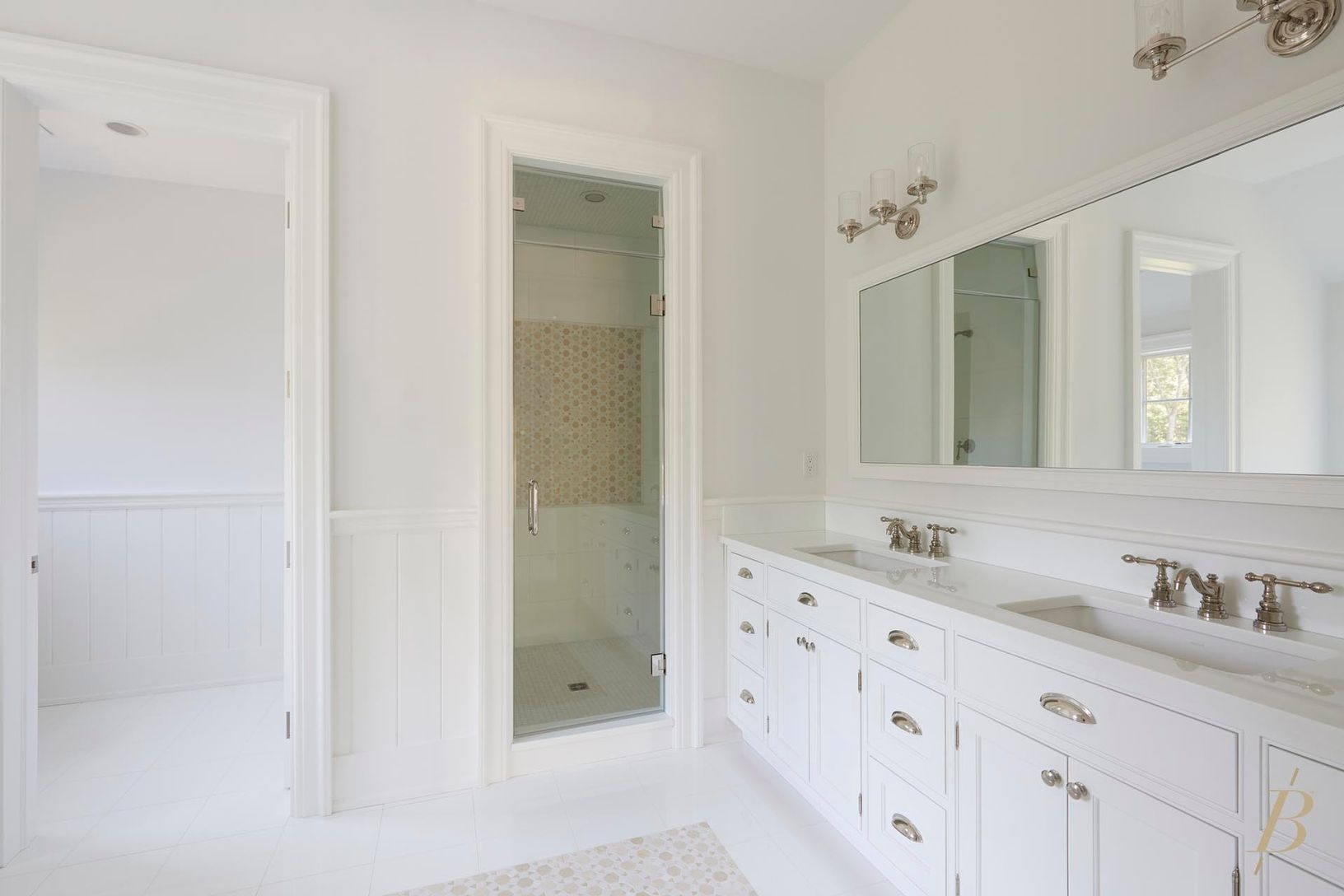 A unique merger of traditional and English inspired architecture and design are seamlessly incorporated into the design of every Fair Hills Home. Sweeping roof lines, massive Marvin windows, and custom built solid wood entry doors are the beginning of what is to find. These homes are designed by McDonough and Conroy architects and artfully crafted by Master Builders Villadom Custom homes of Bridgehampton. Rough sawn honey cedar shingles and im